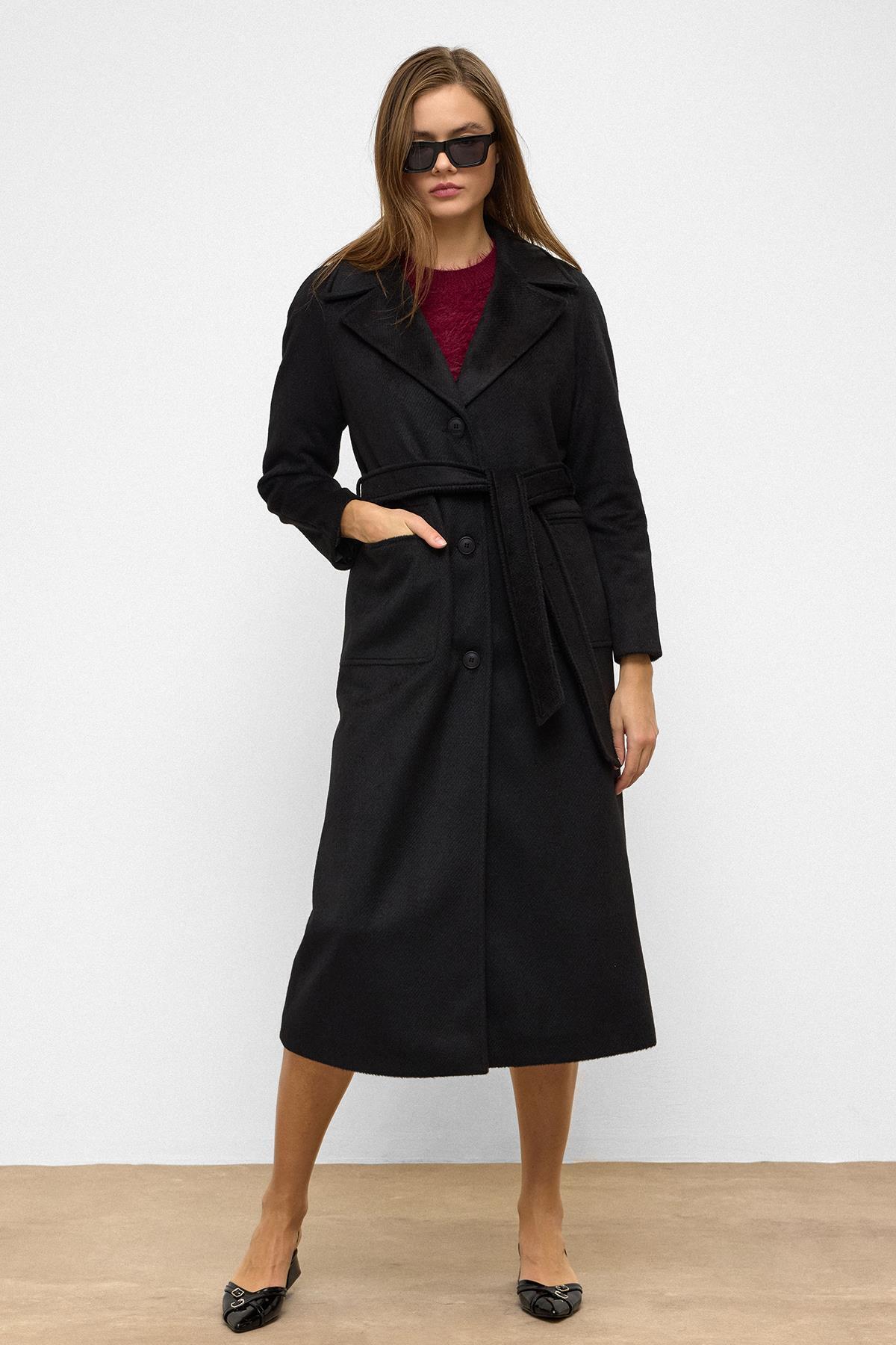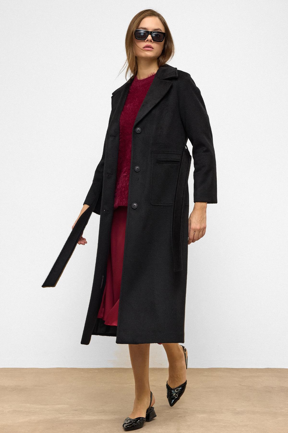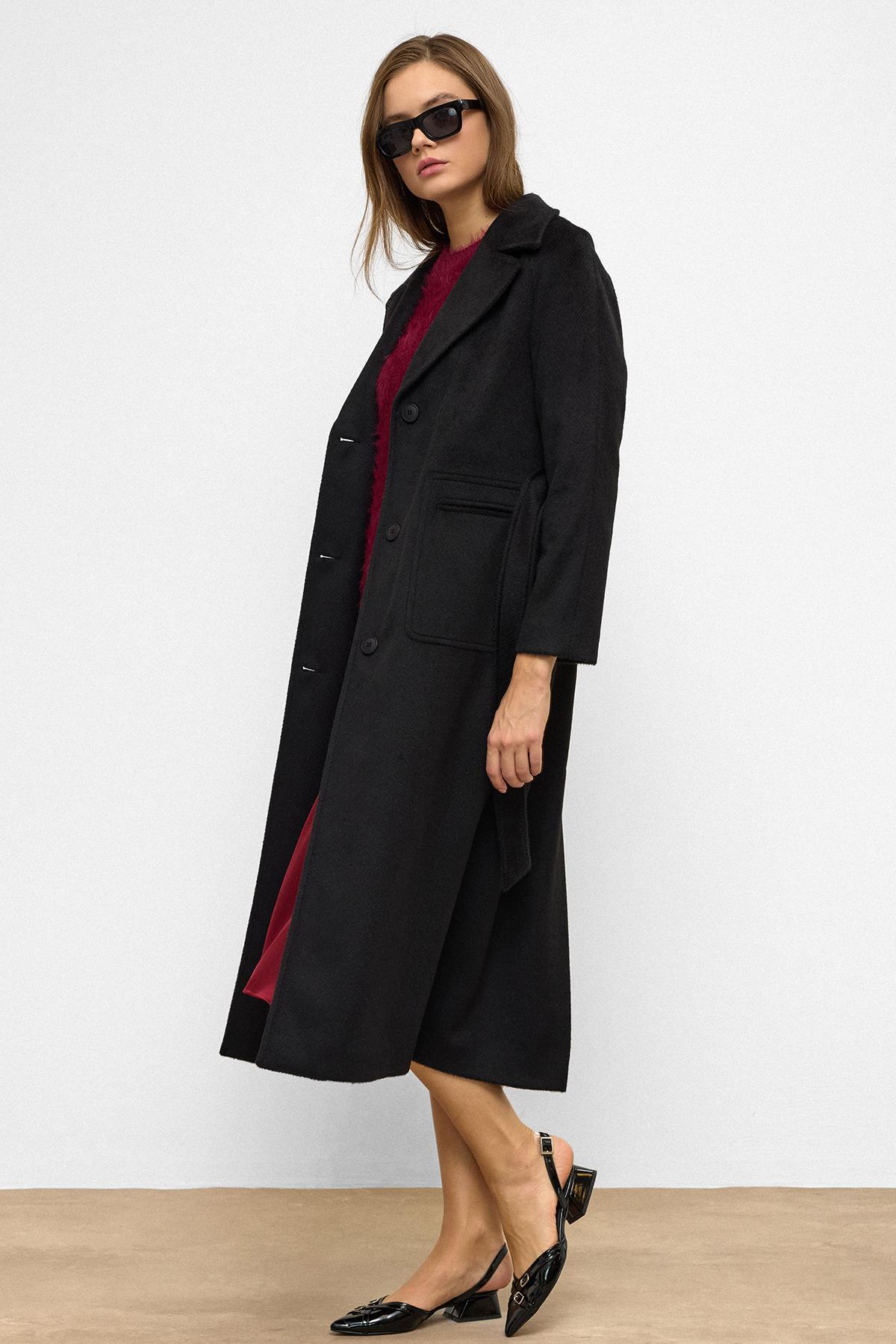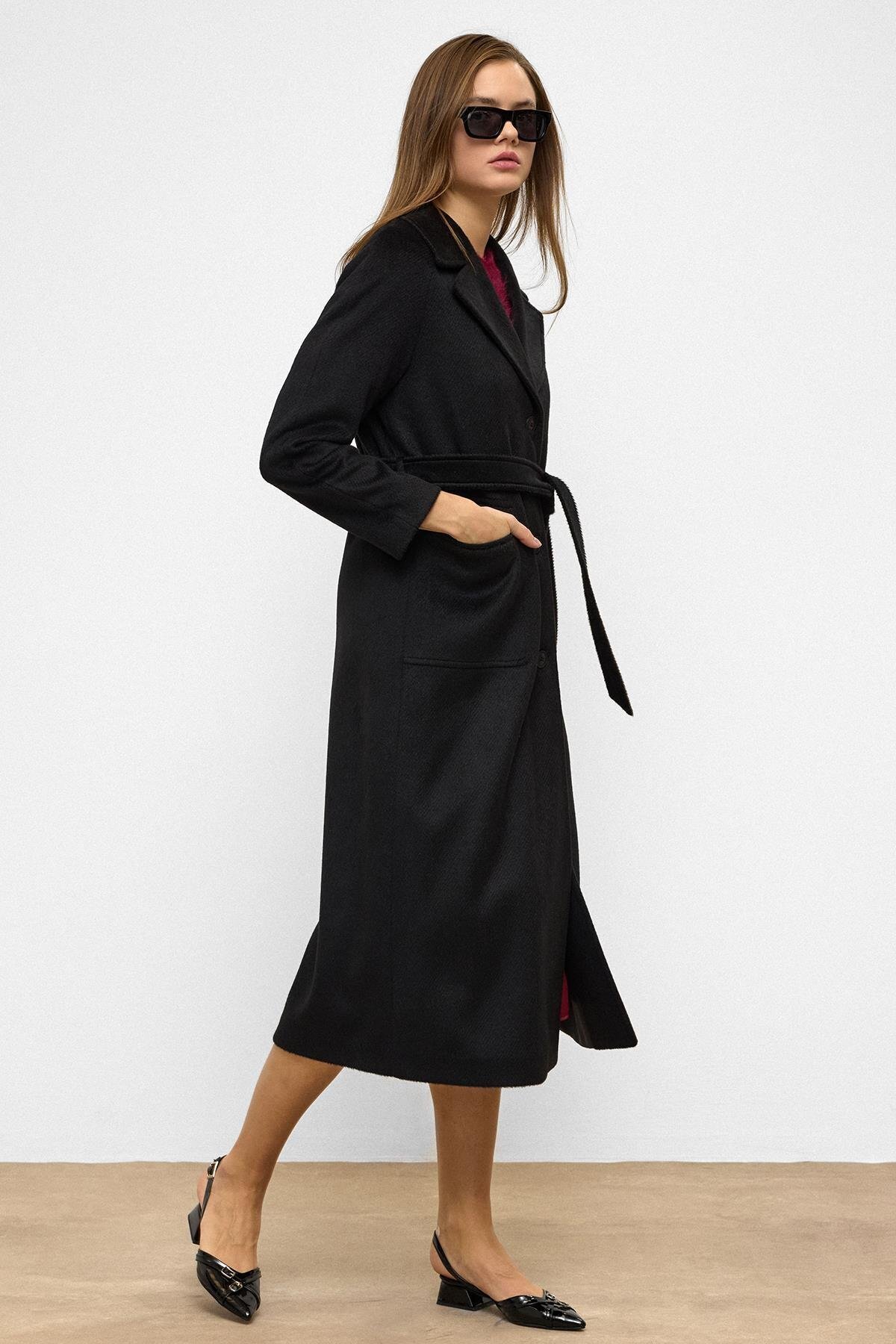 Olcay Raglan Sleeve Belted Moher Coat BLACK 3156 | ByTR