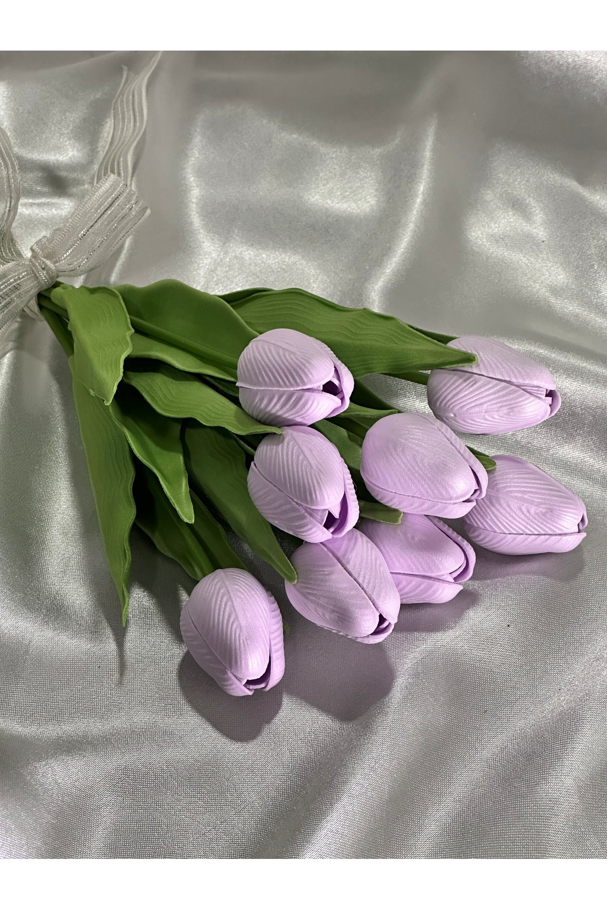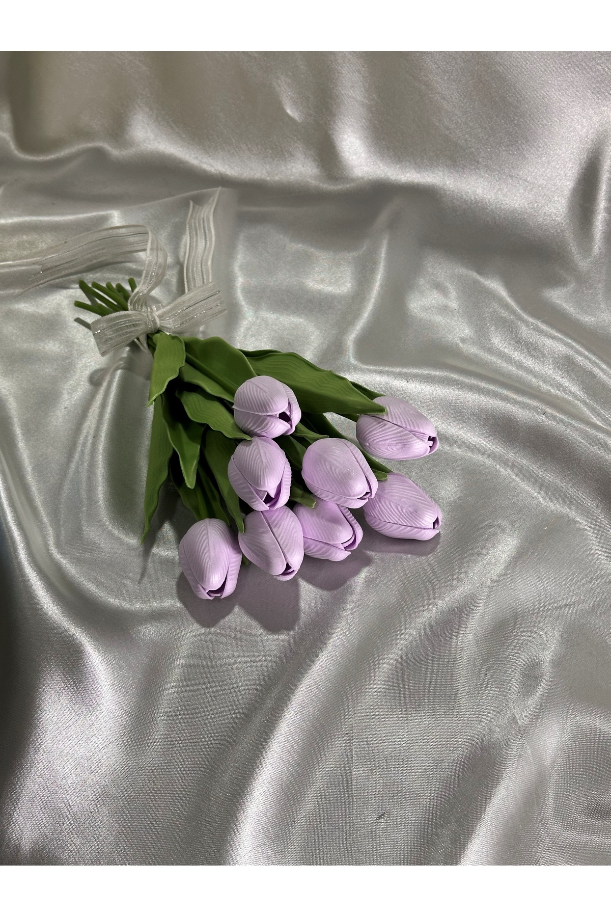 Smyrna Çiçek LILAC Wet Tulip, No Fade, No Yellowing, Real Textured Bundle of 8 | ByTR