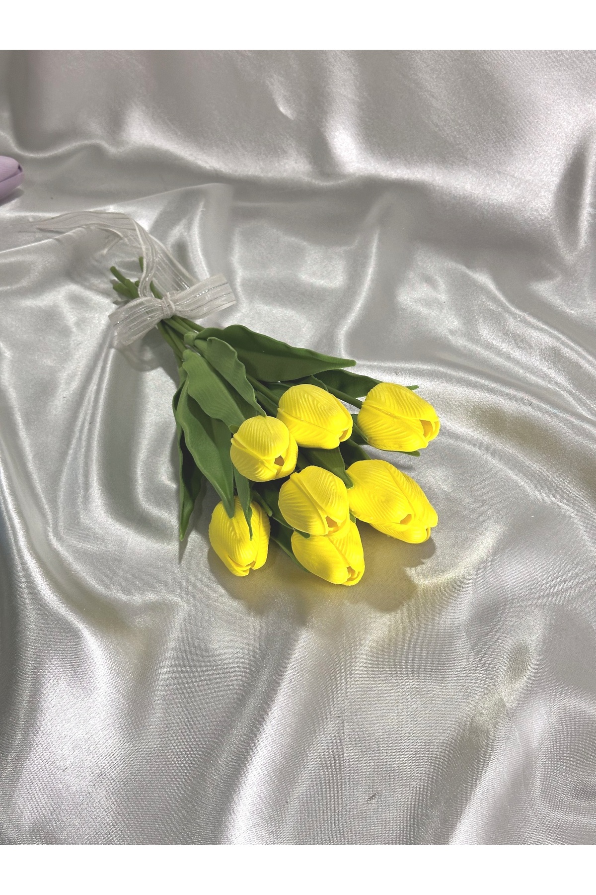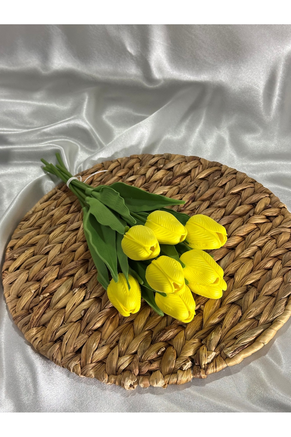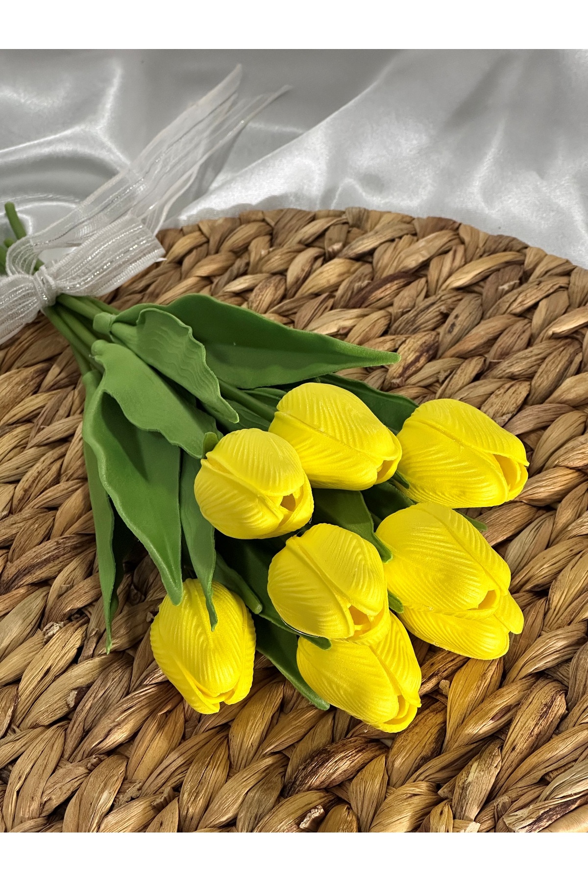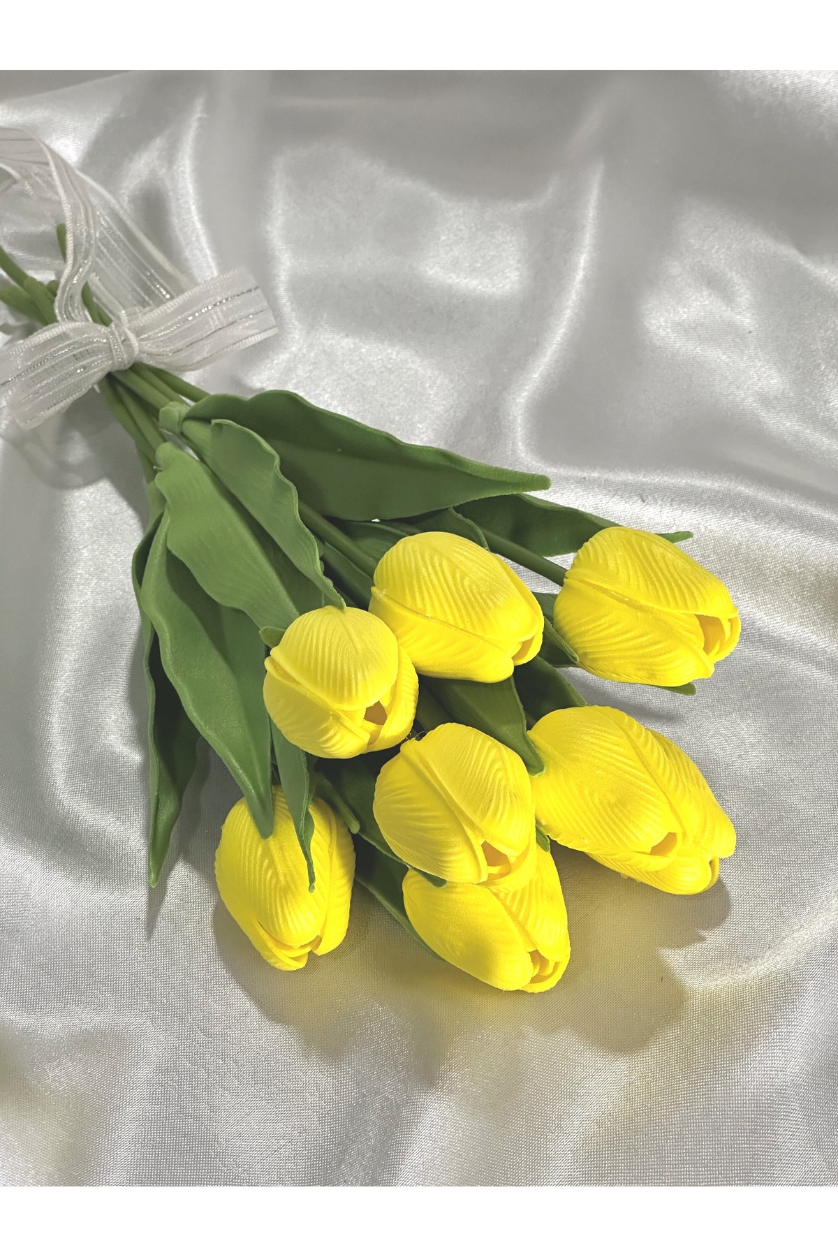 Smyrna Çiçek YELLOW Wet Tulip, No Fade, No Yellowing, Real Textured Bunch of 8 | ByTR
