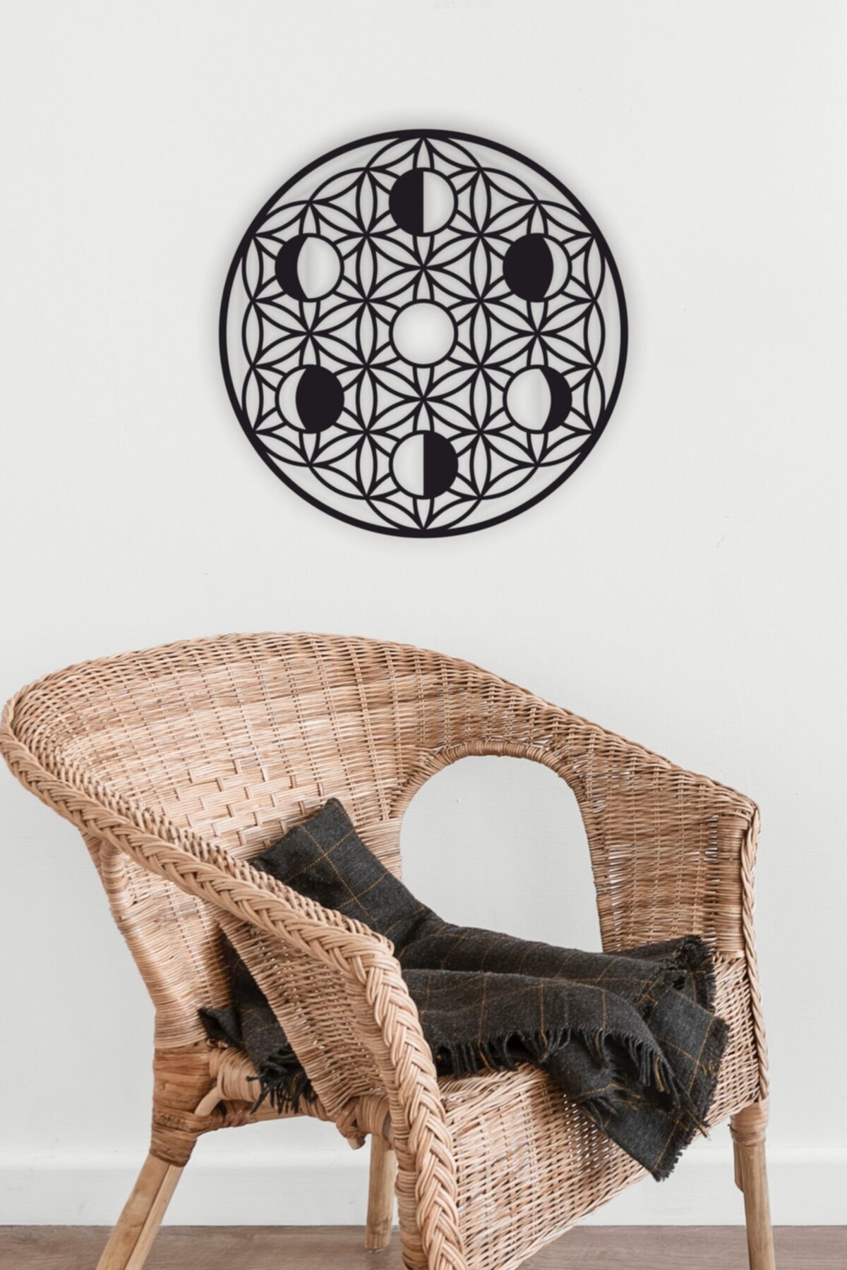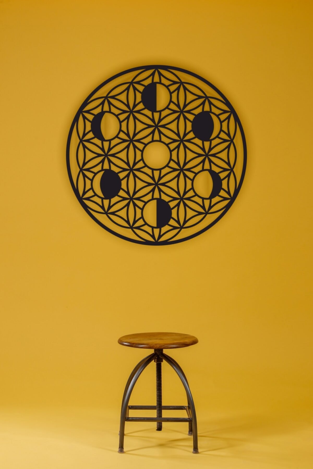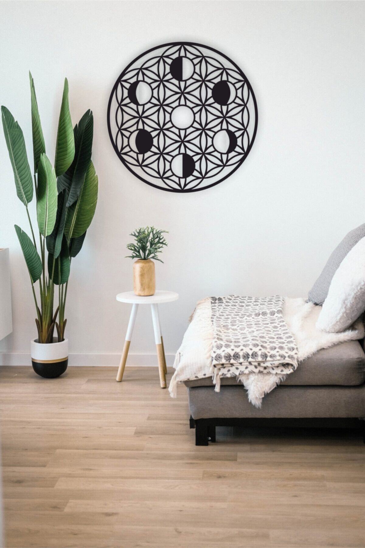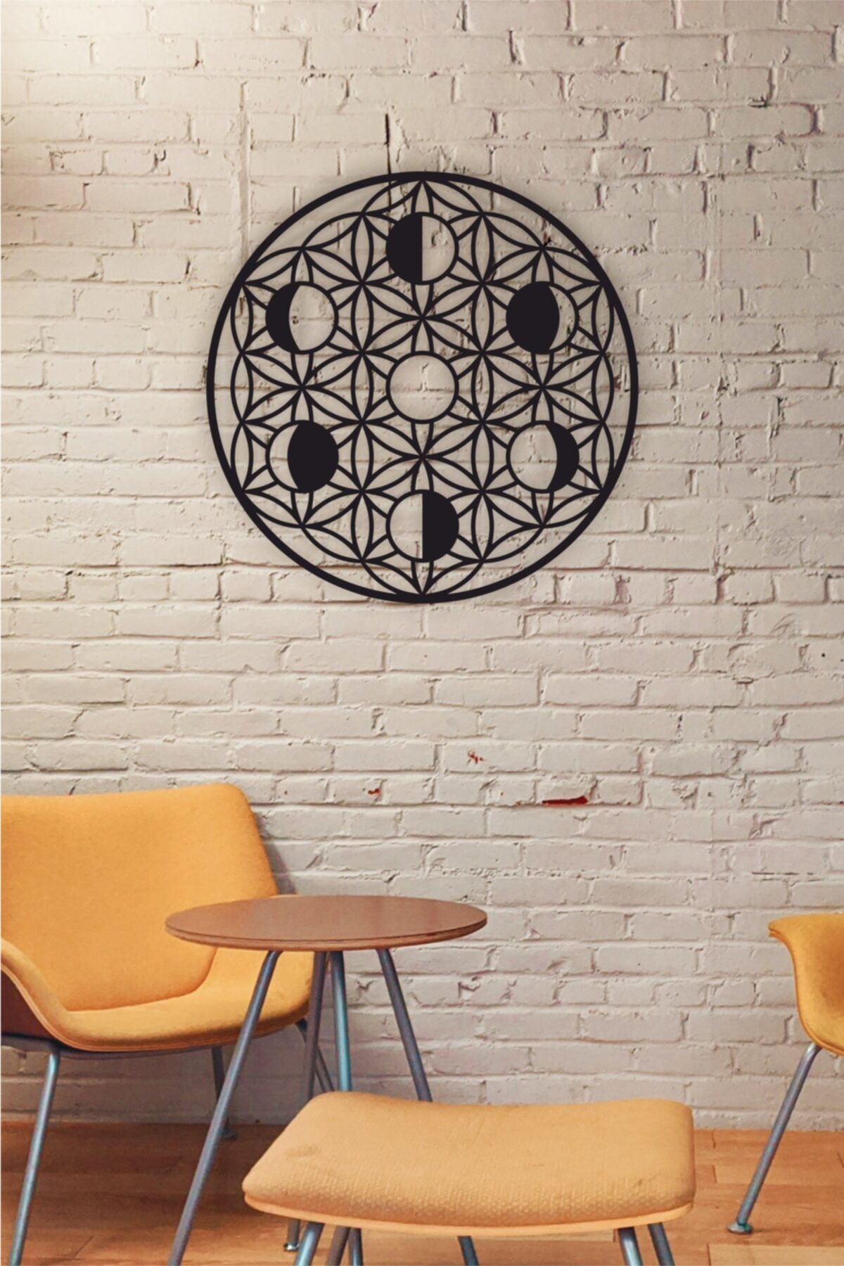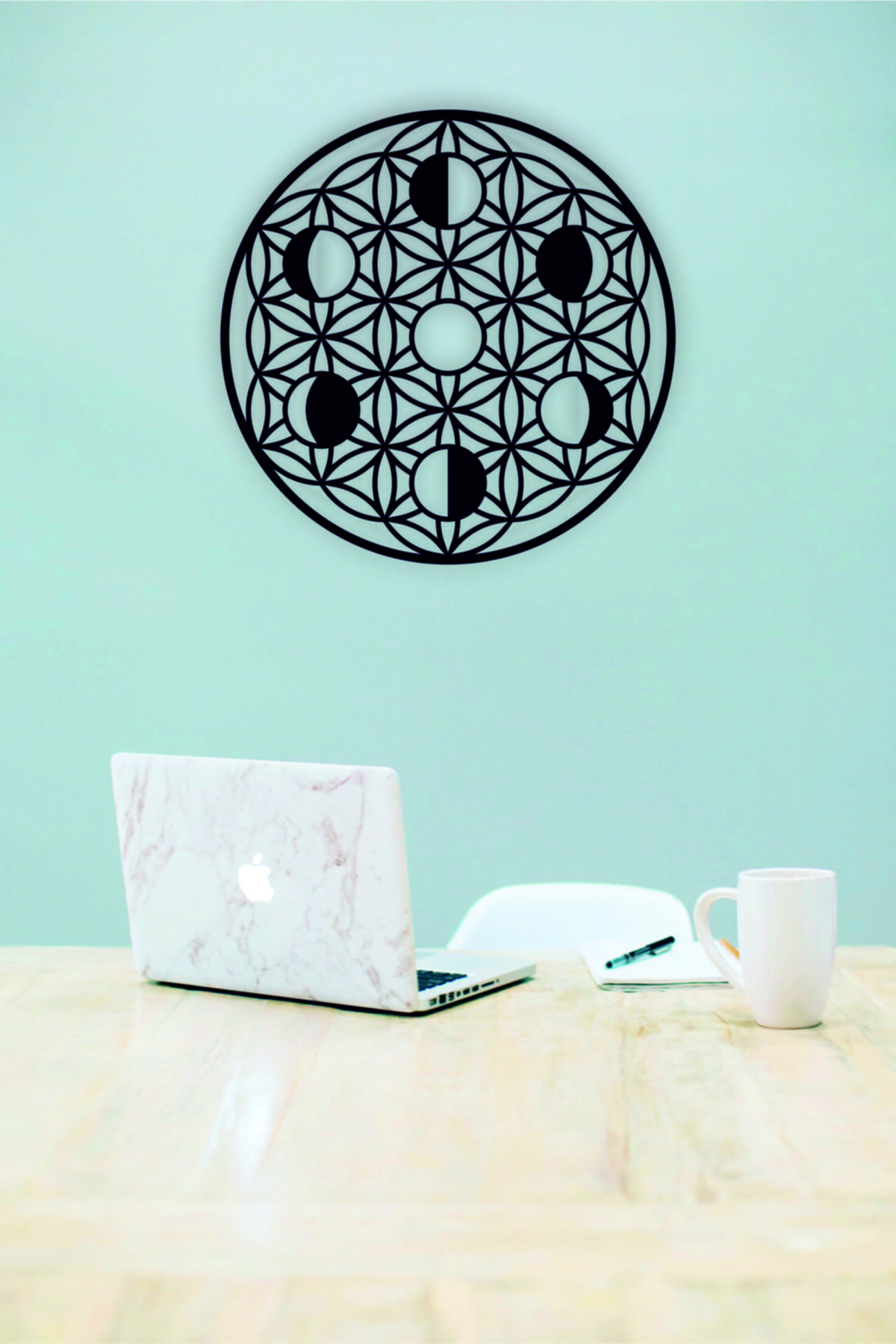 Life flower sacred geometry wall decor, which adds elegance to the decoration of your home with its modern design, attracts attention with its moon phases motifs