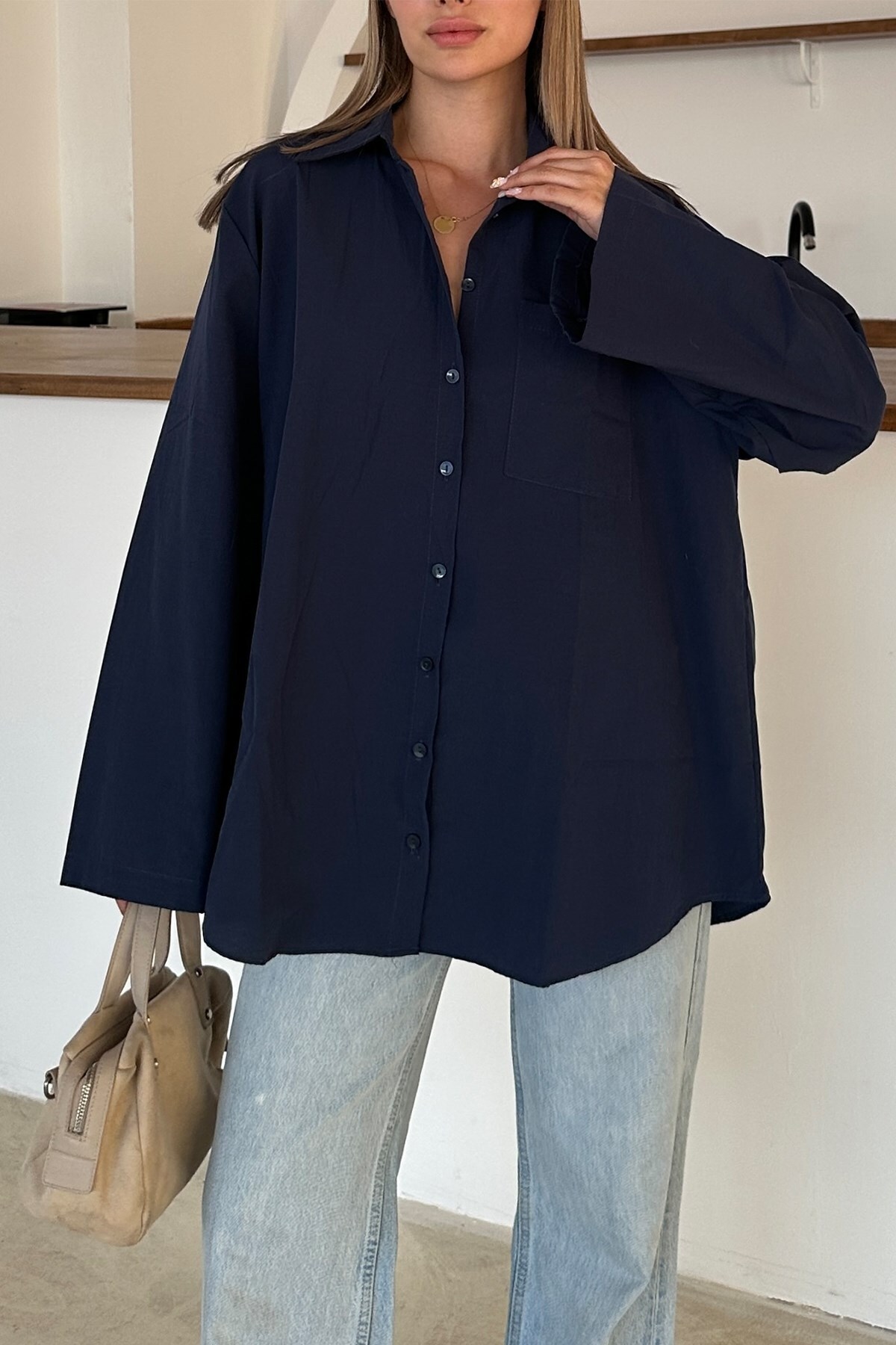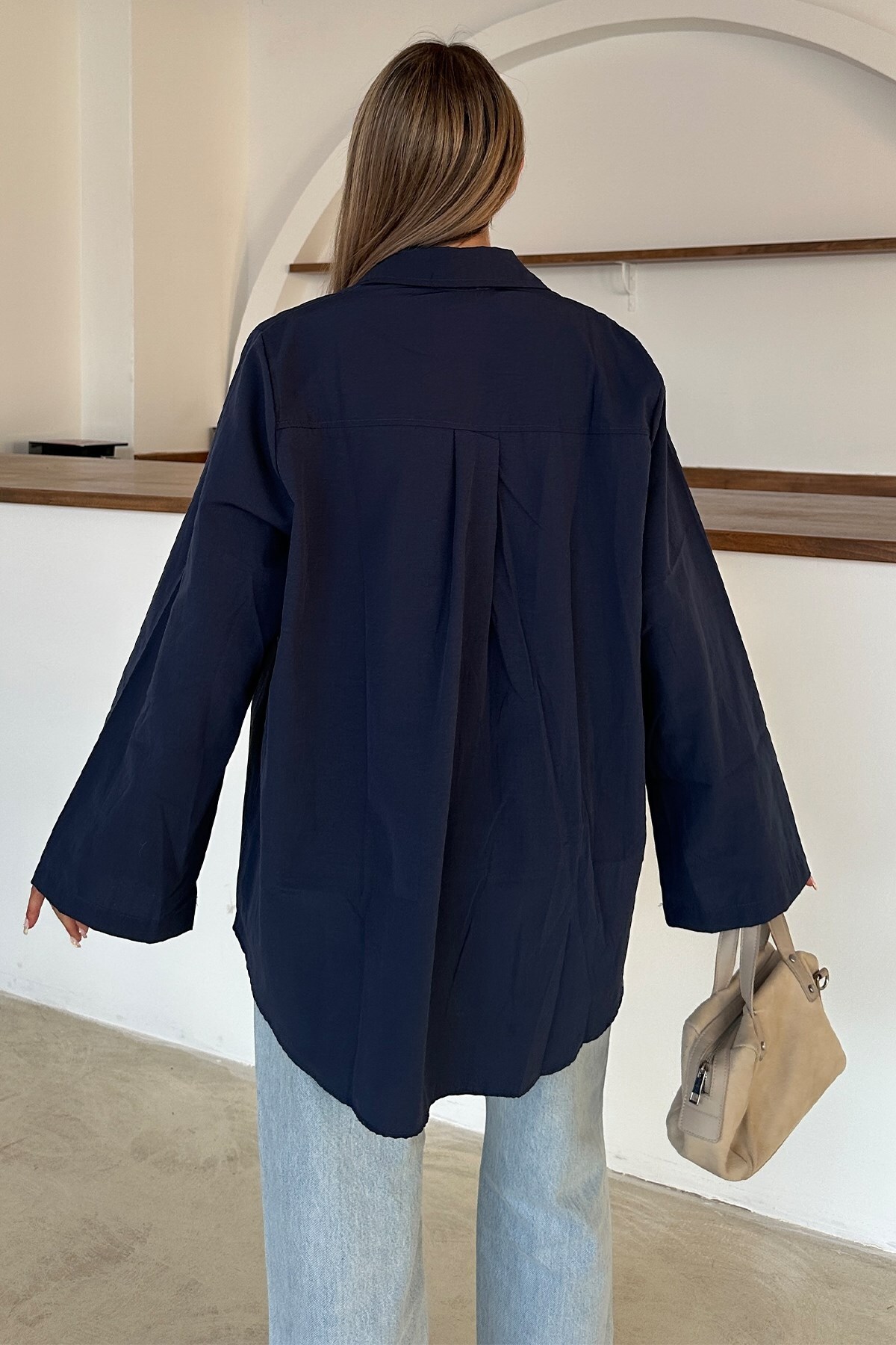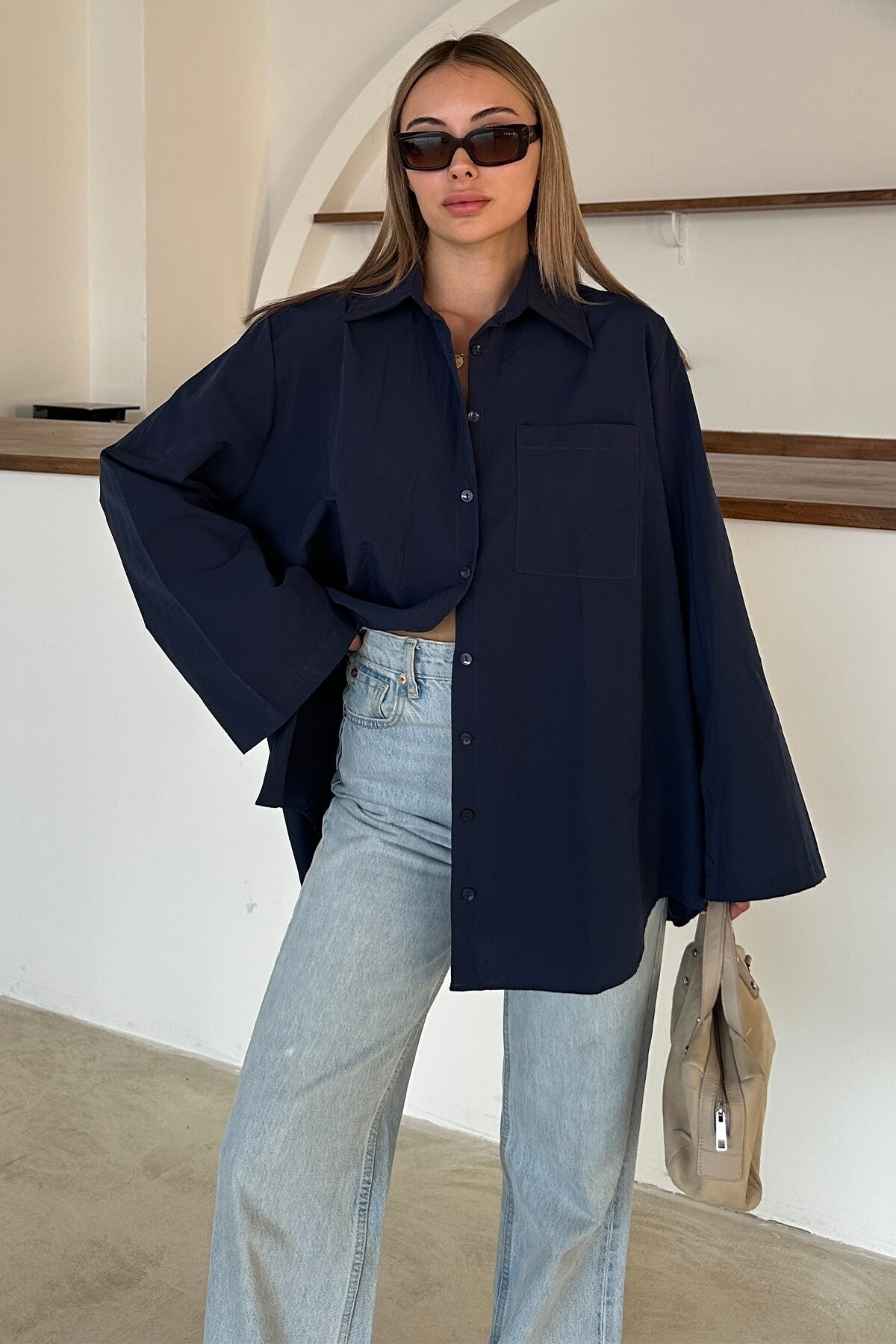 Olcay Spanish Sleeve Loose Cotton Shirt NAVY BLUE 9365 | ByTR