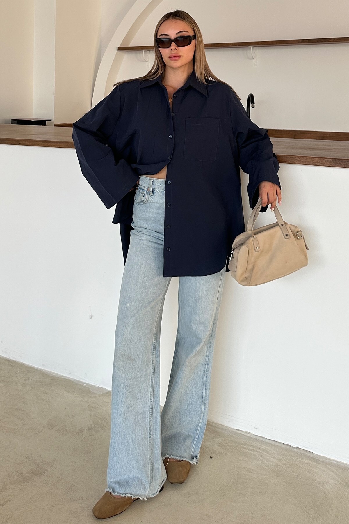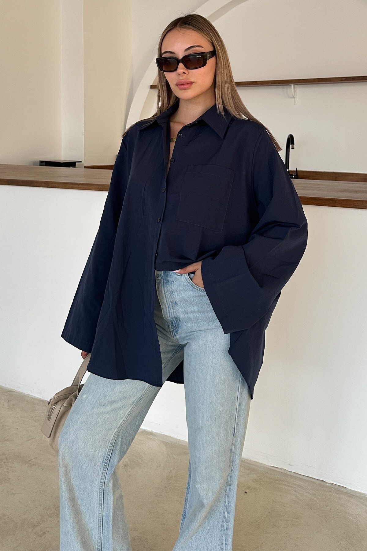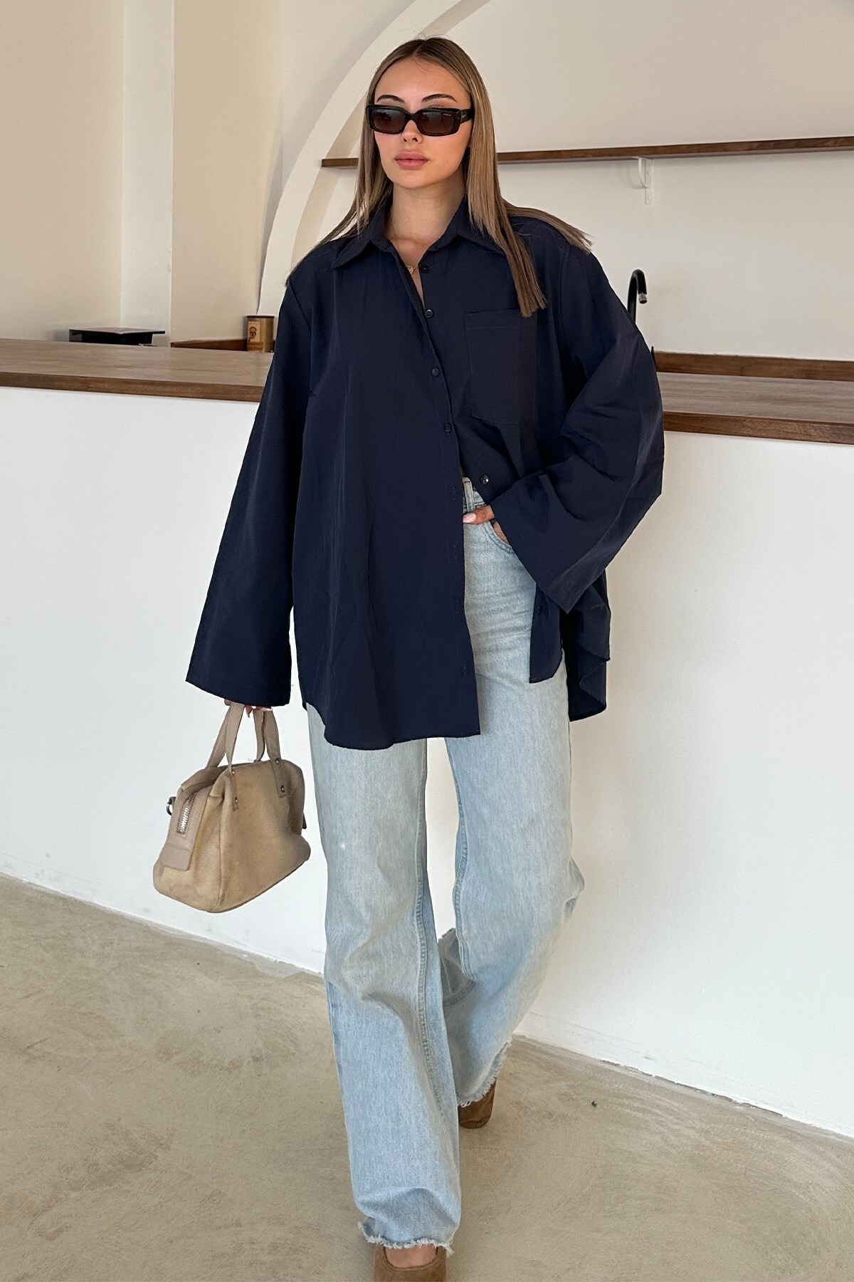 Olcay Spanish Sleeve Loose Cotton Shirt NAVY BLUE 9365 | ByTR