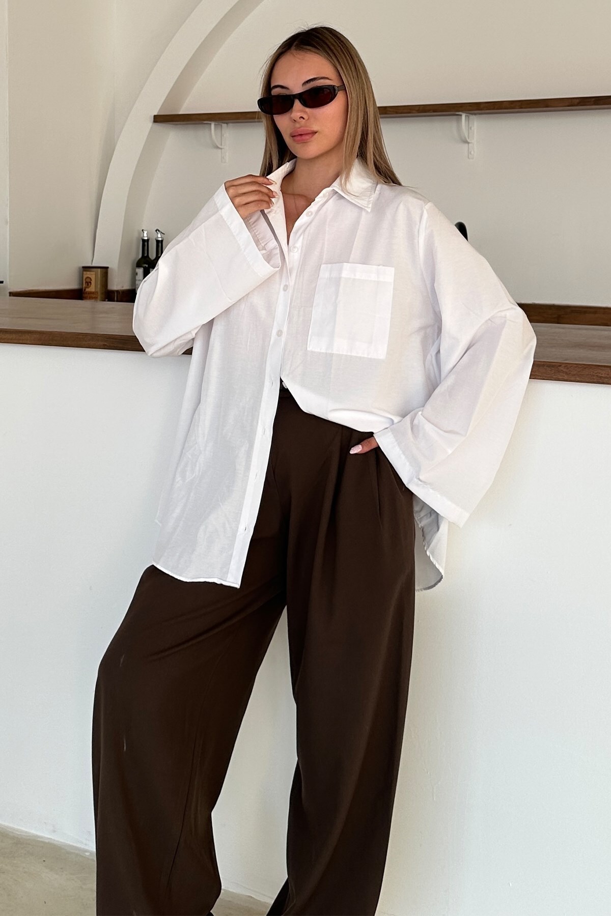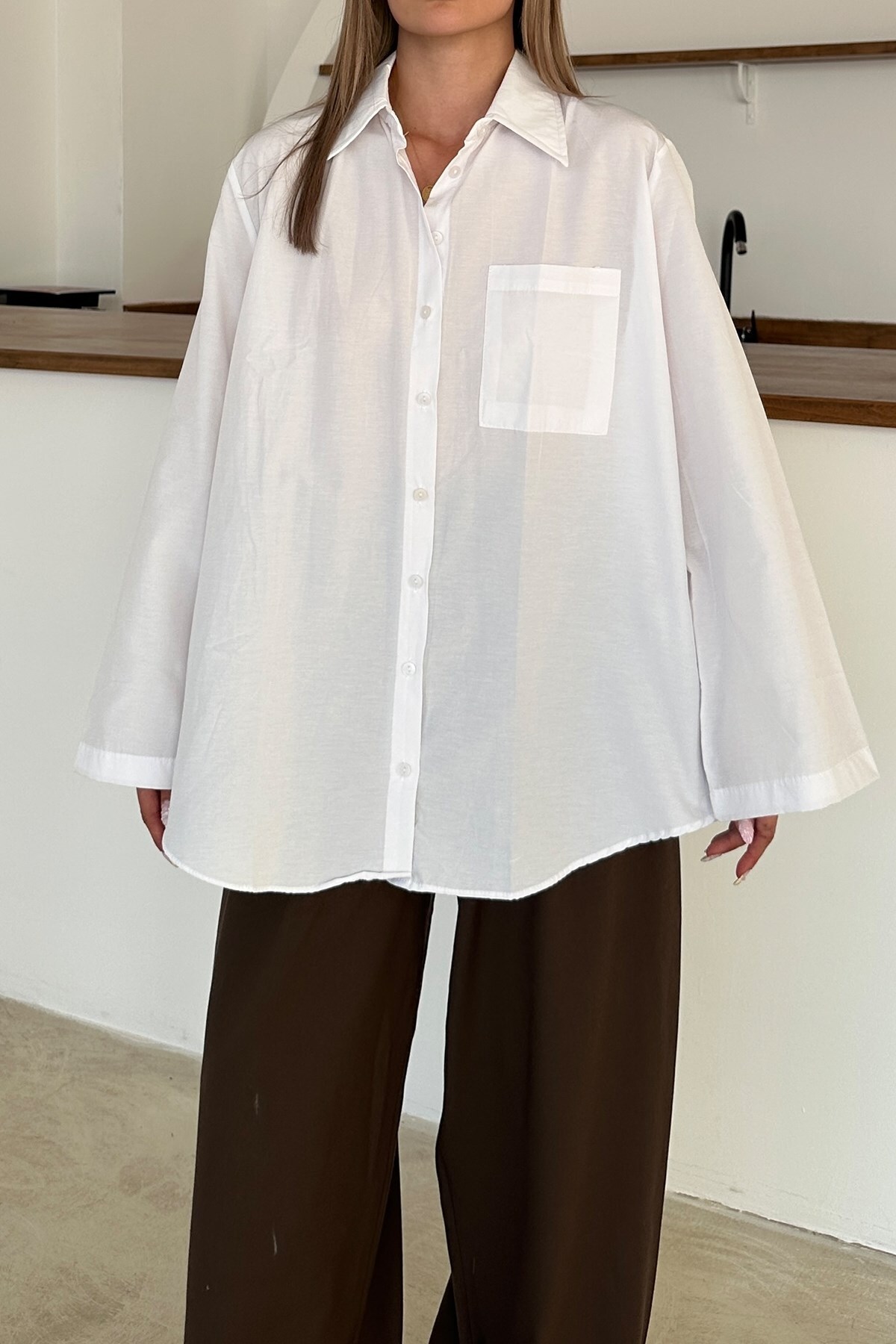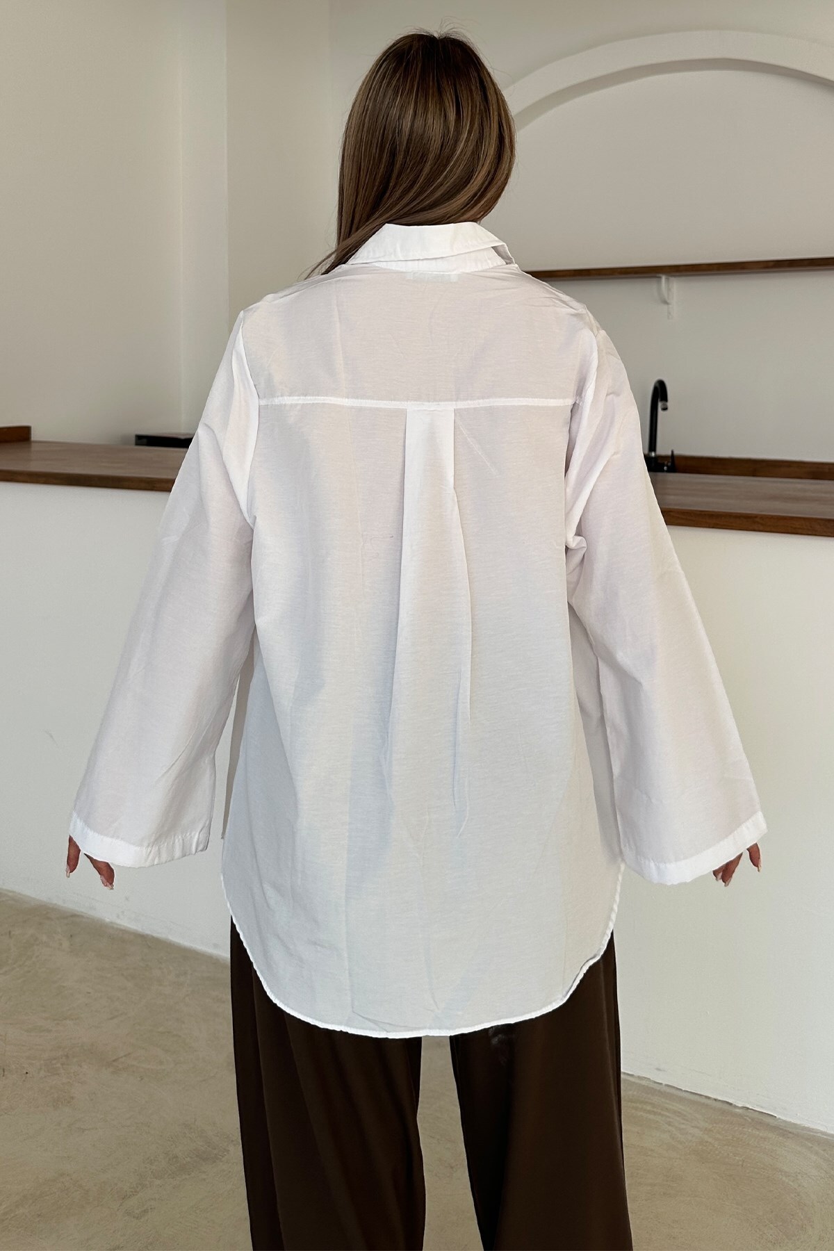 Olcay Spanish Sleeve Loose Cotton Shirt WHITE 9365 | ByTR
