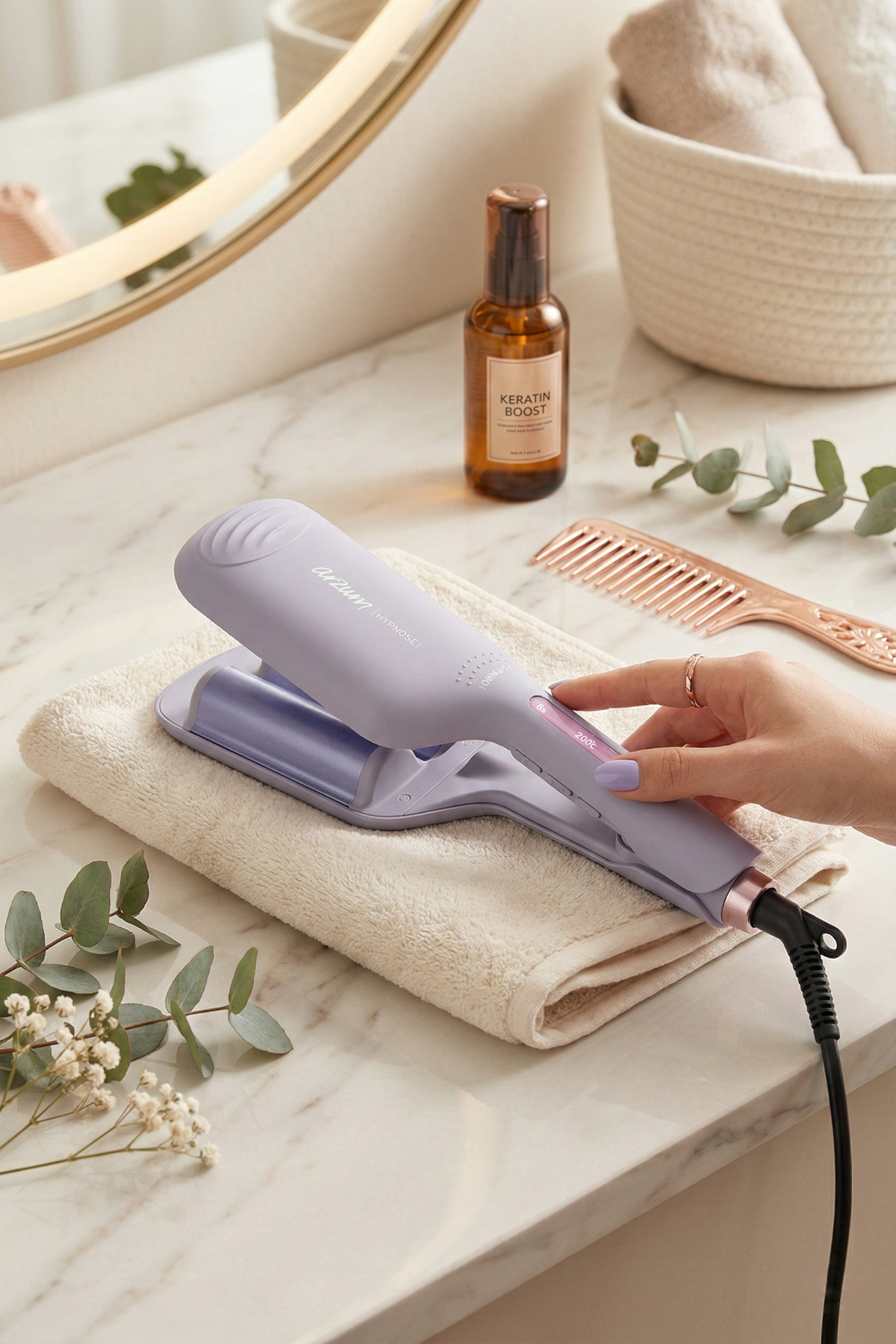 32 mm tong thickness is ideal for creating wide and distinctive, natural-looking waves.
