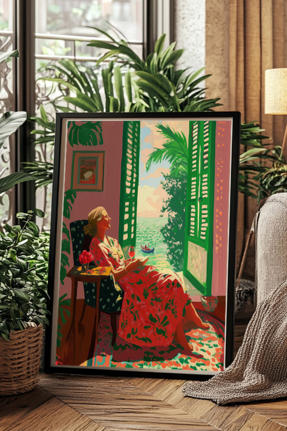 Taranist Poster - Maximalist Decor Happy Blonde Woman Peaceful Drawing Beach View | ByTR