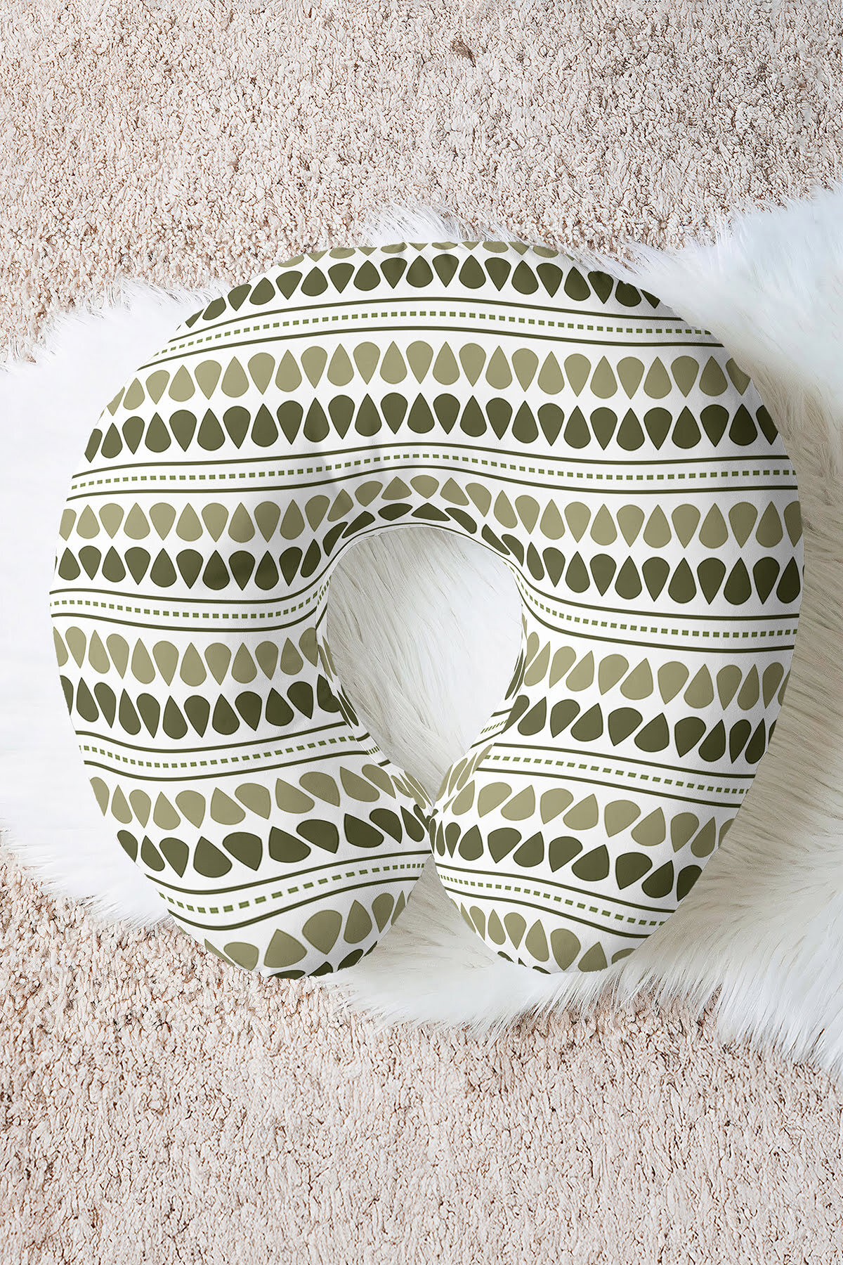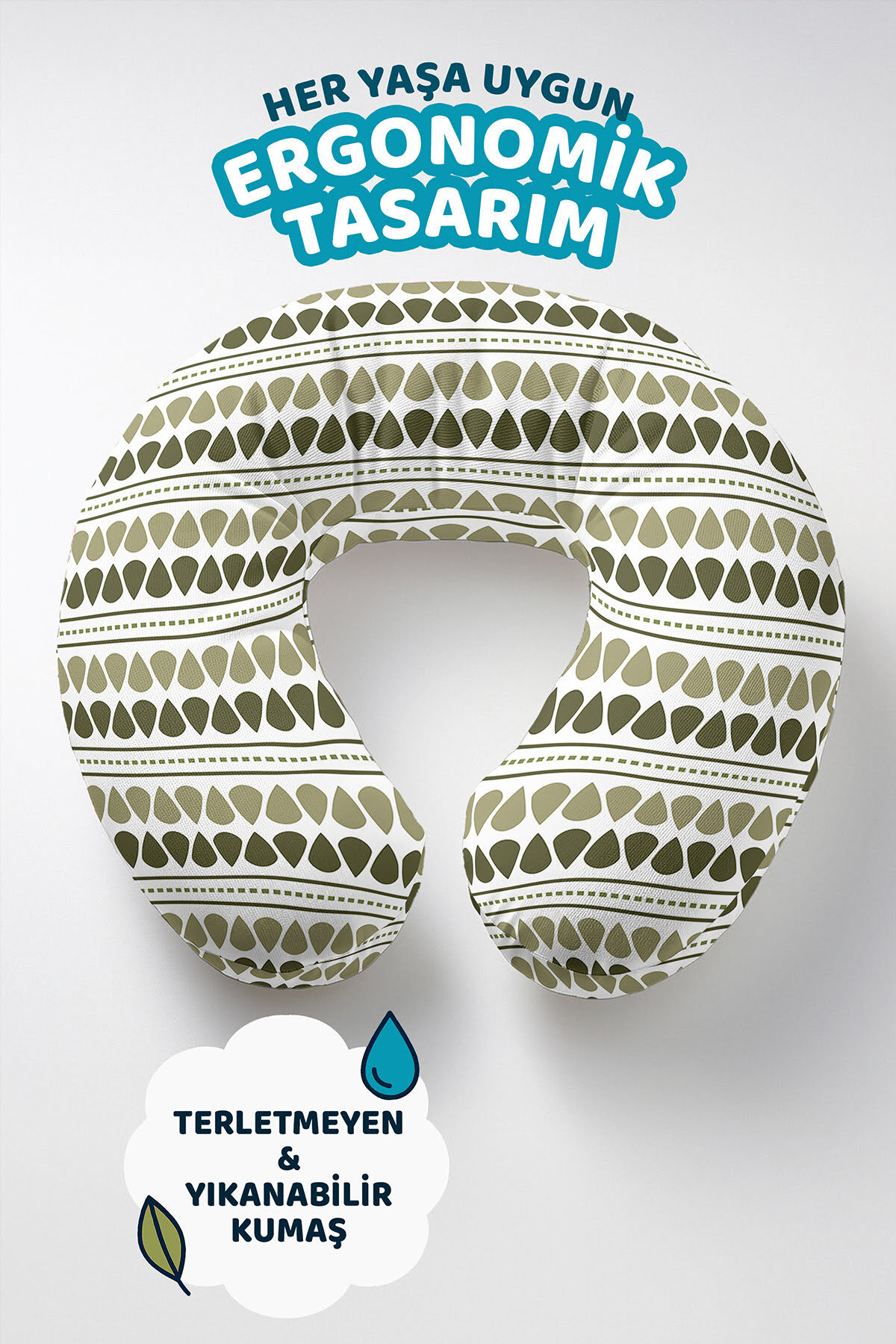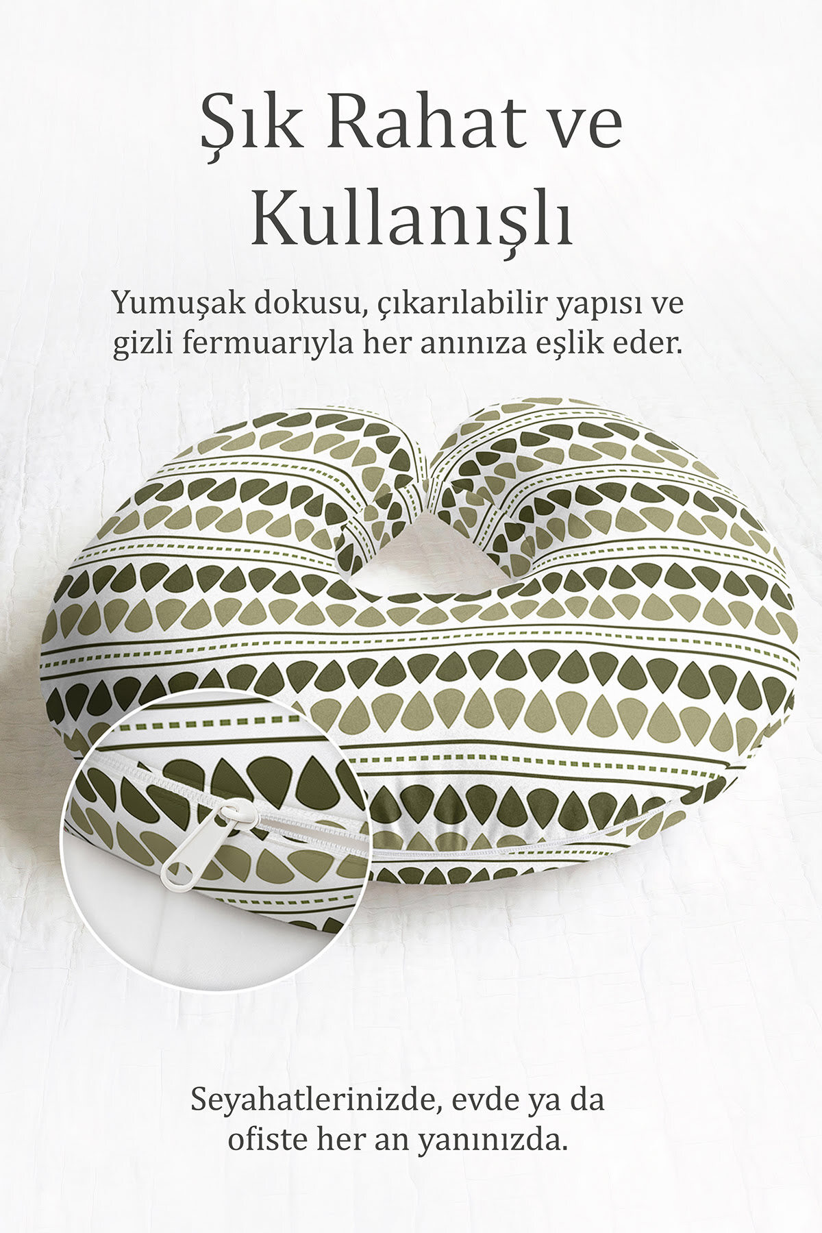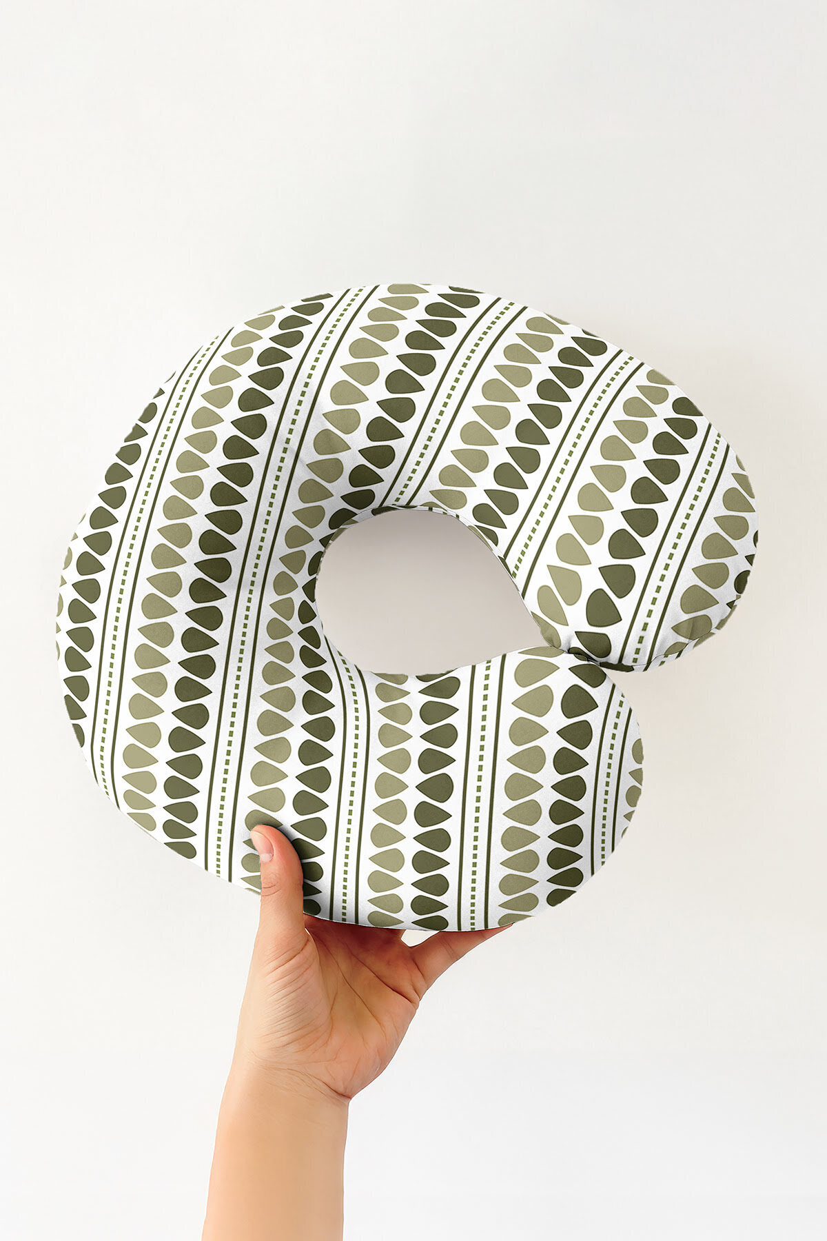 Olive Green Geometric Patterned Neck Pillow is a decorative and functional product with its ergonomic structure and stylish design.