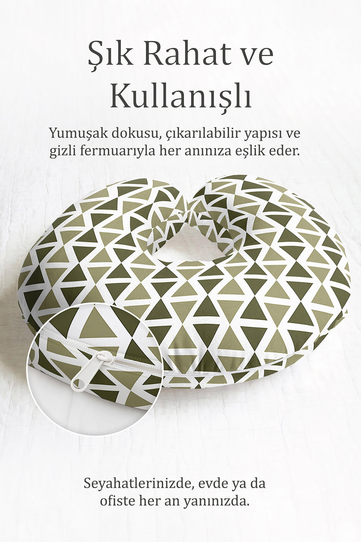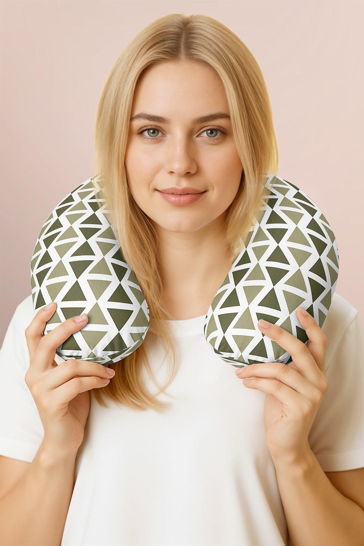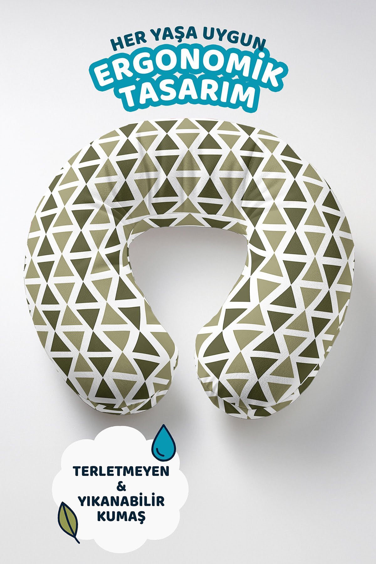 Evimde Bambaşka Modern Geometric Patterned Neck Pillow - Minimalist Khaki White Soft Travel Pillow | ByTR