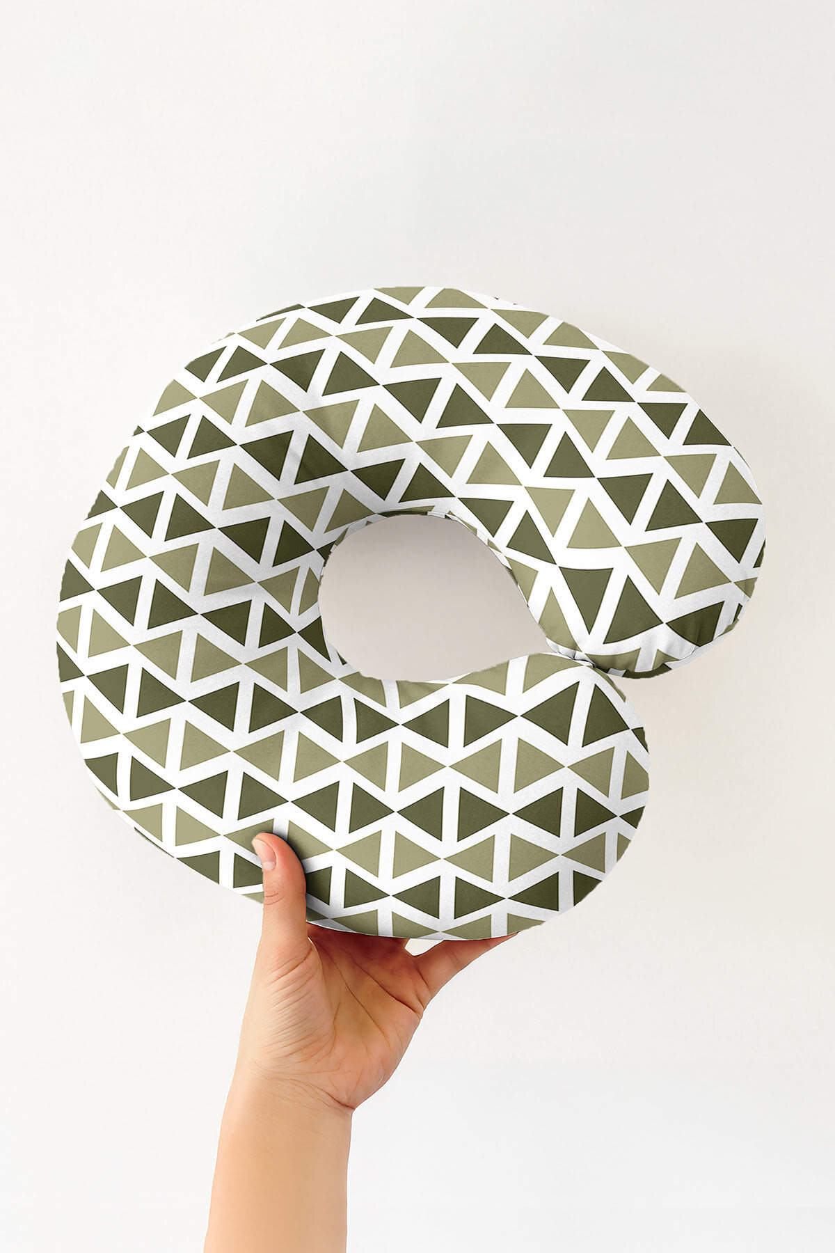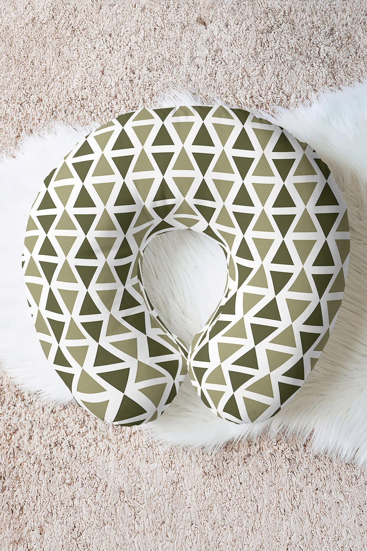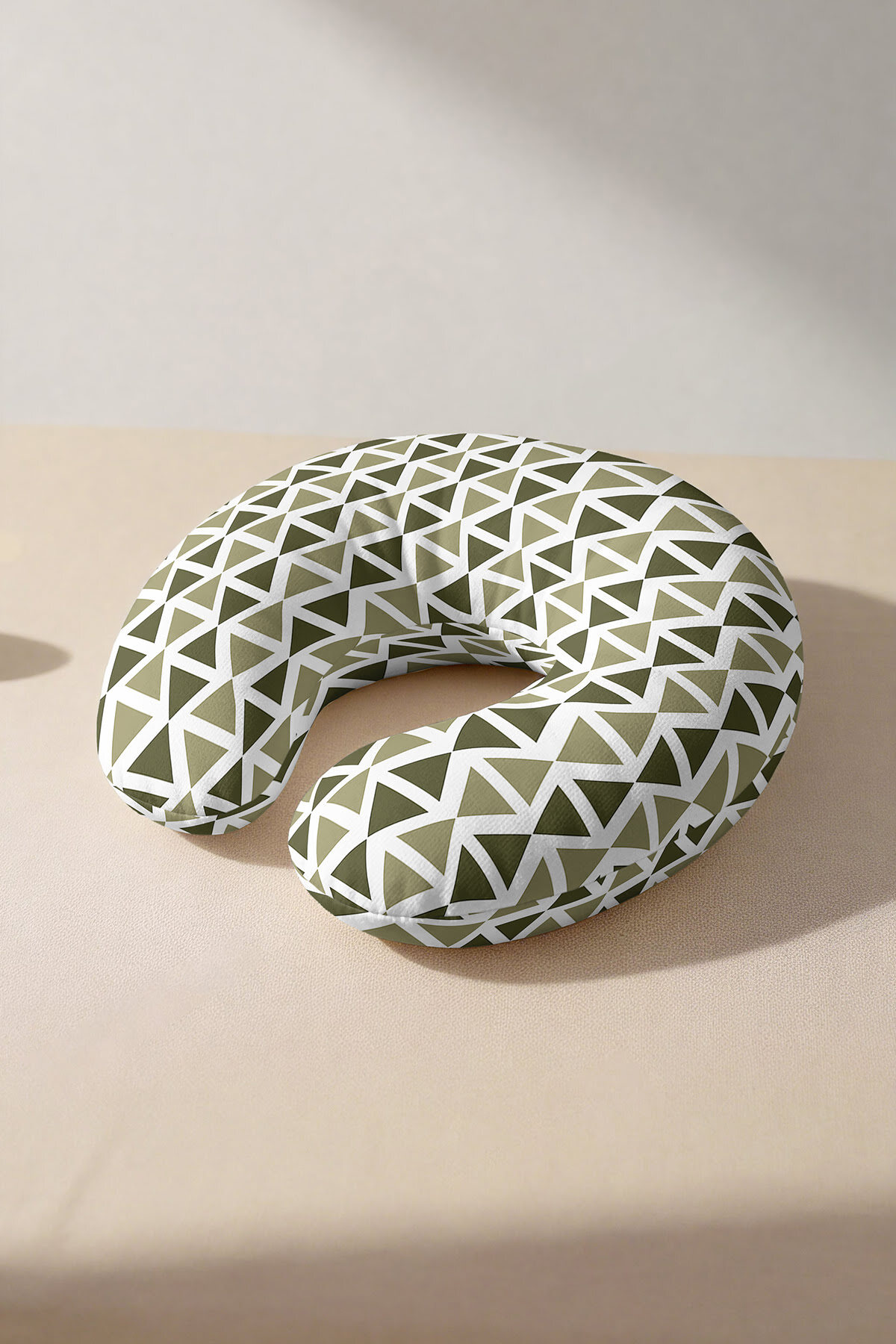 Evimde Bambaşka Modern Geometric Patterned Neck Pillow - Minimalist Khaki White Soft Travel Pillow | ByTR