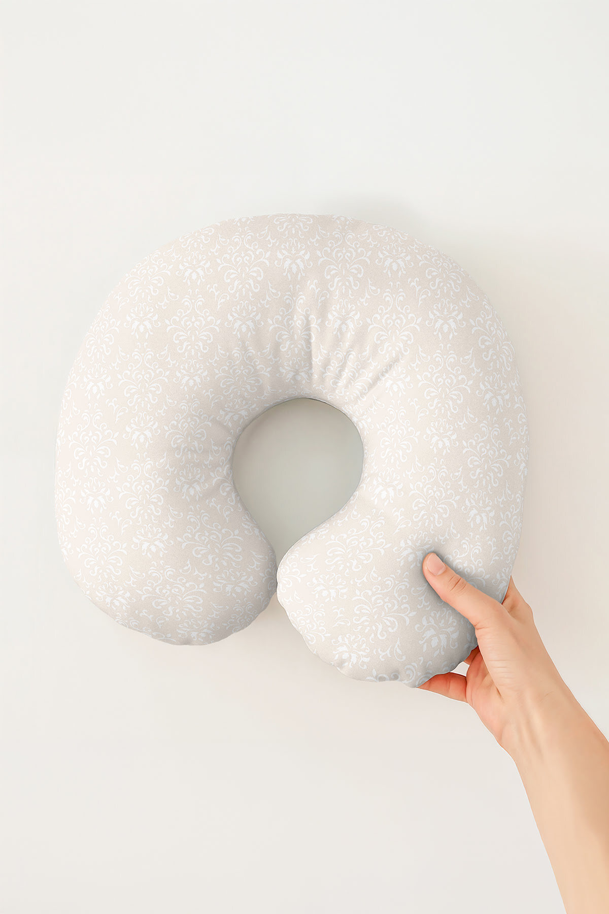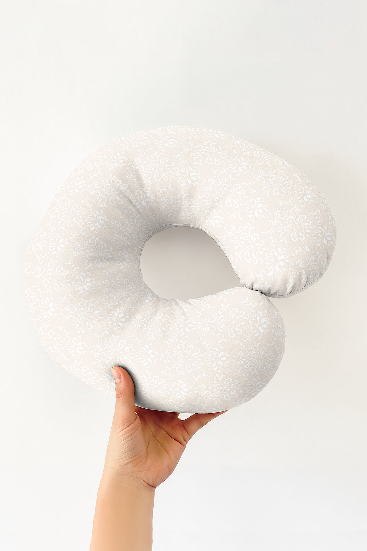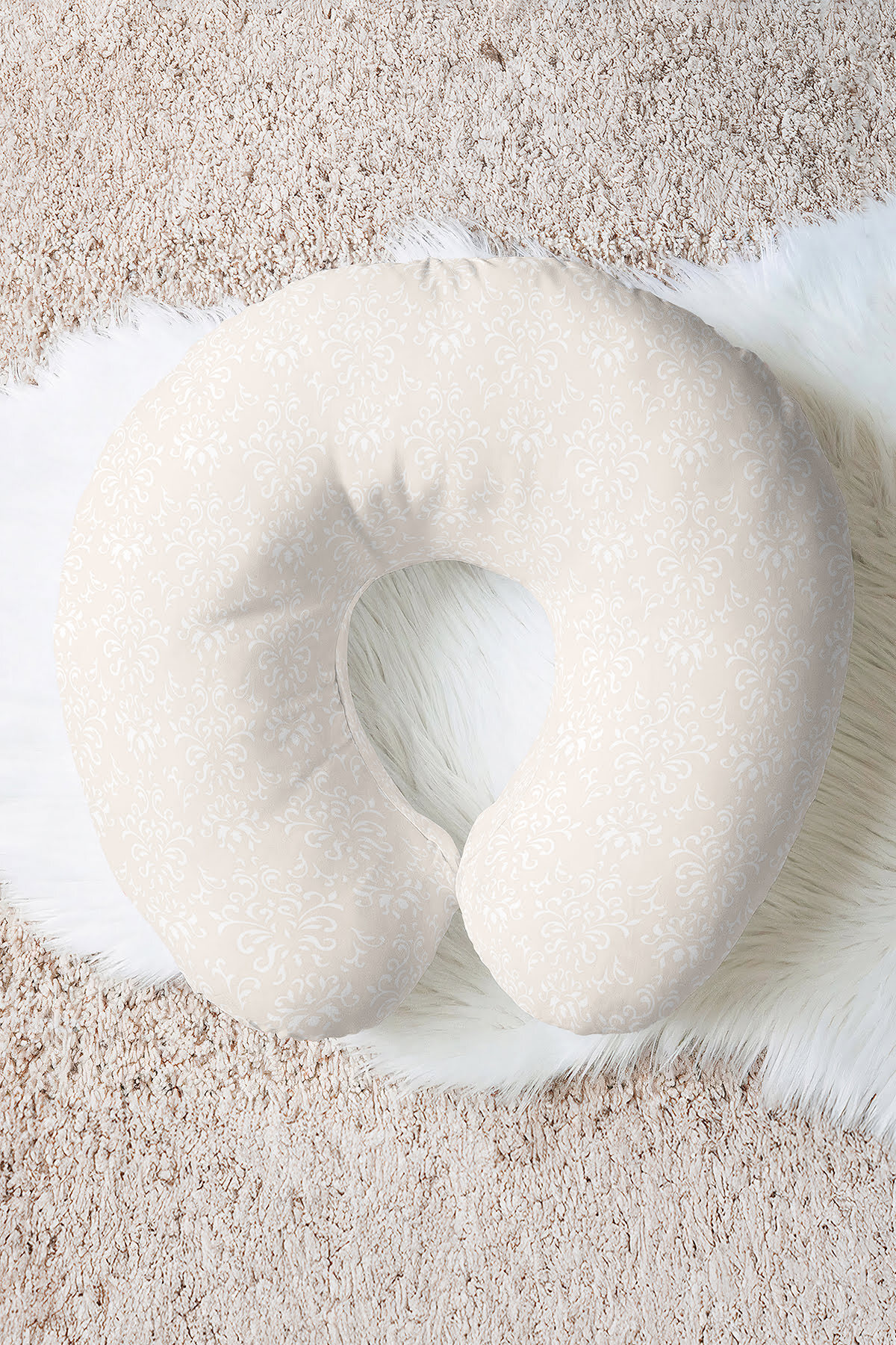 Elegant Floral Pattern Beige Soft Travel Pillow made with breathable velvet fabric