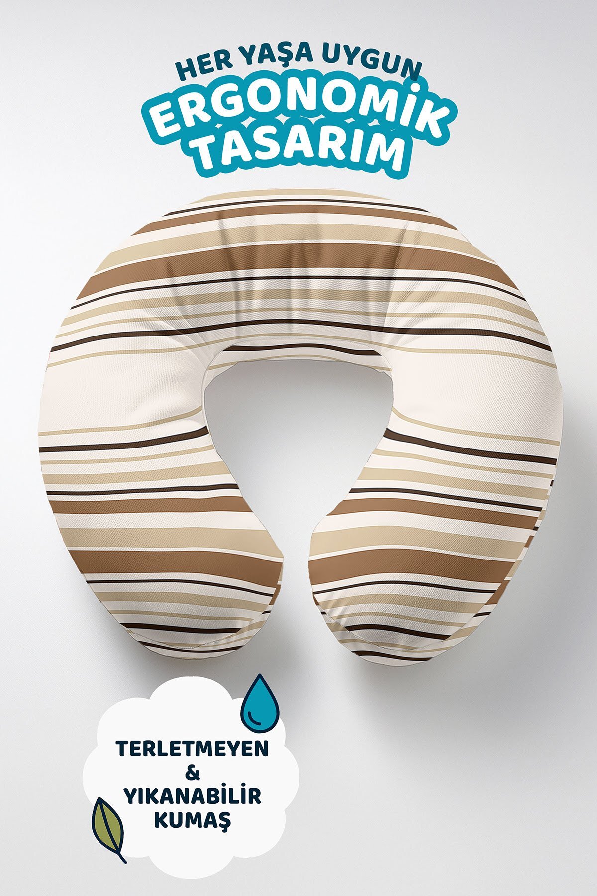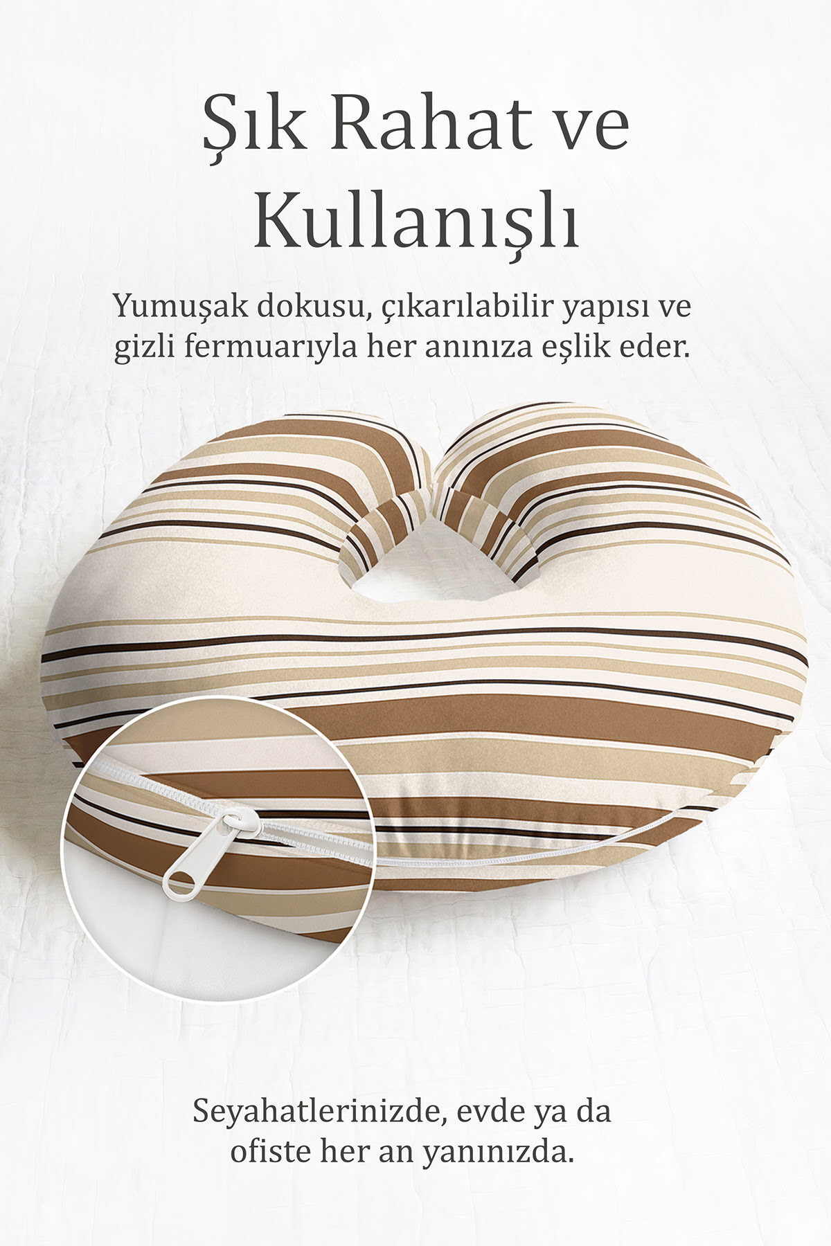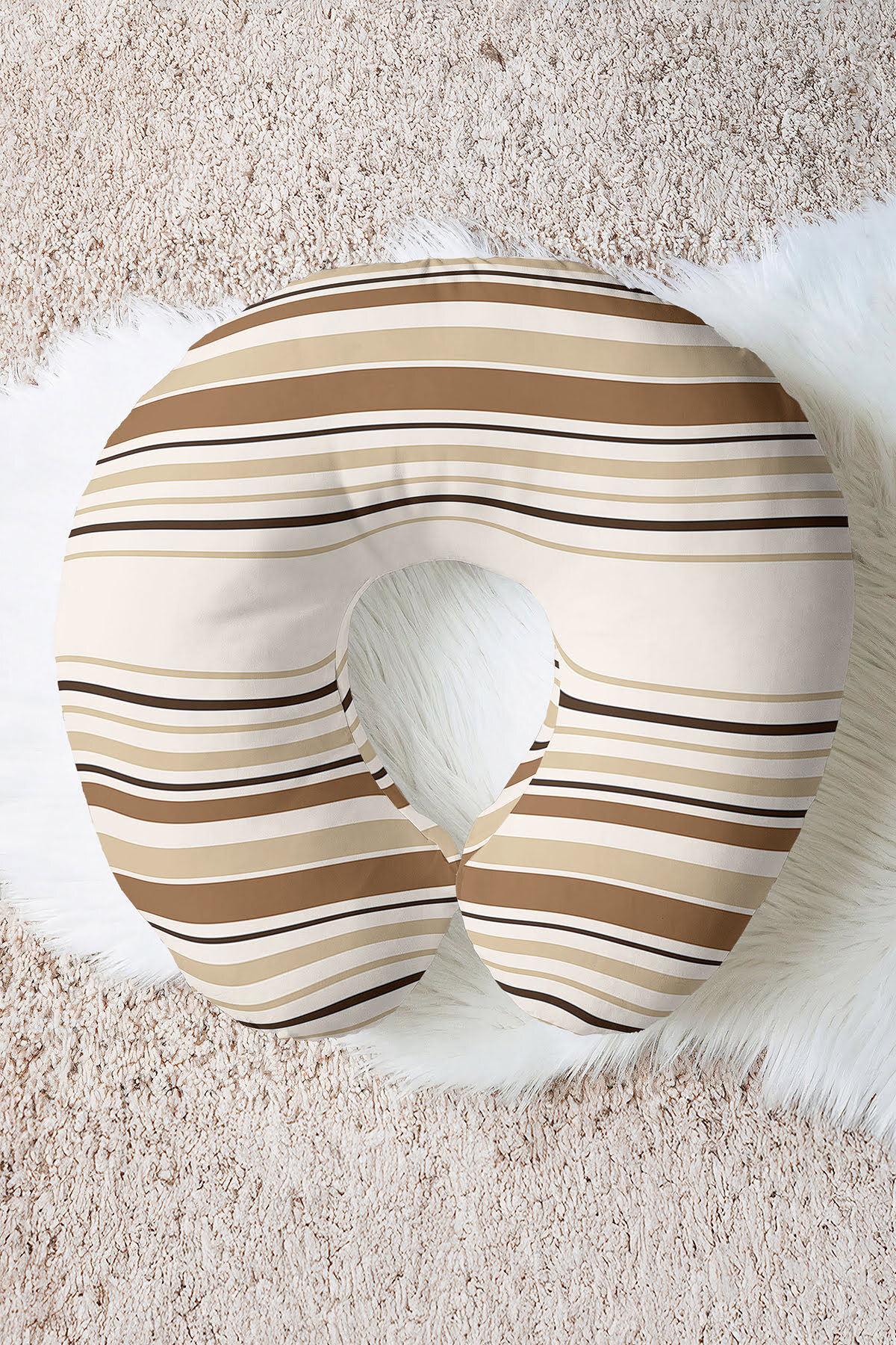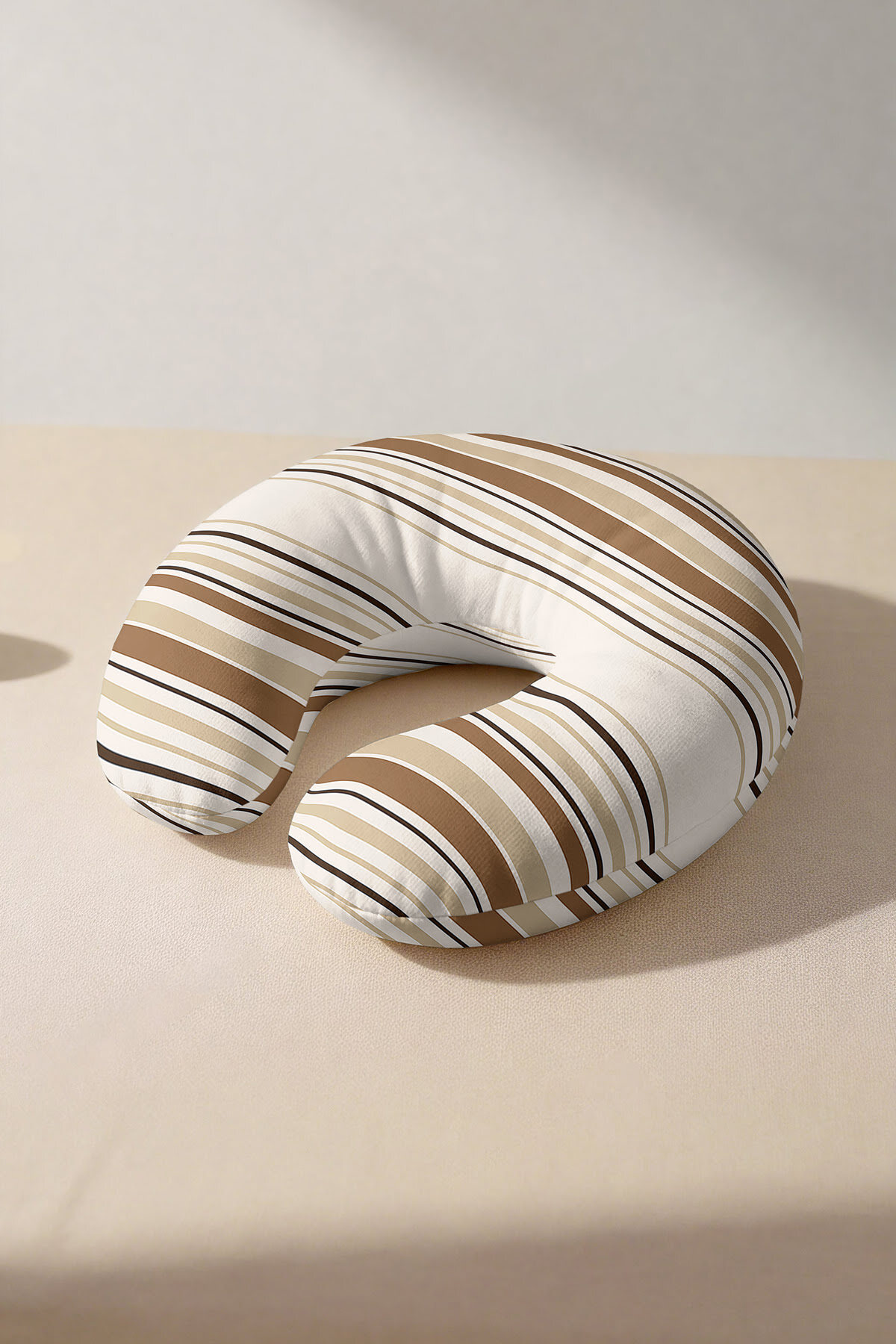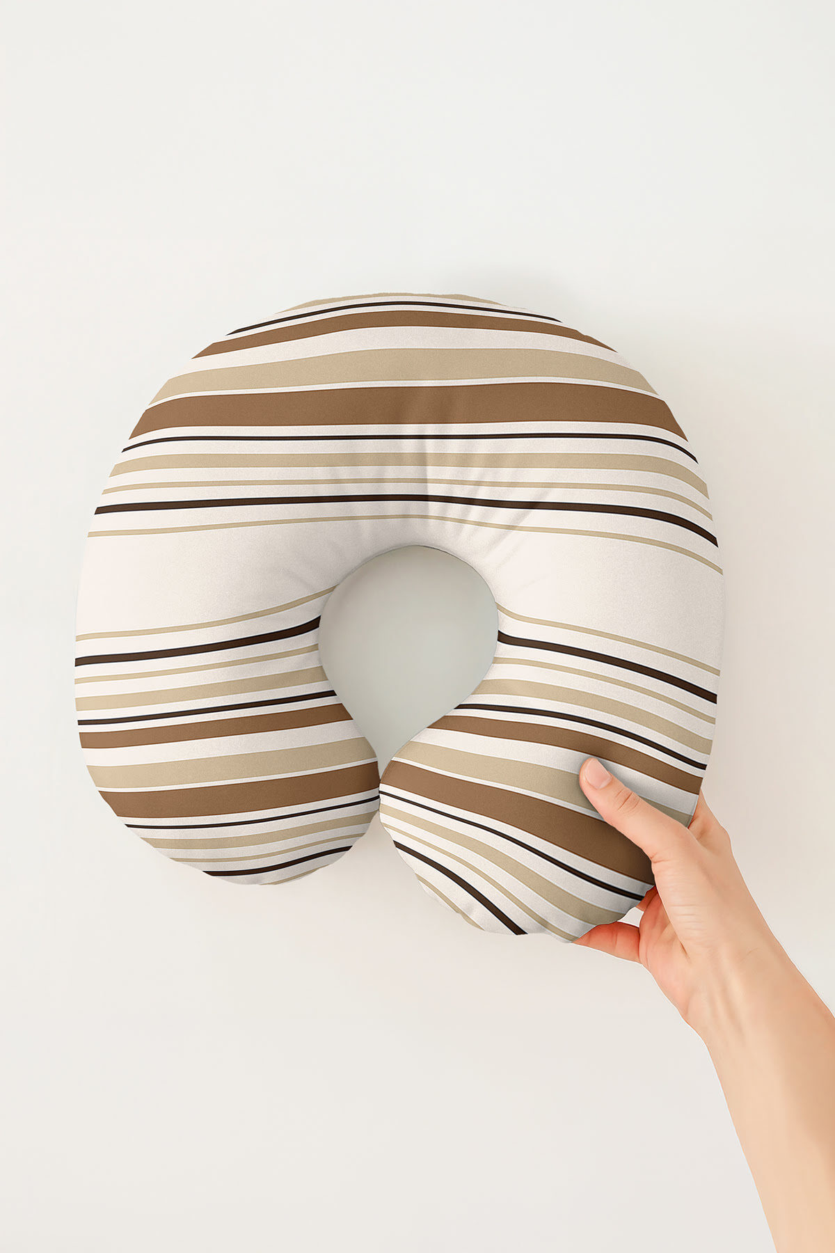 Cream Brown Striped Neck Pillow is both a decorative and functional product with its ergonomic structure and stylish design.