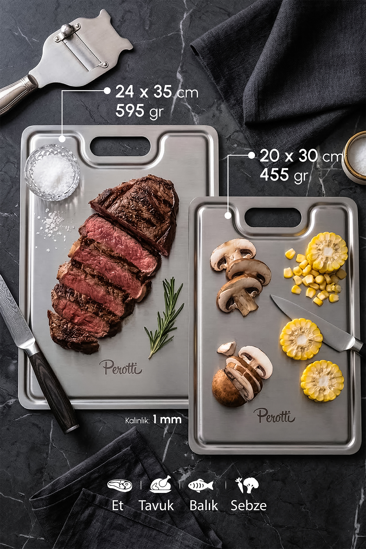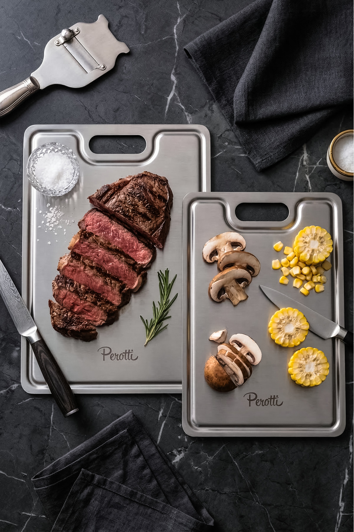 Perotti CutMaster 2-Piece Stainless Steel 18/10 Cutting Board Set24x34cm-20x30cm | ByTR