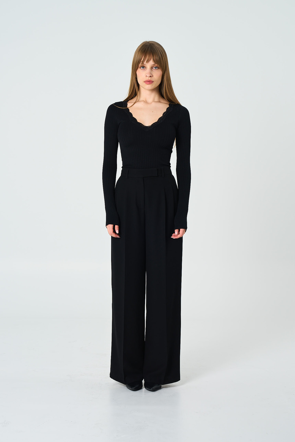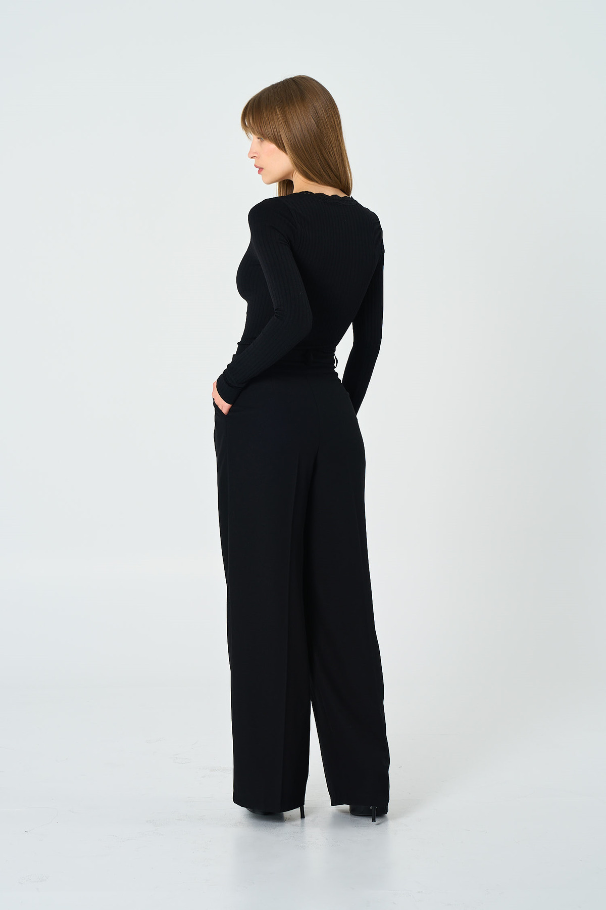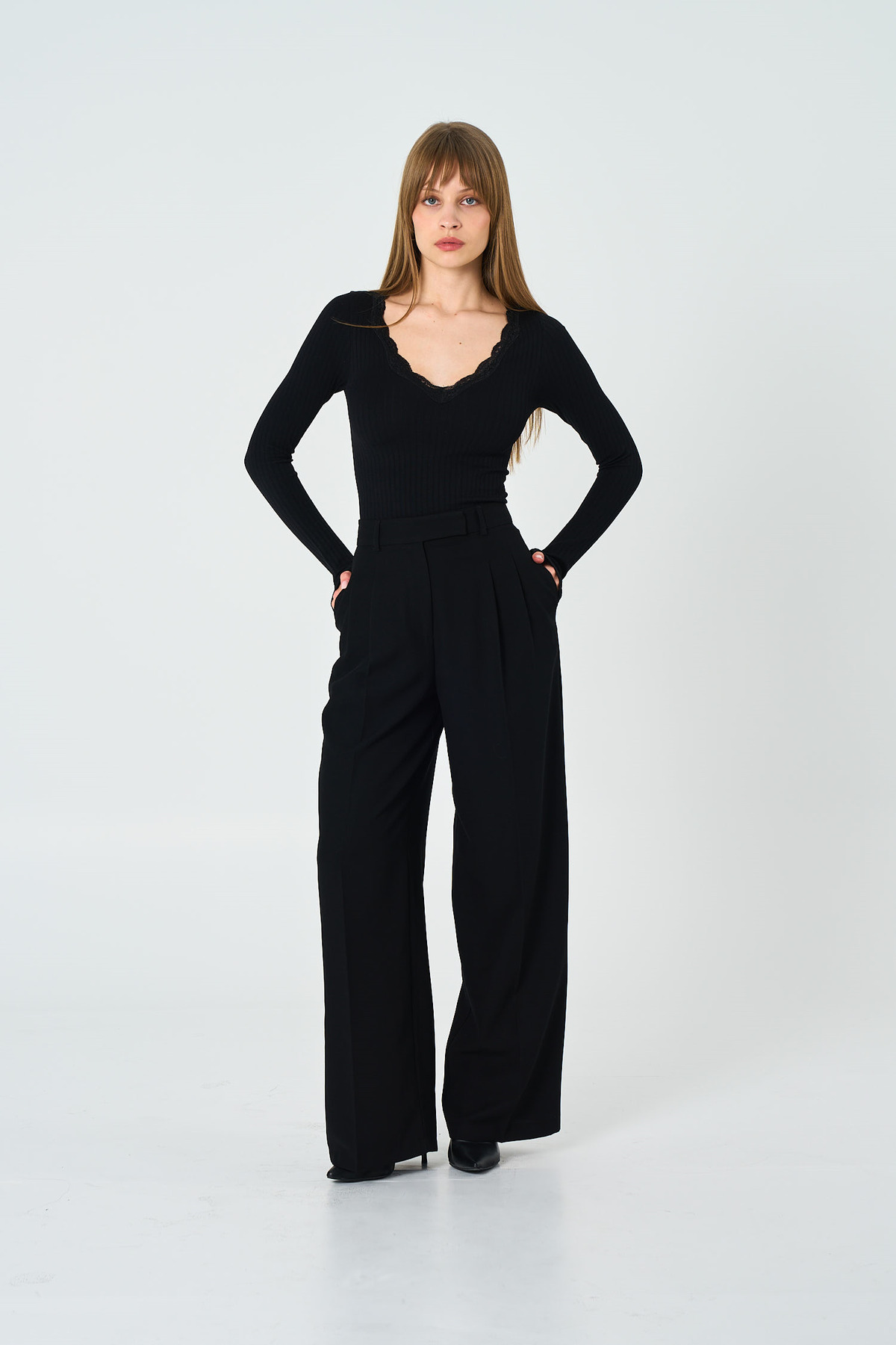 Clear and Clean Finish: 4cm waistband and concealed hook closure create a smooth, minimalist front view.