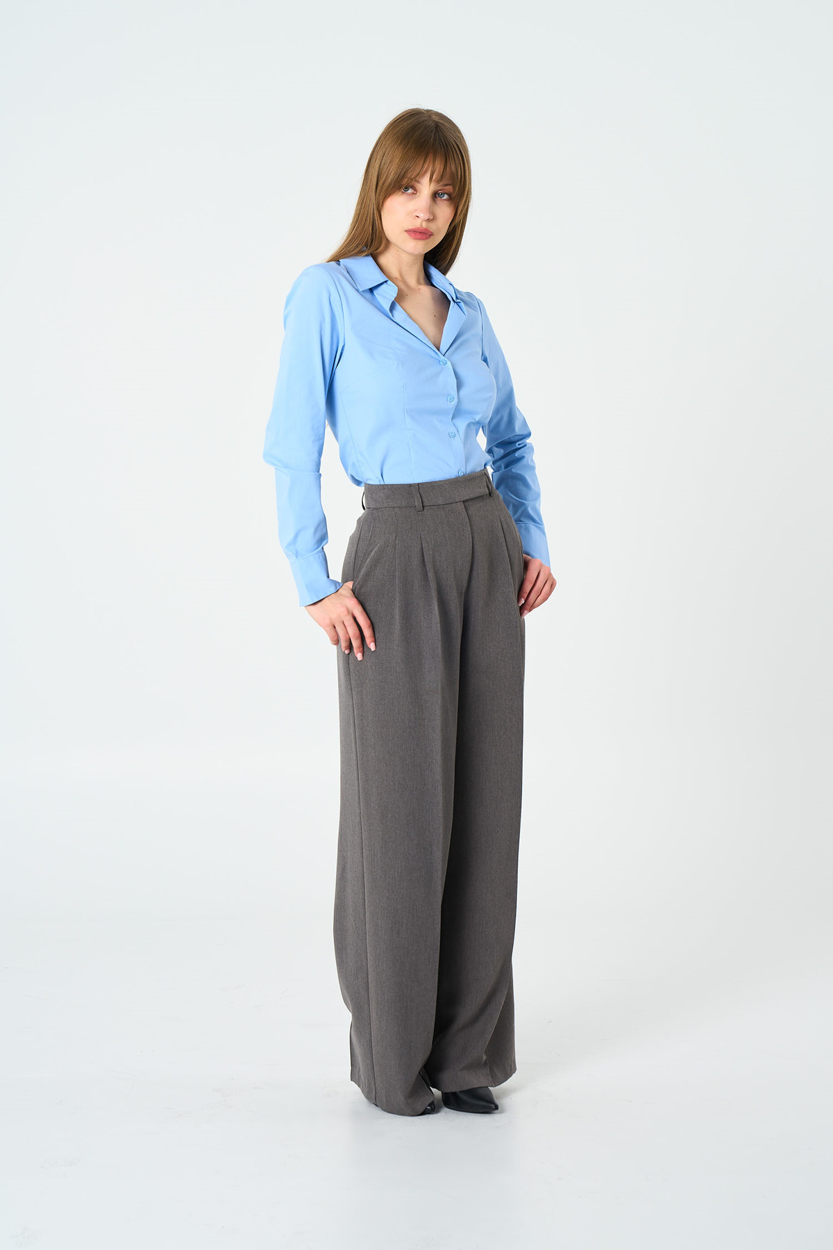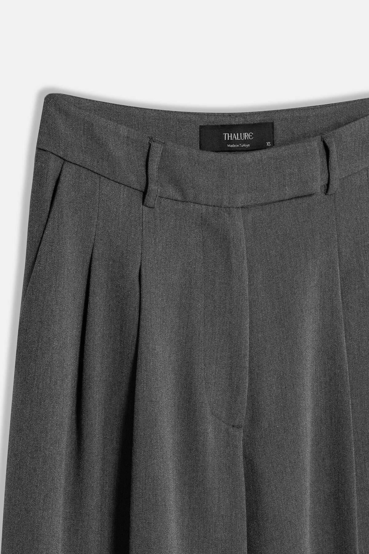 This model, signed by Anthracite Double Pleated Oversized Trousers Thalure, reinterprets masculine tailoring codes with a feminine and modern silhouette