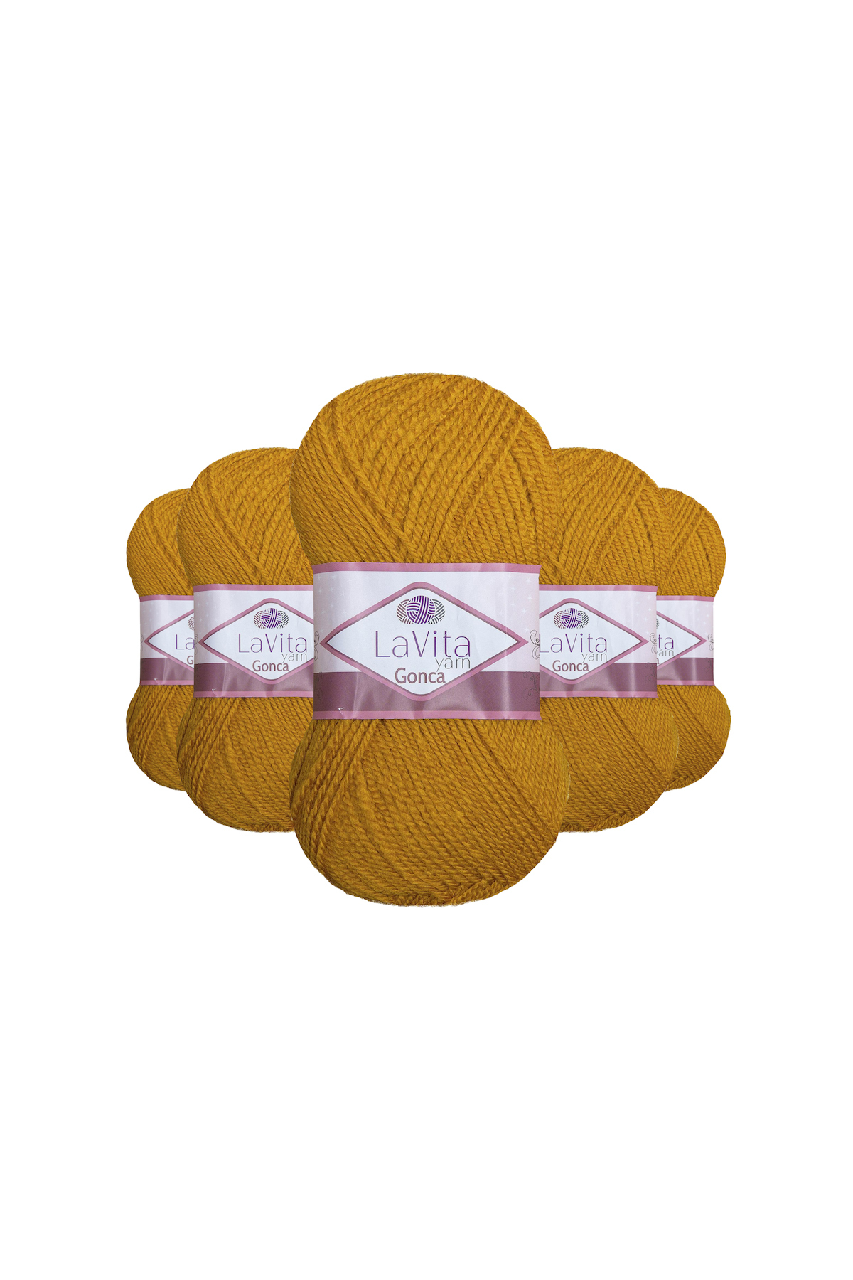 LaVita Yarn Gonca Hand Knitting Yarn 100% Acrylic 500gr 5 PIECES (2027 MUSTARD) | ByTR