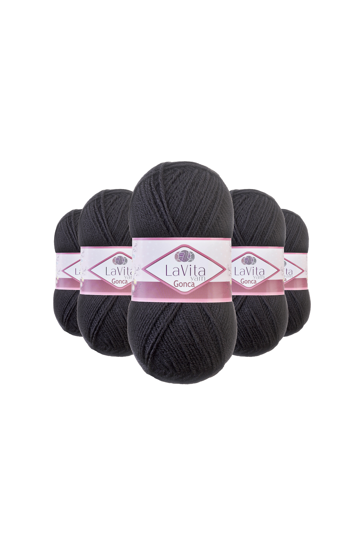 LaVita Yarn Gonca Hand Knitting Yarn 100% Acrylic 500gr 5 PIECES (6500 BLACK) | ByTR