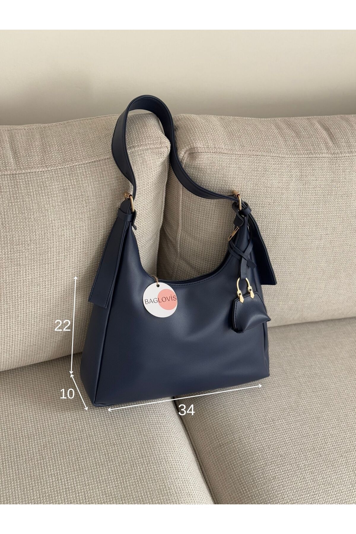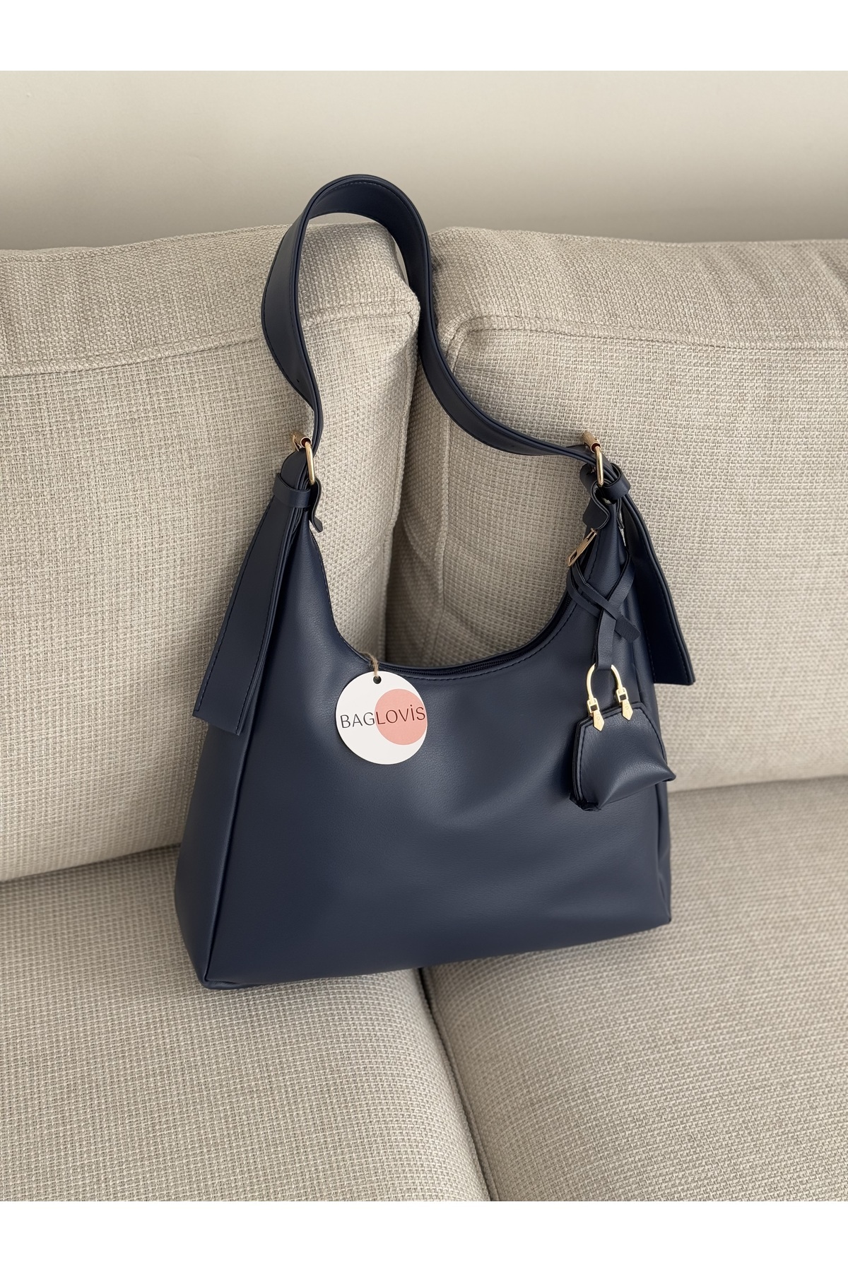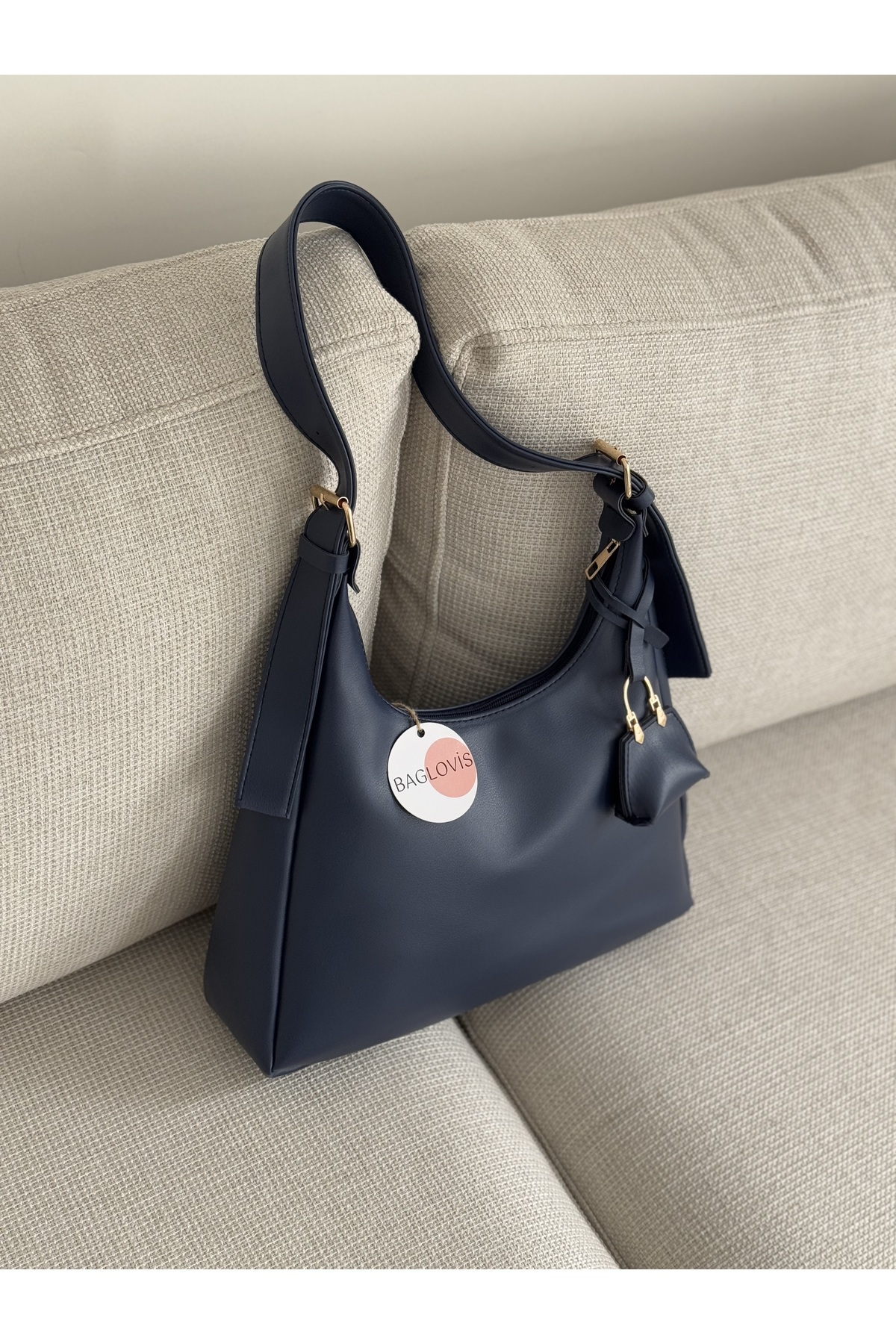 BAGLOVİS WOMEN 'S NAVY BLUE SHOULDER BAG WITH STRAP BUCKLE DETAIL AND TINY WALLET EN34 BOY22 | ByTR