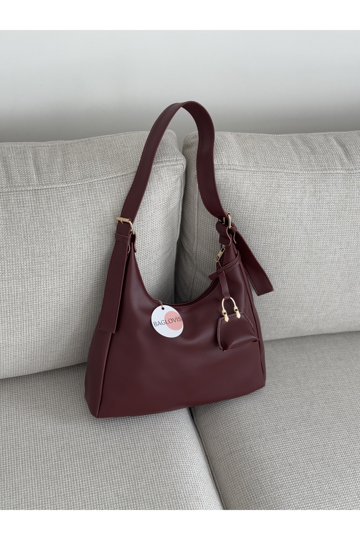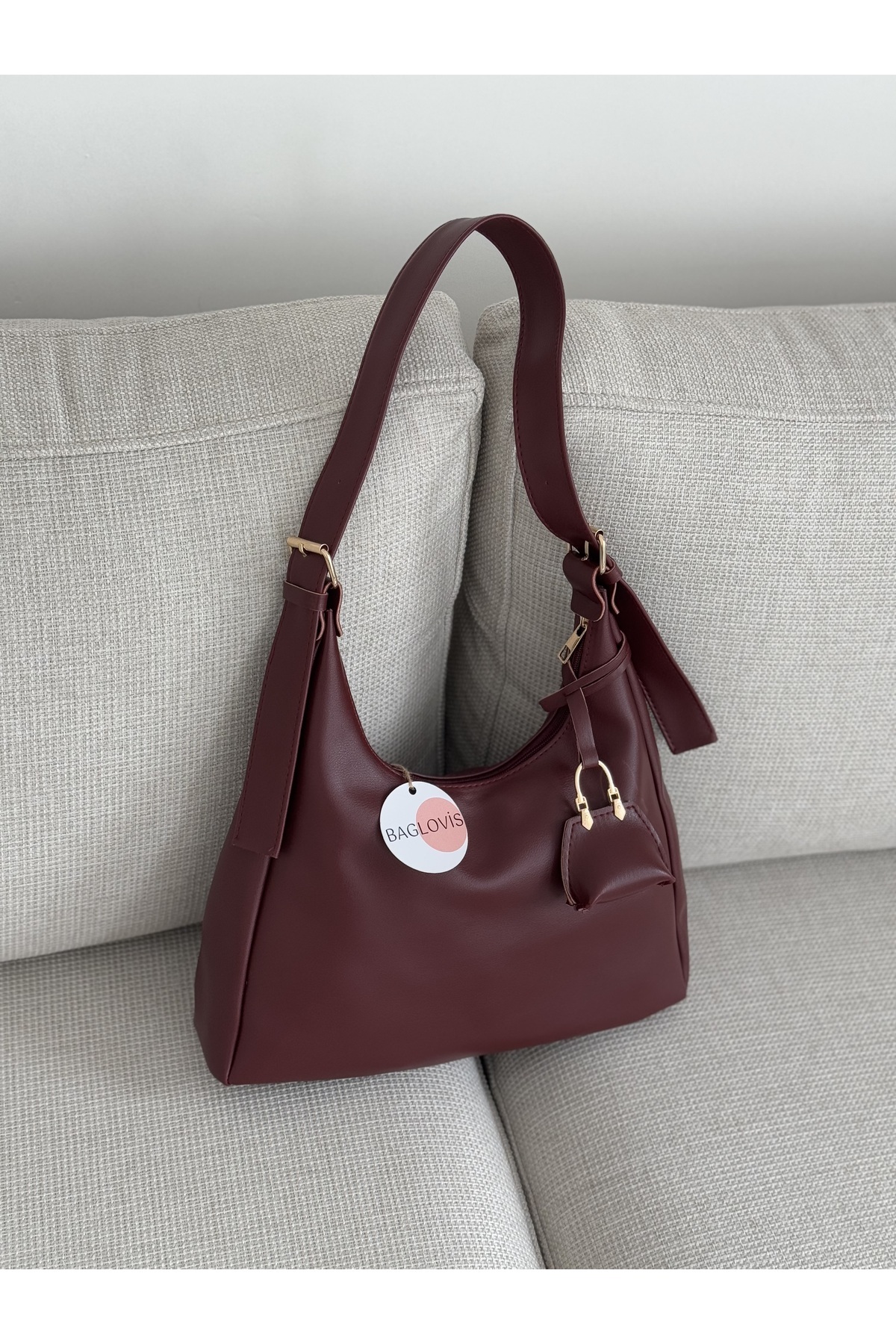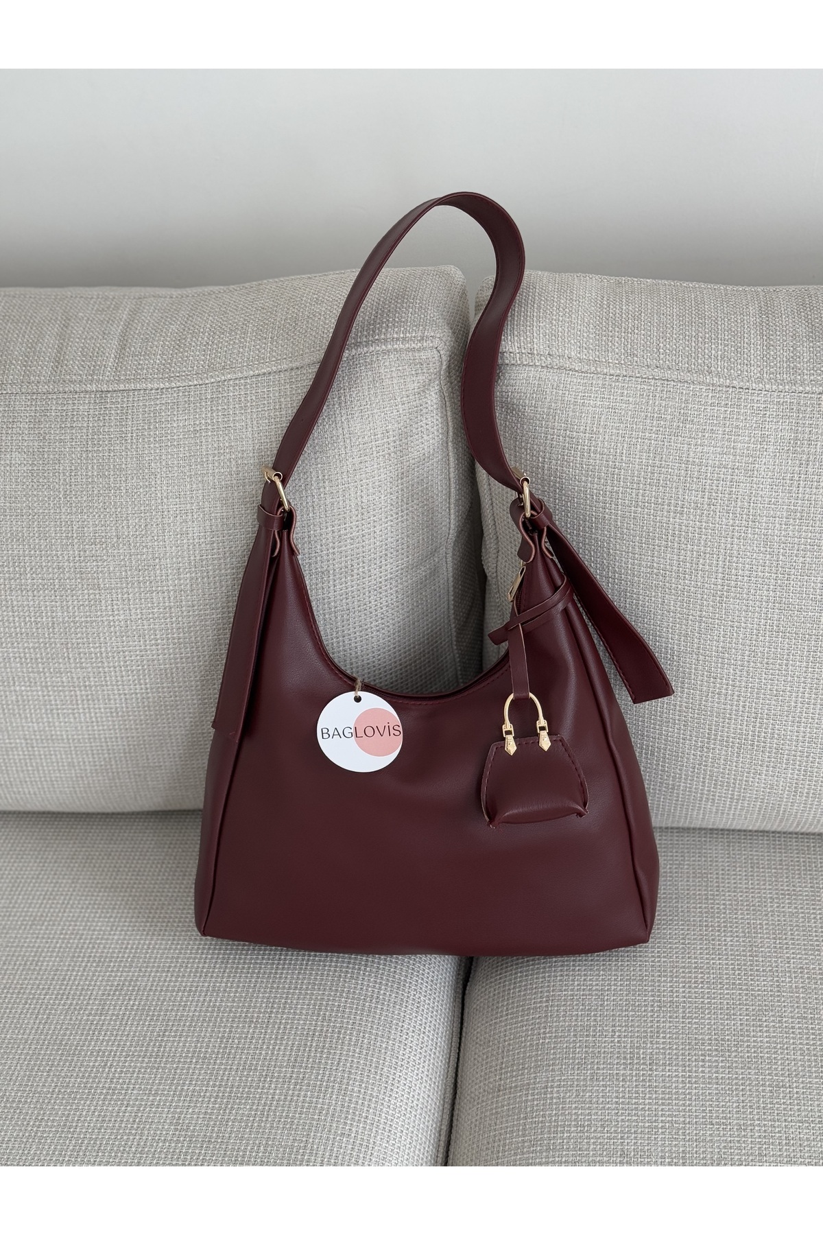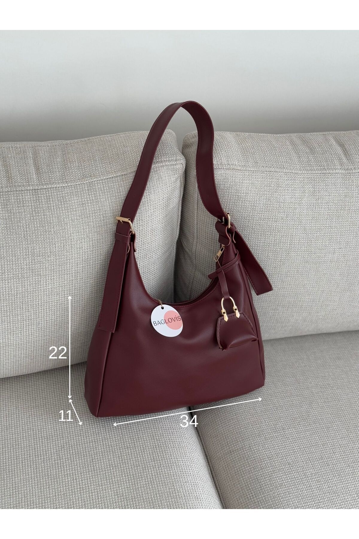 BAGLOVİS WOMEN'S BURGUNDY SHOULDER BAG WITH STRAP BUCKLE DETAIL AND TINY WALLET EN34 BOY22 | ByTR
