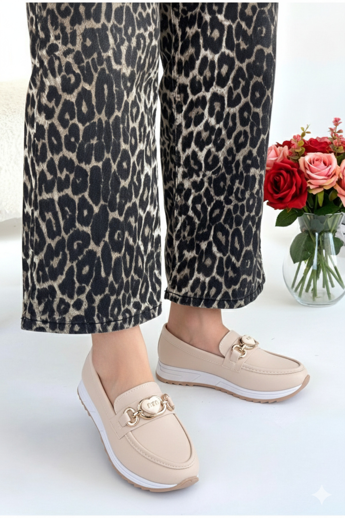 Thanks to its flat-heeled structure, it allows you to move comfortably throughout the day.
