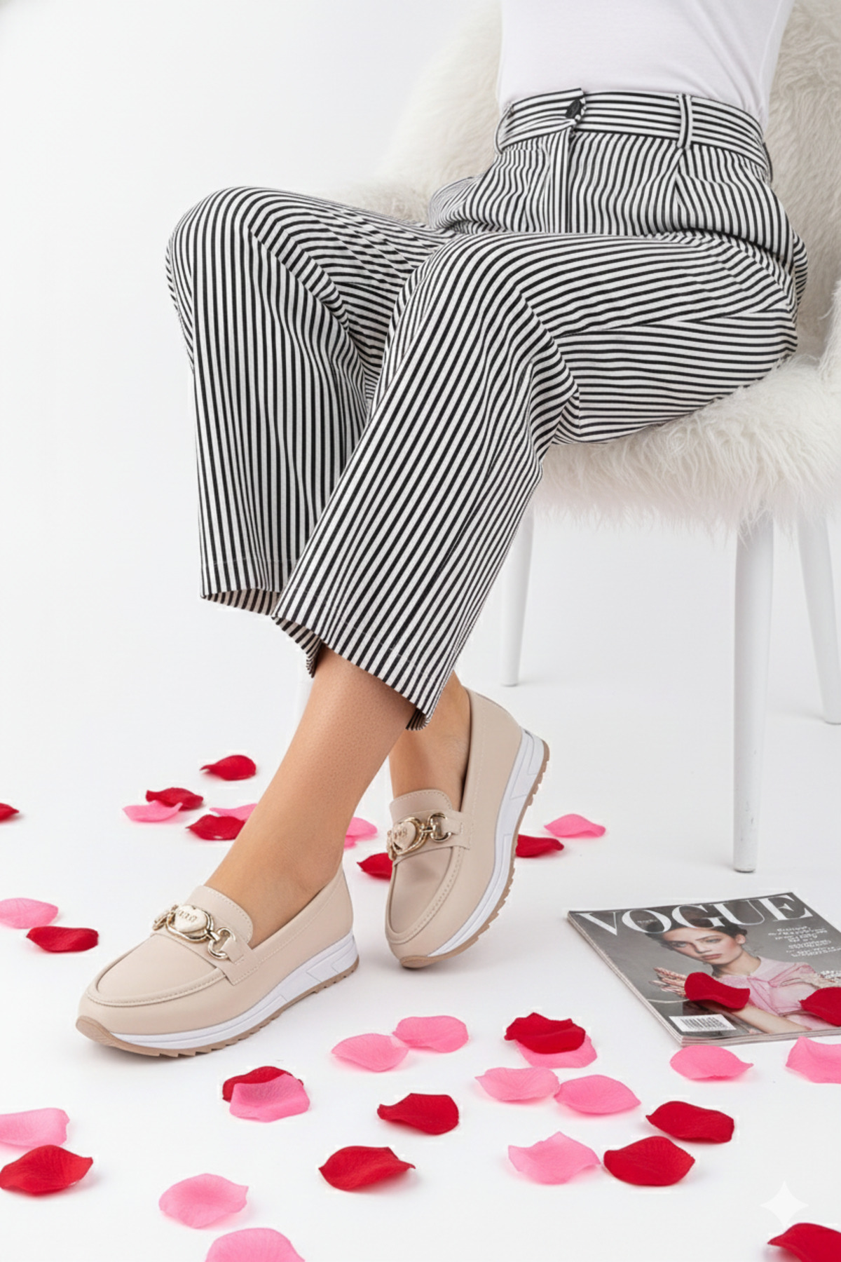 Attracting attention with its ultra-luxurious design, these flat shoes are ideal for daily use.