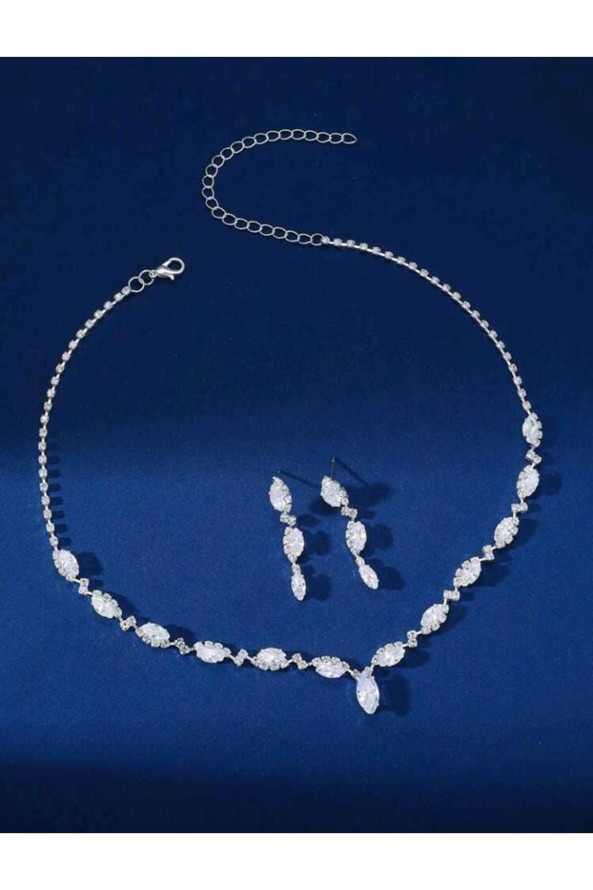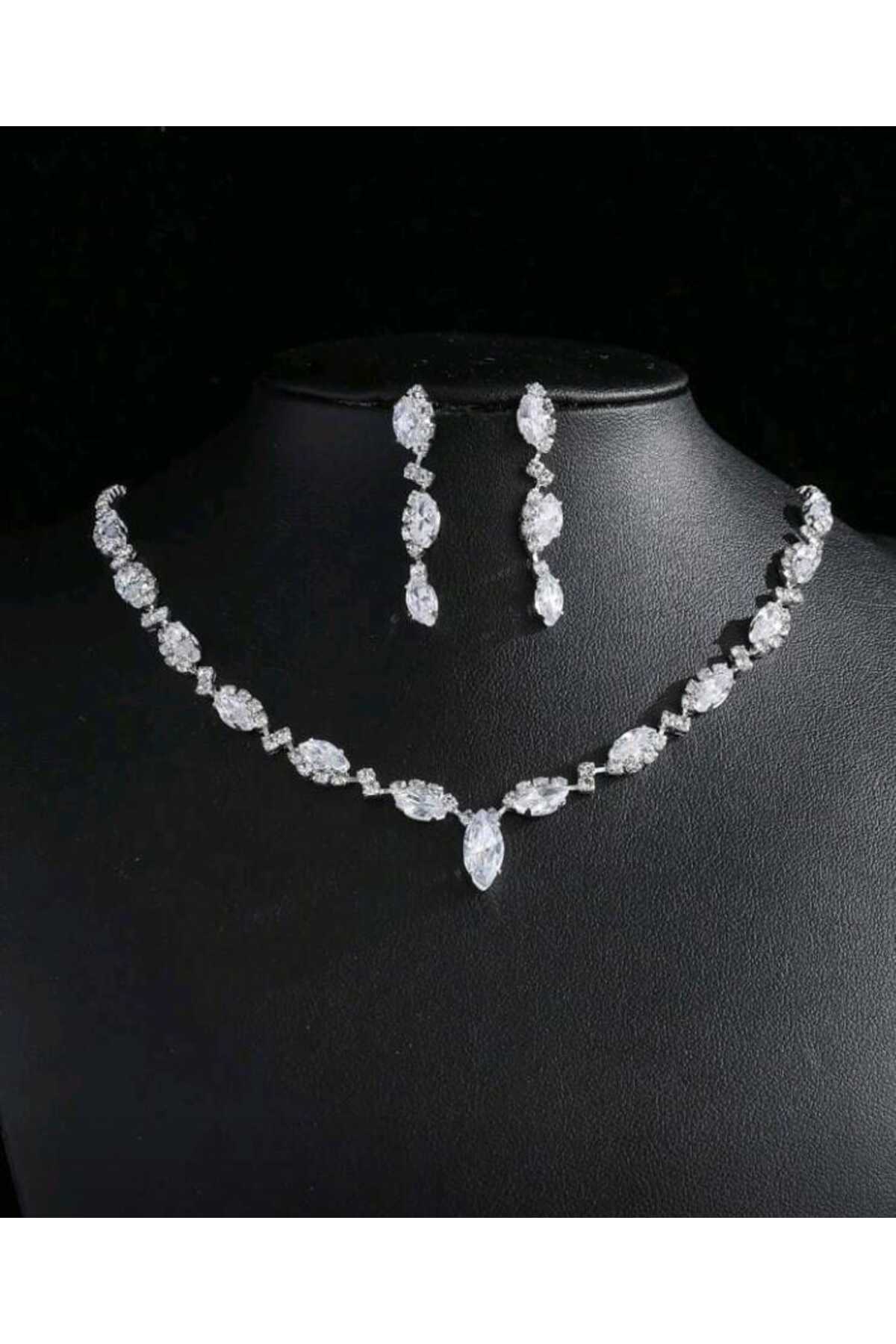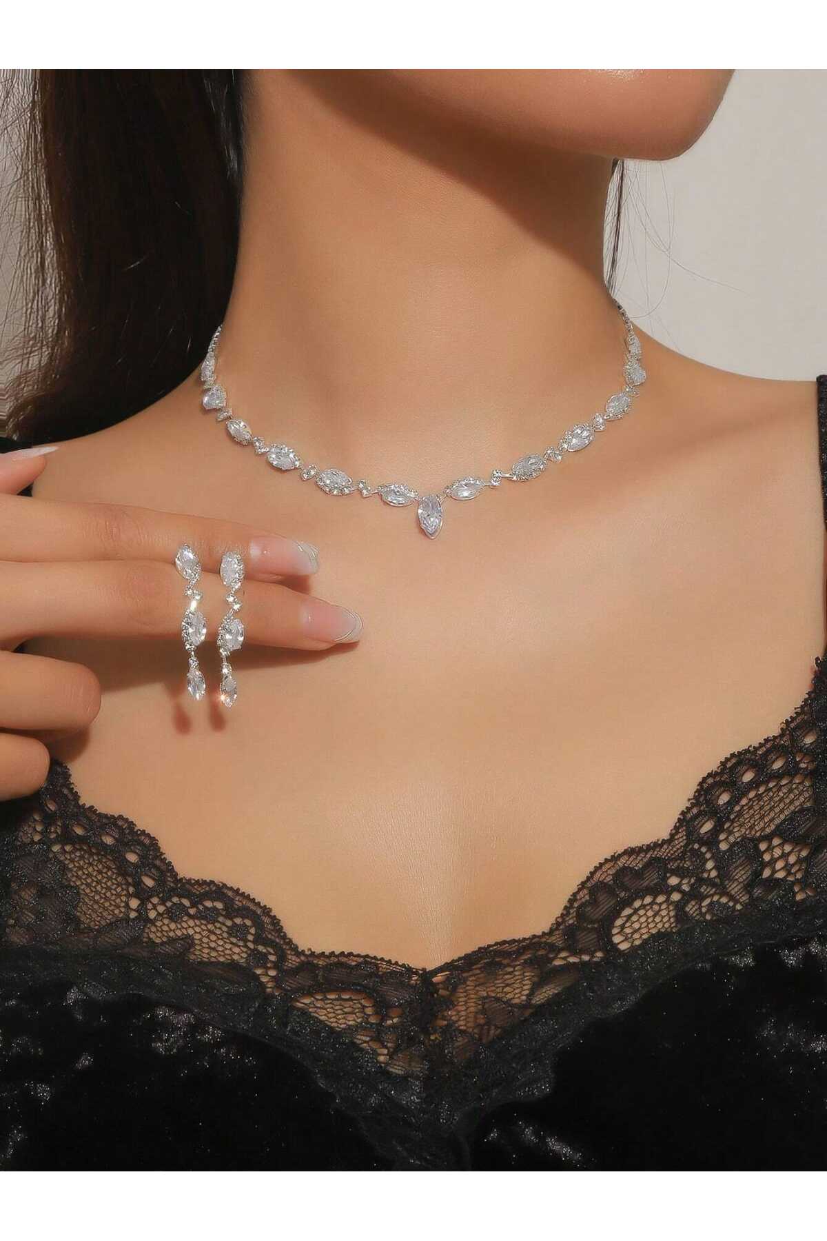 This set, which attracts attention with the glow of zircon stones, completes your elegance on your special days.