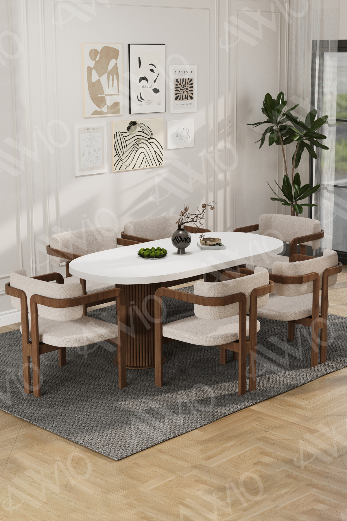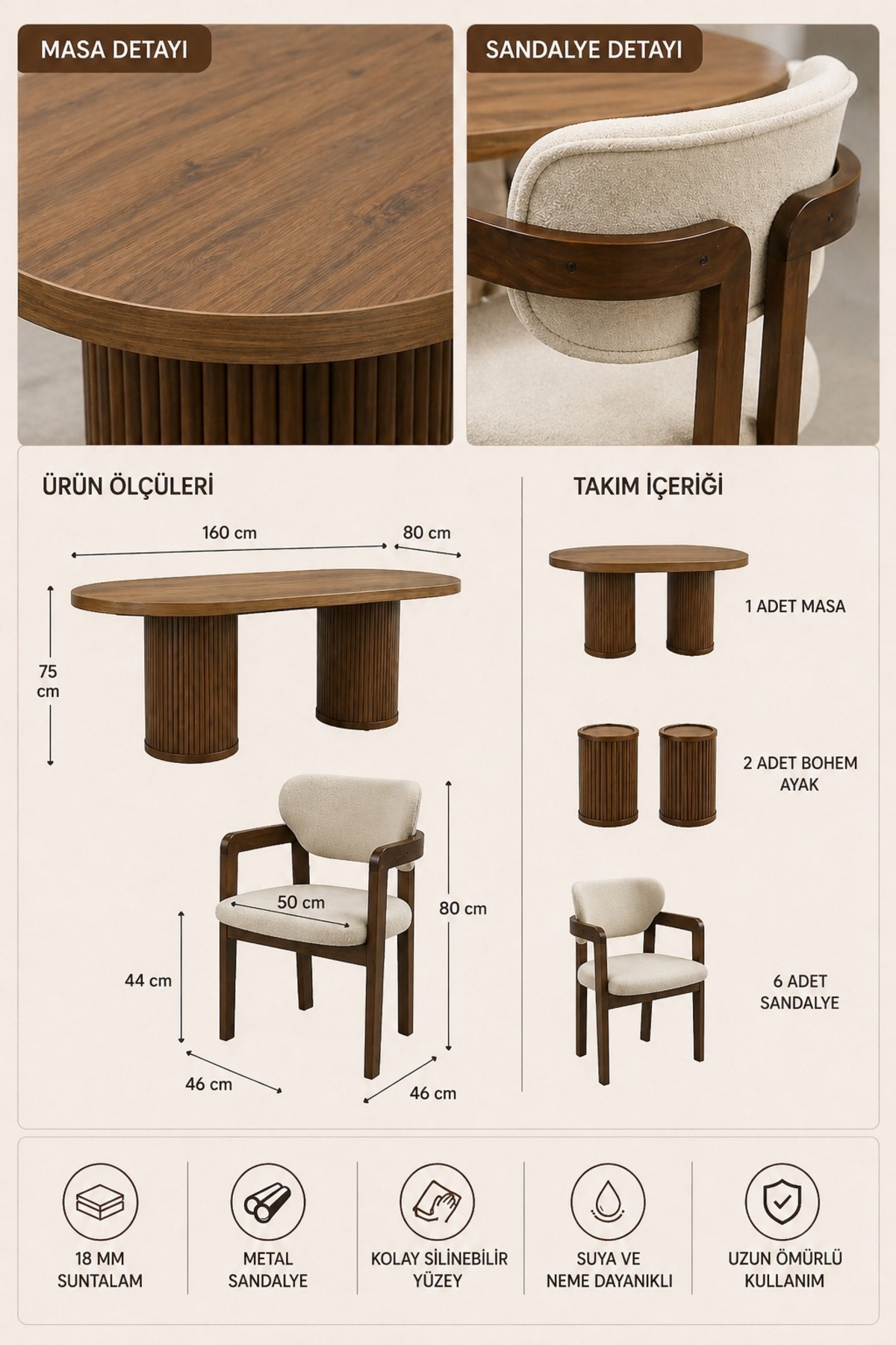 Arion Series, which draws attention with its bohemian design, offers a stylish dining area with an 80x160 table and 6 chairs.