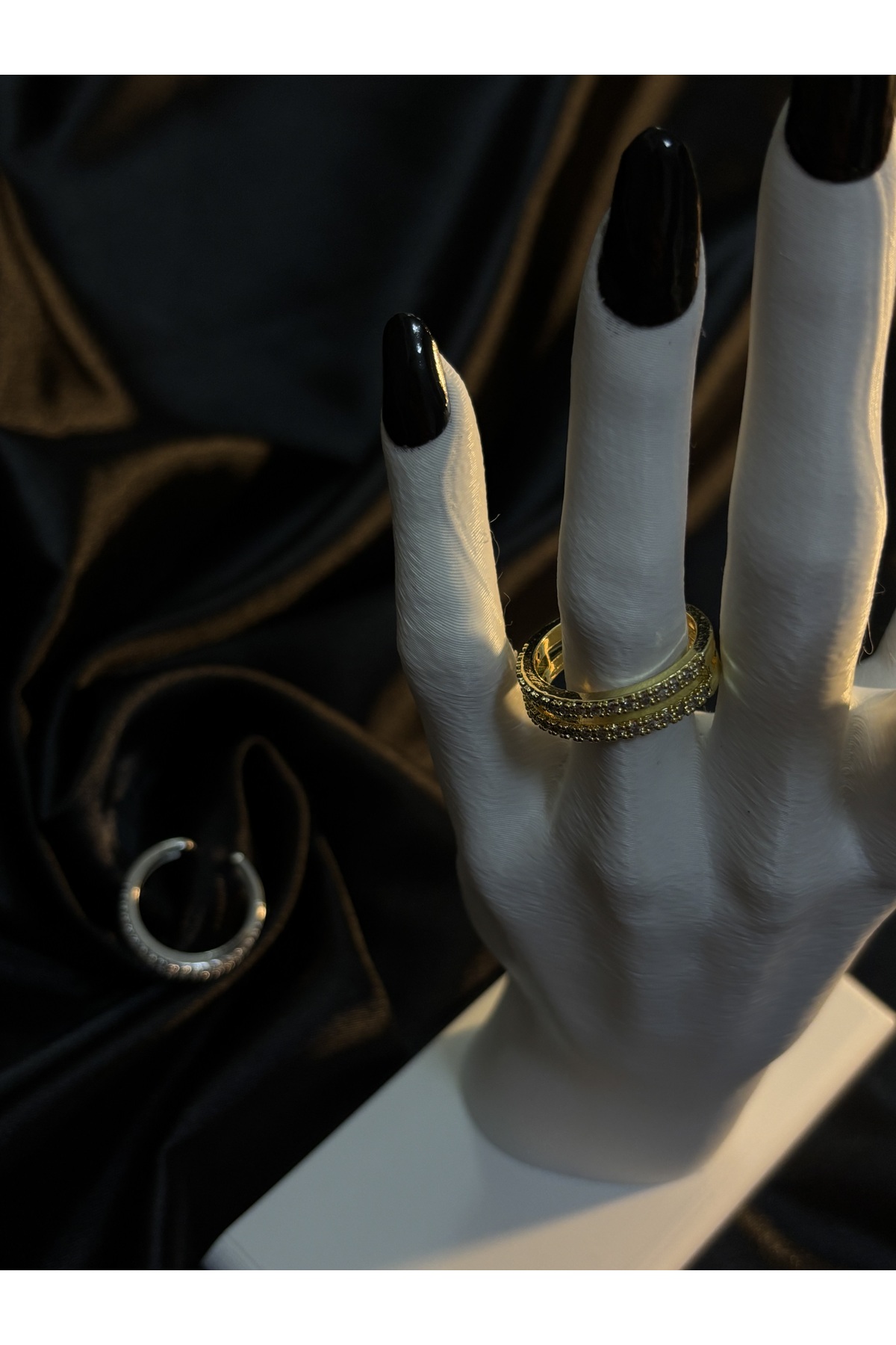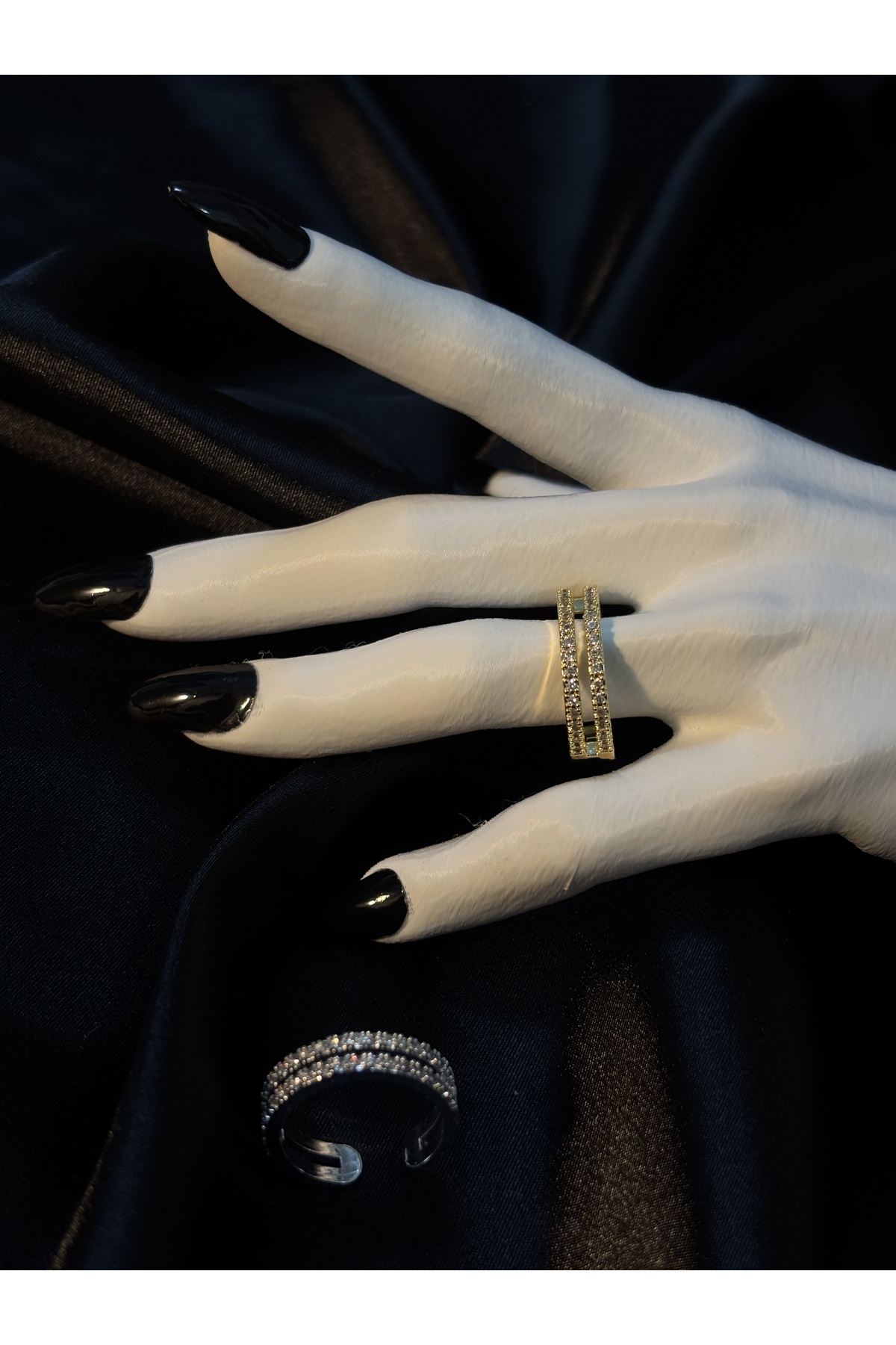 The ⚠️ Product is Sold Single — 1 Double Row Women's Steel Ring with Shipped ⚠️💍 Gemstone It adapts to every style with its gold and silver colored, sparkling and stylish design.