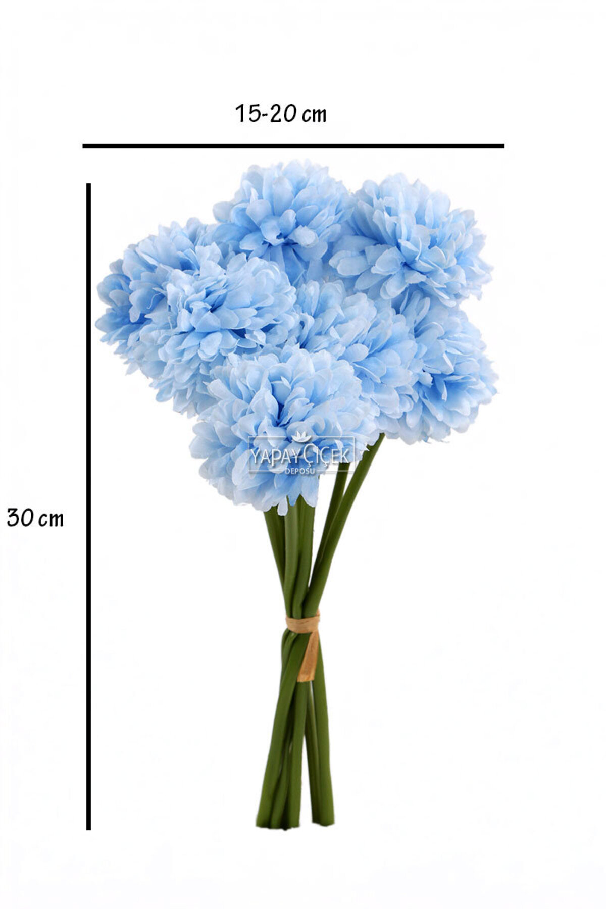 - Number of branches per branch: 7Number of ball chrysanthemums per branch: 1Total number of chrysanthemums contained in a single bundle: 7Chrysanthemum diameter: 6 cmDimension height:30 cm