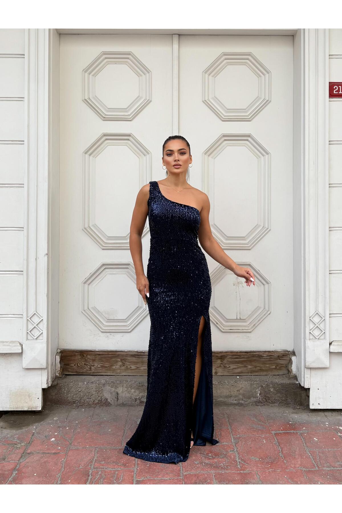Modafeminen Trendy Velvet Slit Dress NAVY 583150 | ByTR
