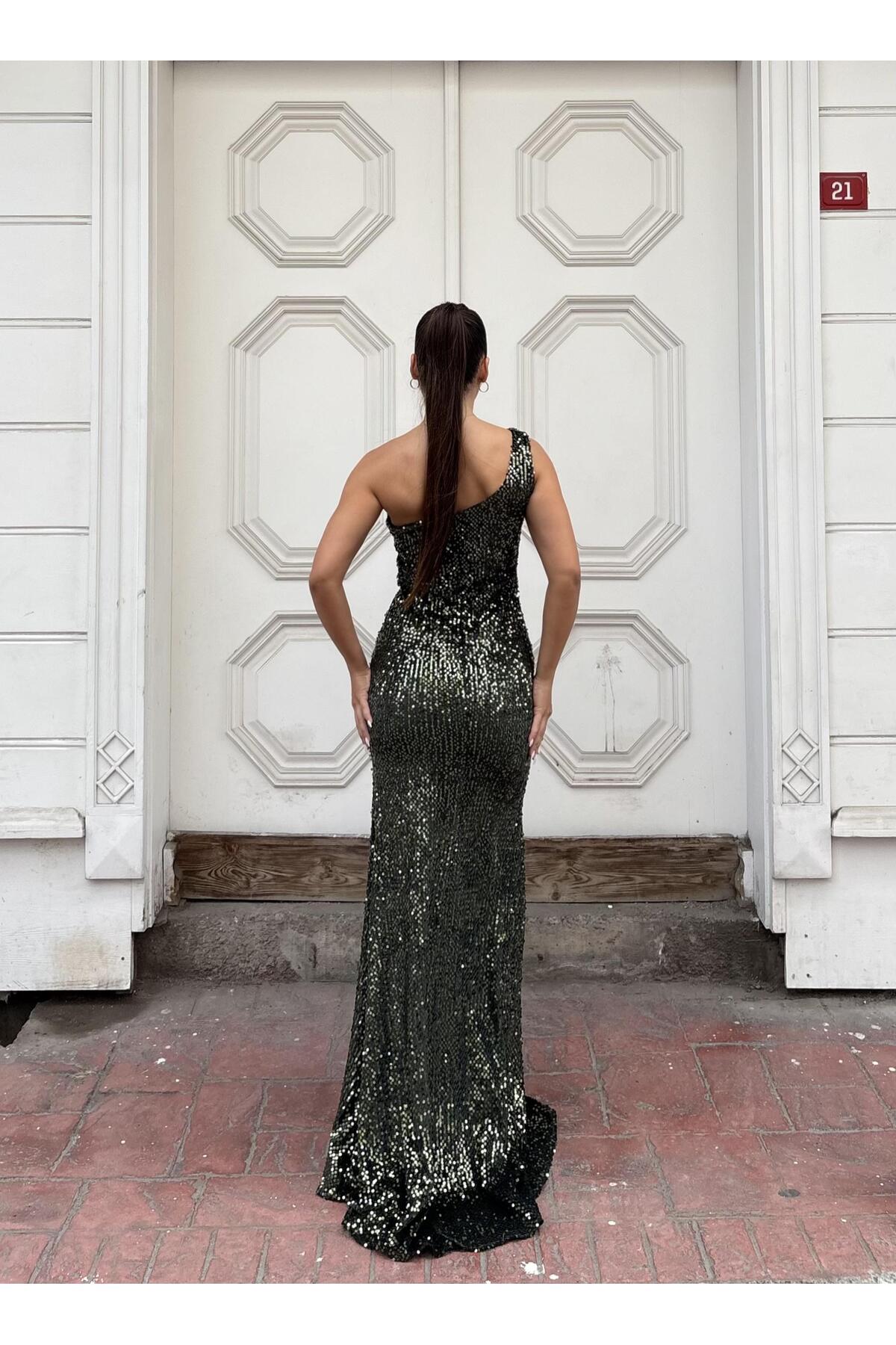 Modafeminen Trendy Velvet Slit Dress KHAKI 583150 | ByTR