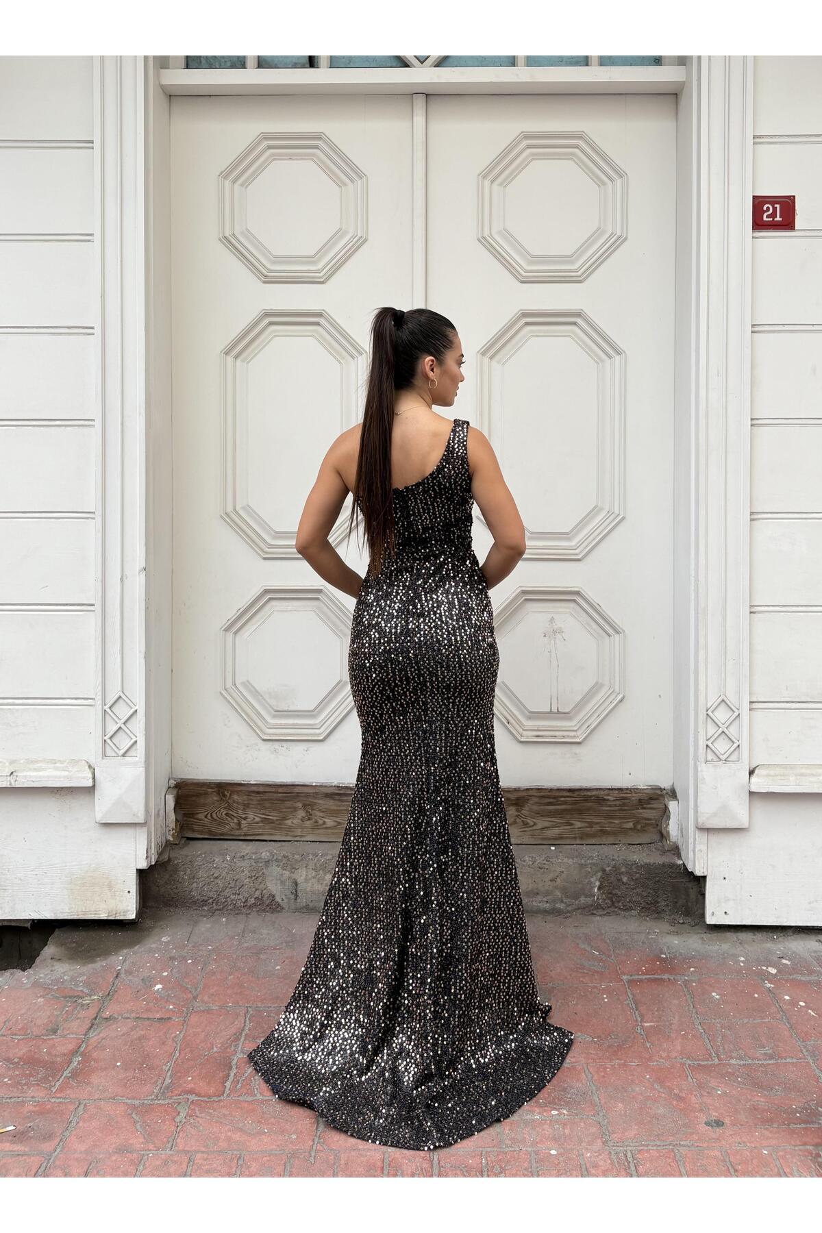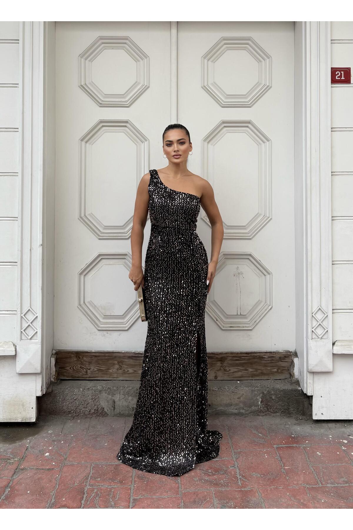 Modafeminen Trend Velvet Slit Beard Sequin Dress MINK 583150 | ByTR