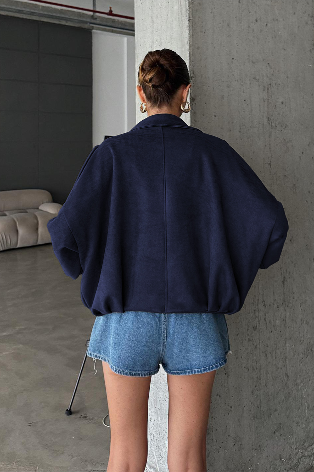 Khaki suede leather bomber jacket with oversized cut for a comfortable and stylish look.