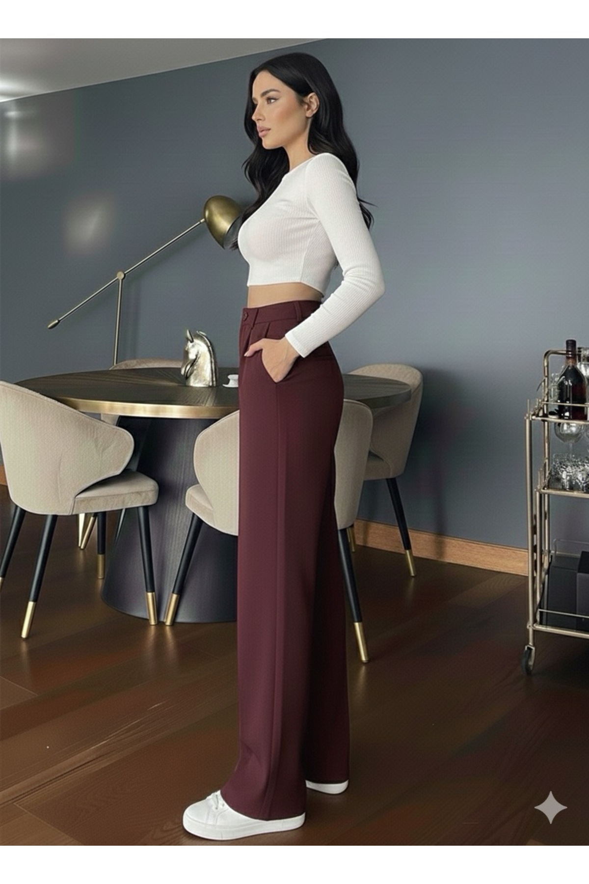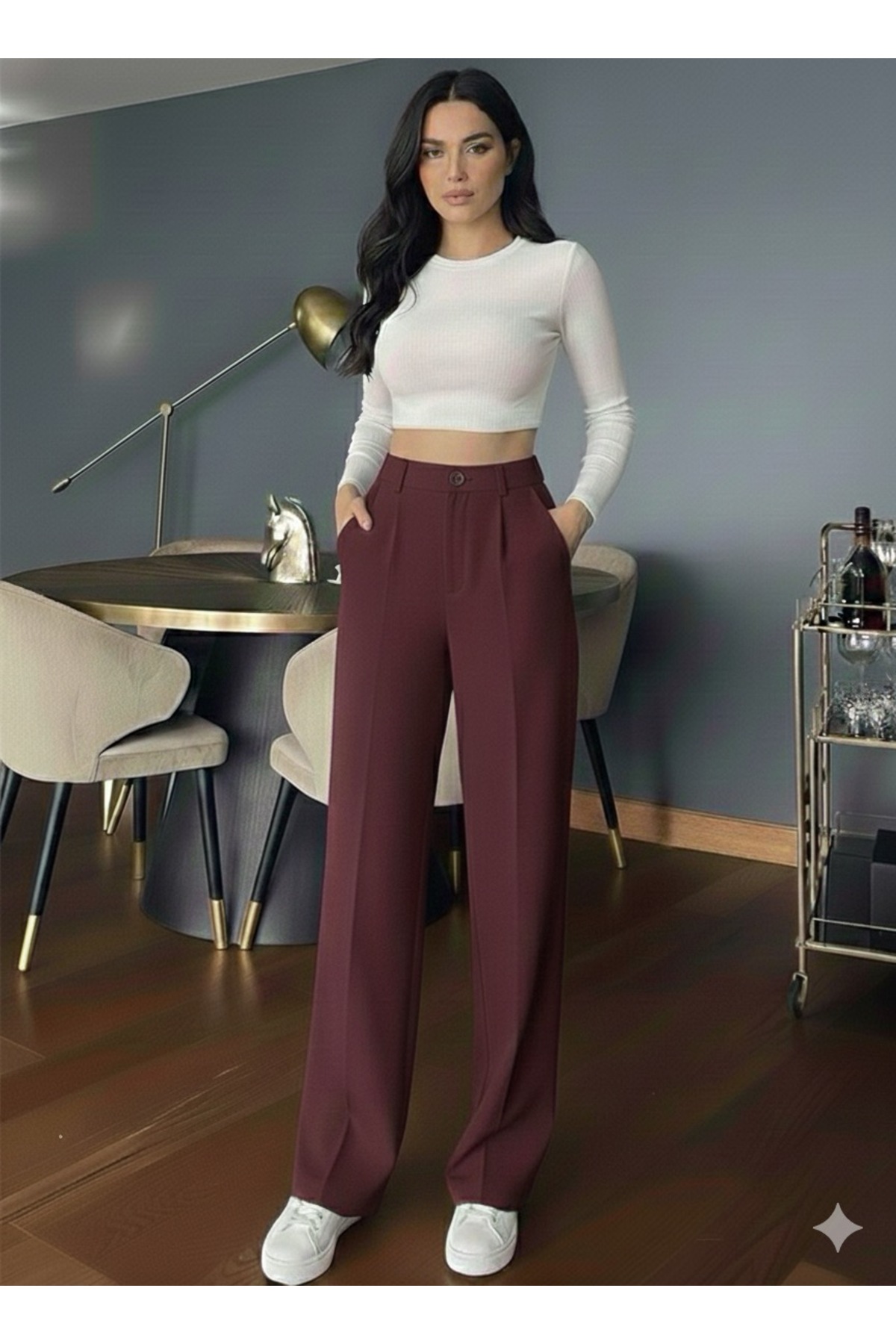 High-waisted palazzo pants, which reflect your young and dynamic style, offer comfort and elegance together in daily use.