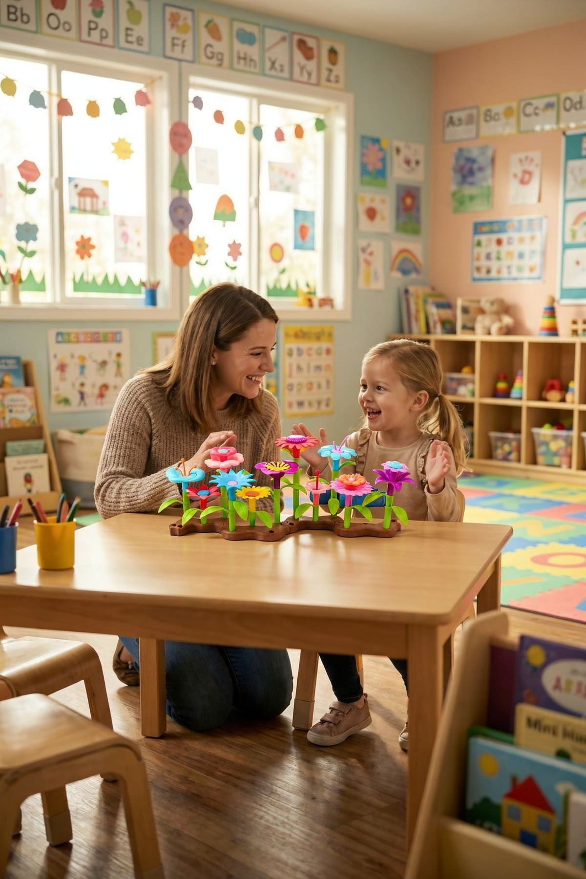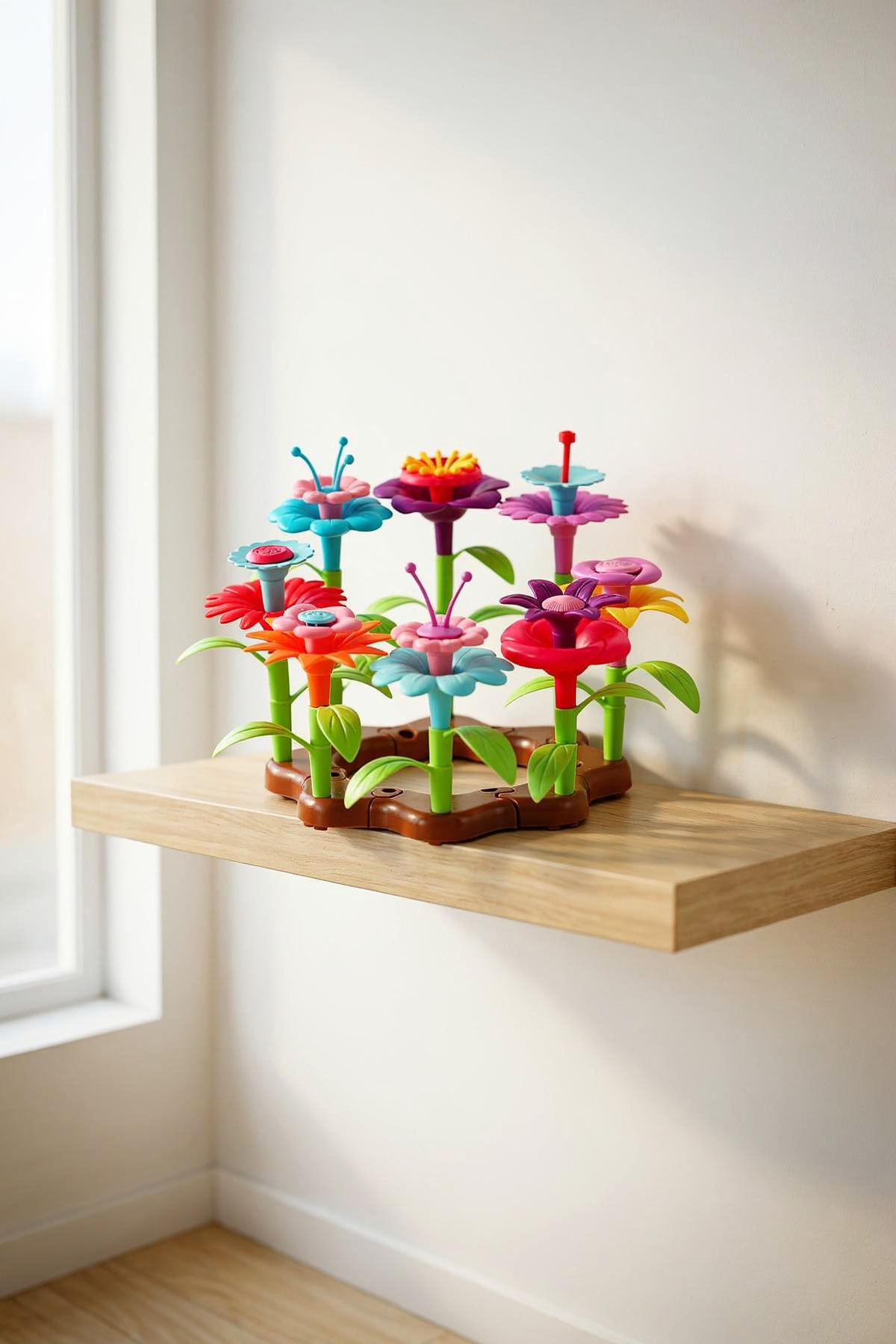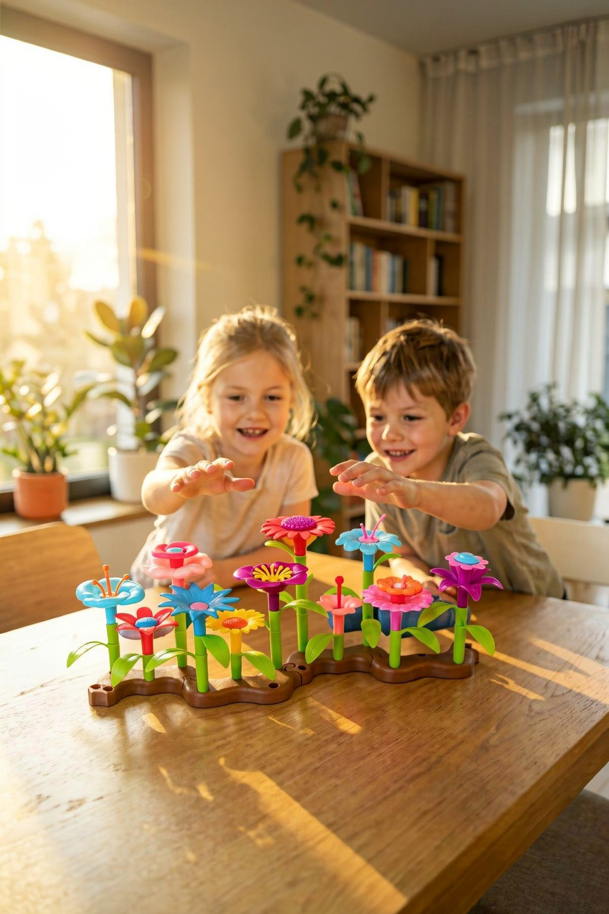 With the flower garden construction set, children develop basic skills such as creativity, dexterity, color perception, attention and patience through play.