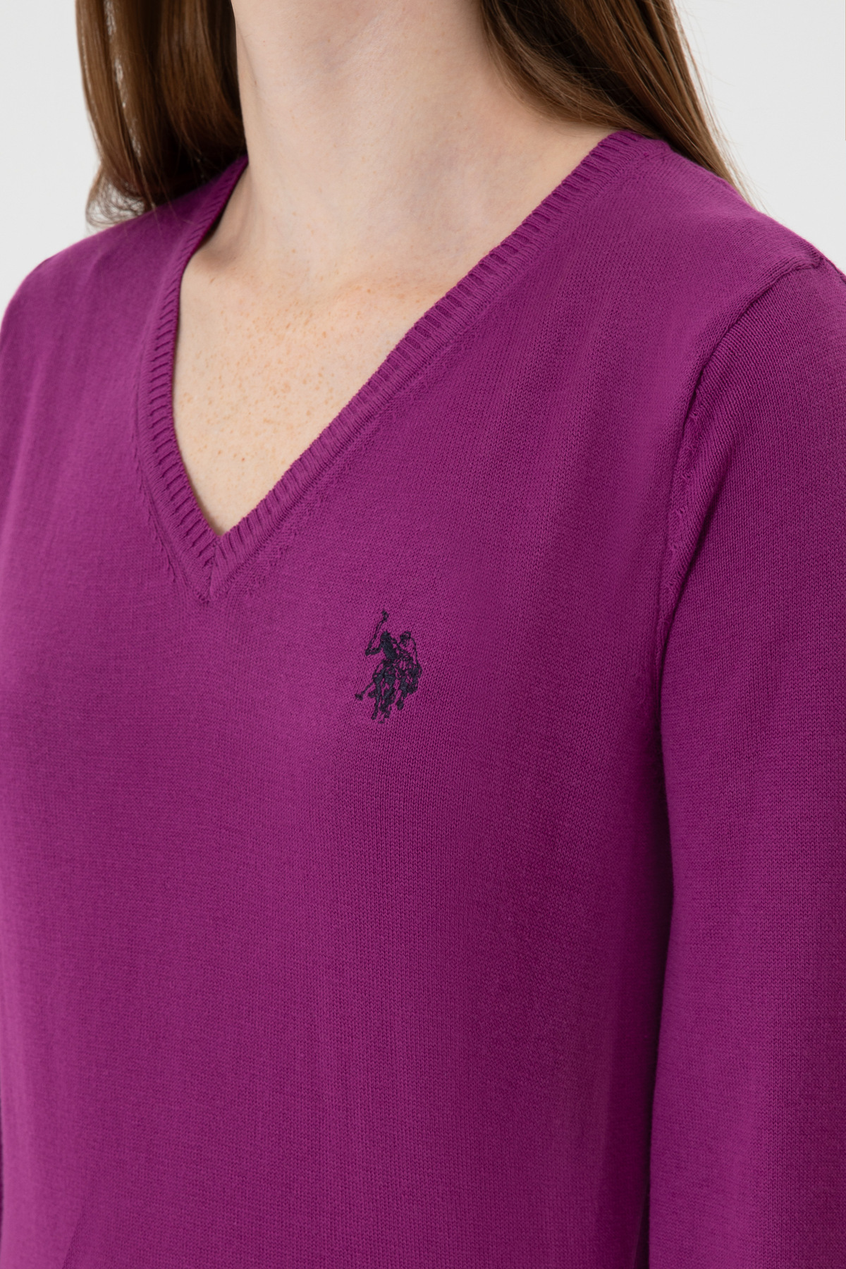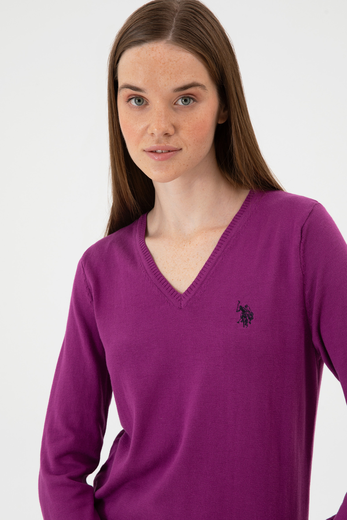 U.S. Polo Assn. Women's Violet V-Neck Basic Sweater 50313590-VR203 | ByTR