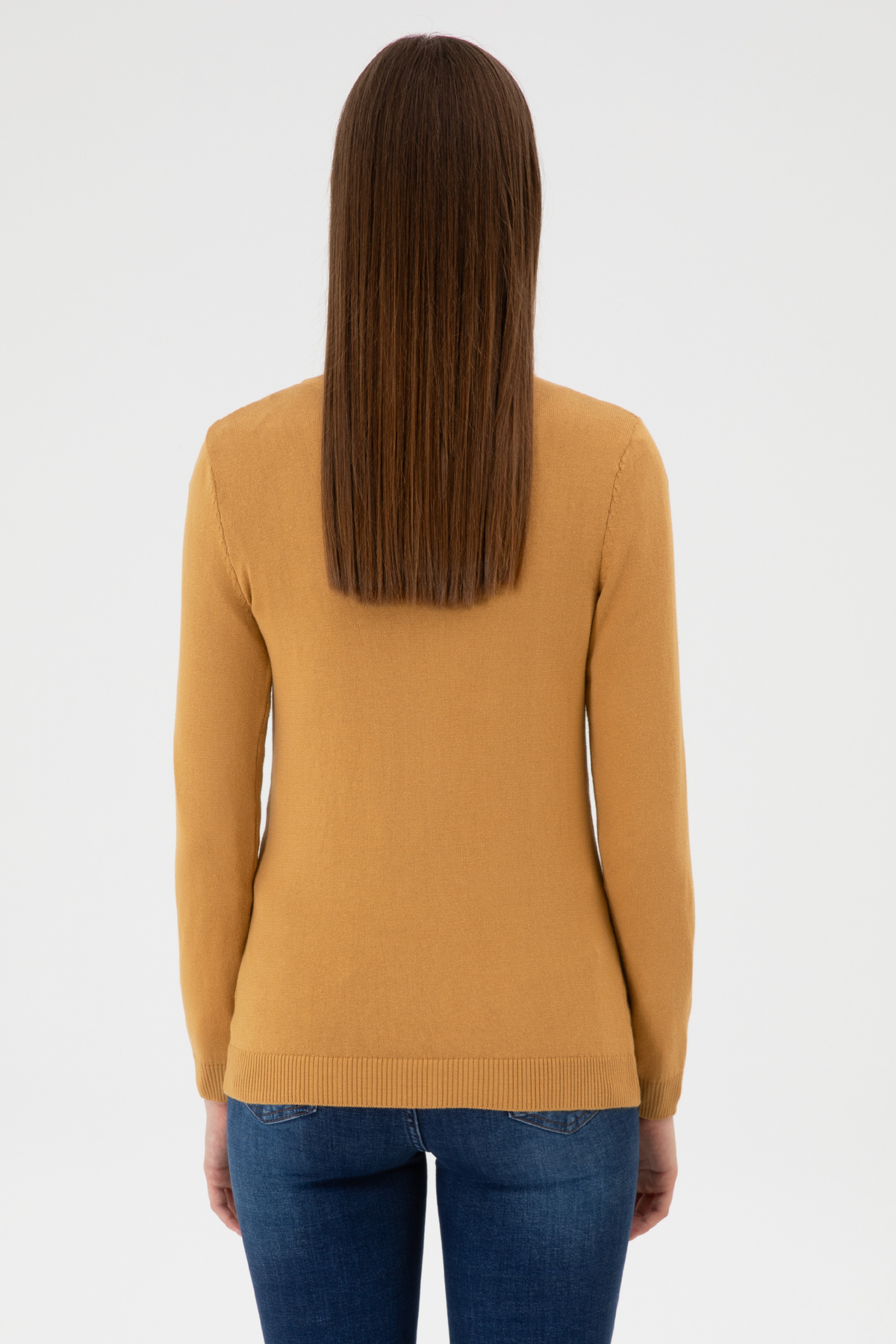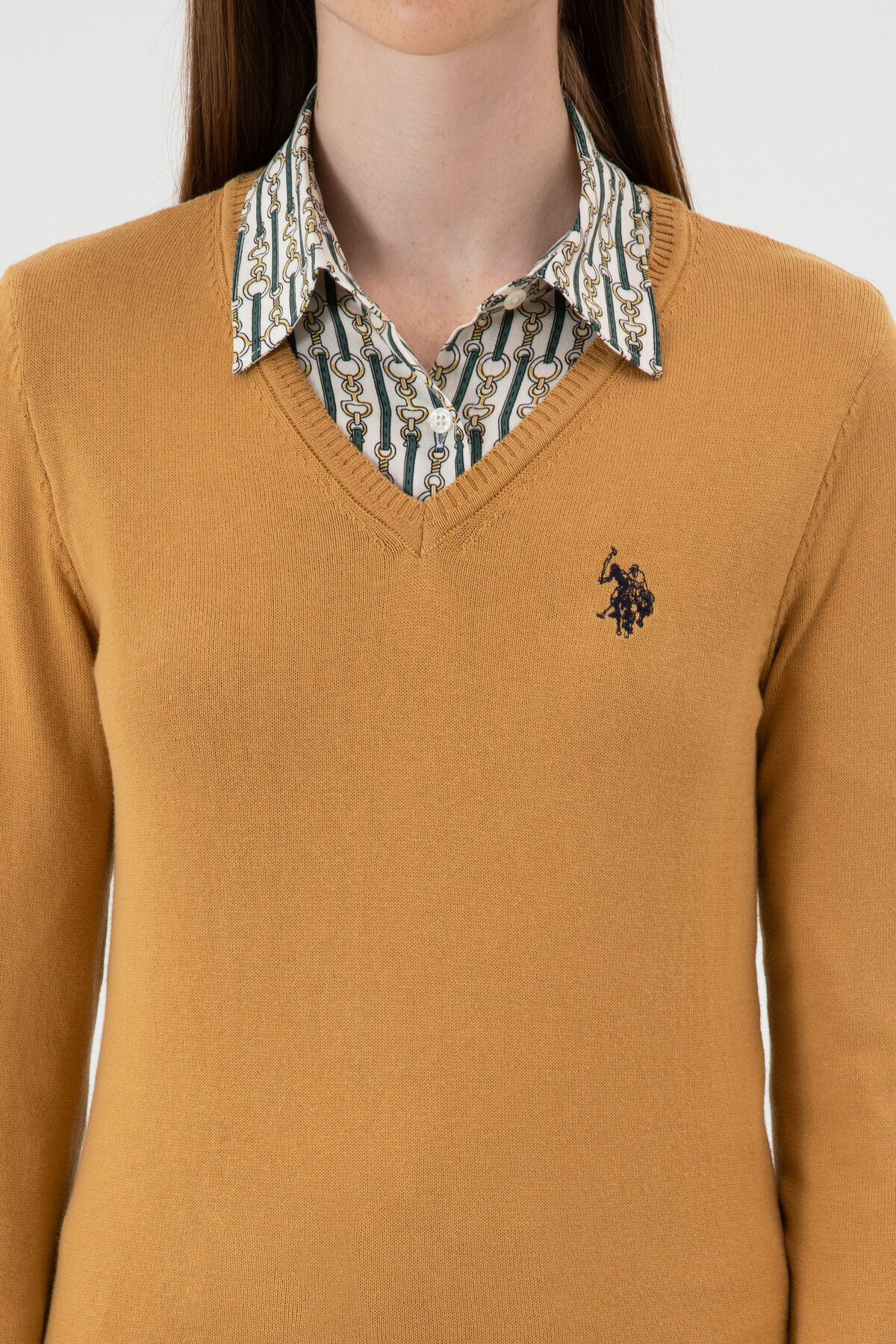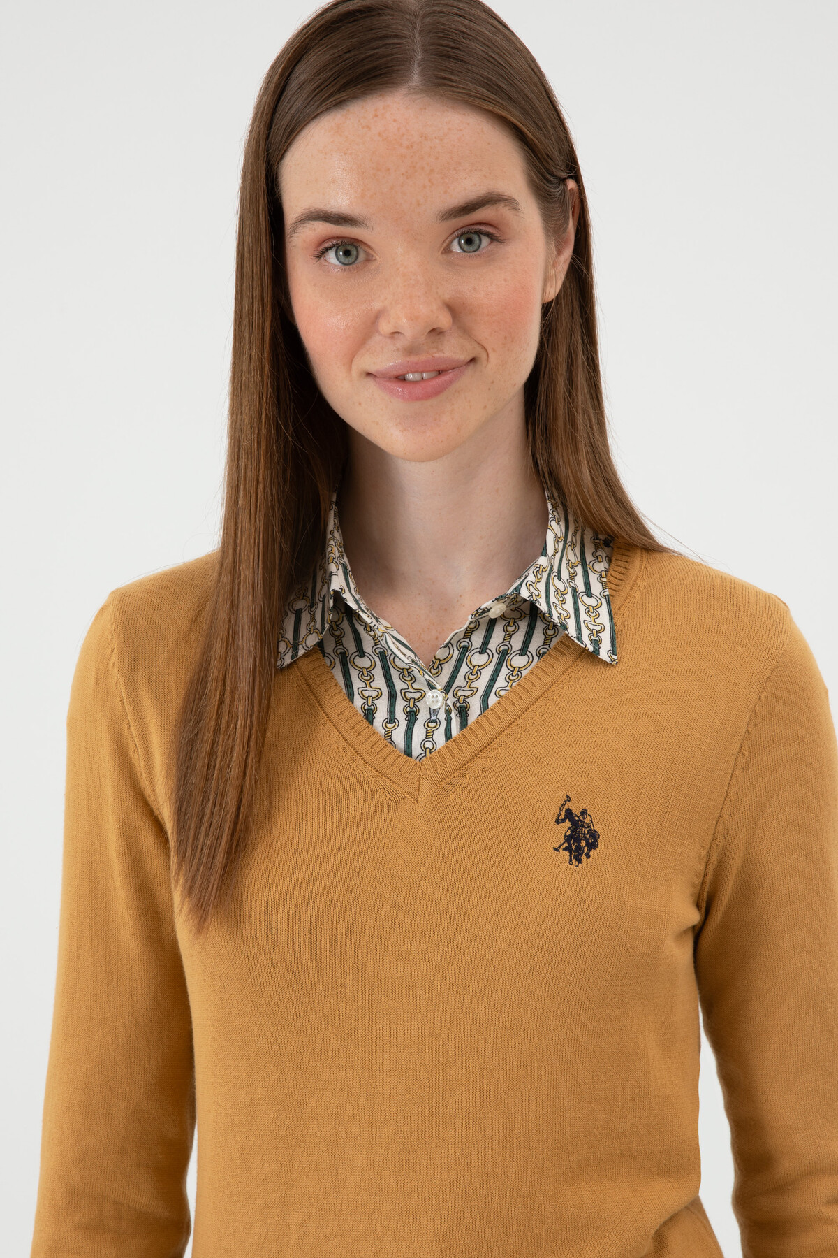 U.S. Polo Assn. Women's Camel V-Neck Basic Sweater 50313590-VR015 | ByTR