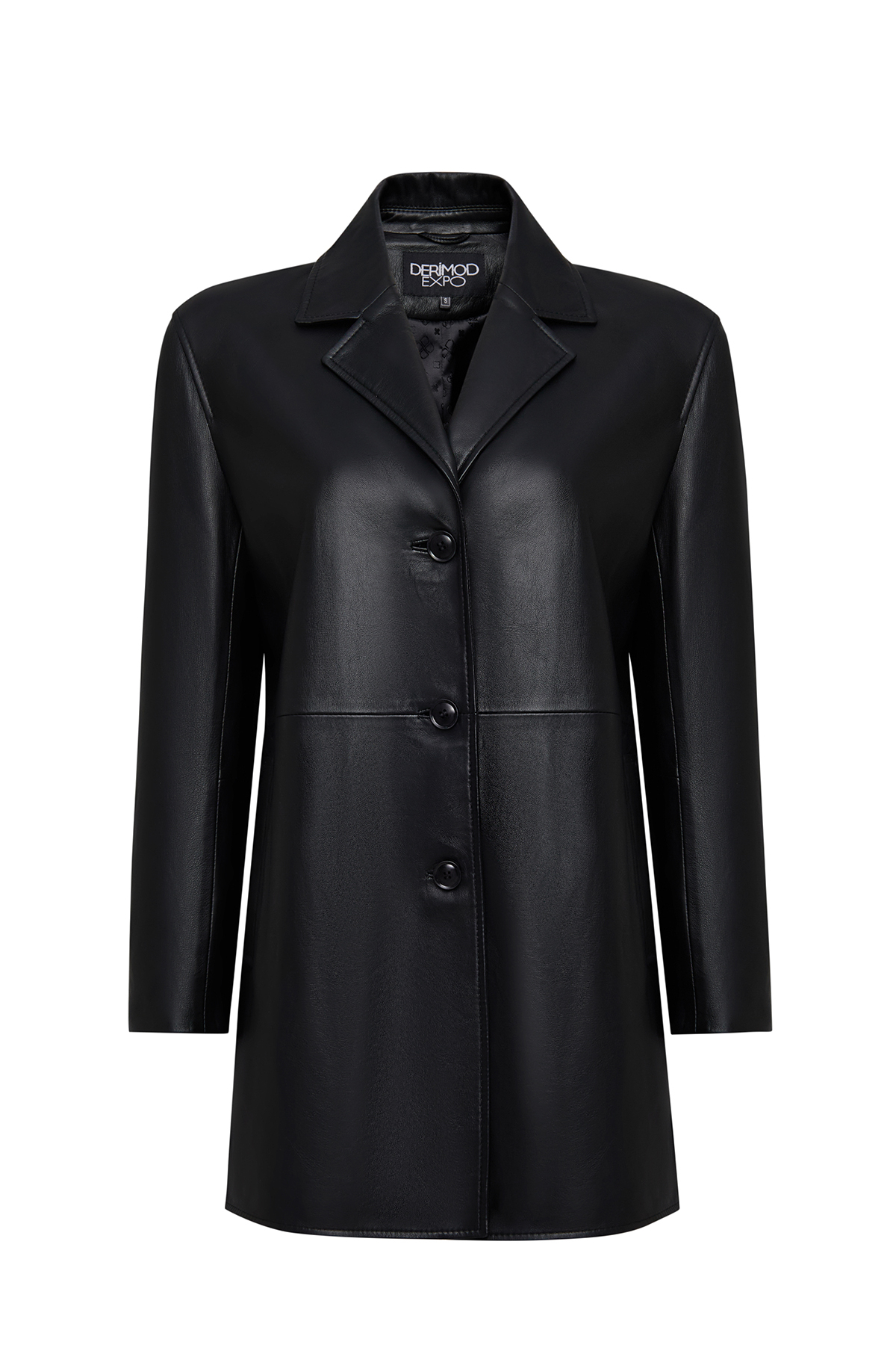 Derimod Emma Women's Black Leather Coat 25WGE56061M | ByTR