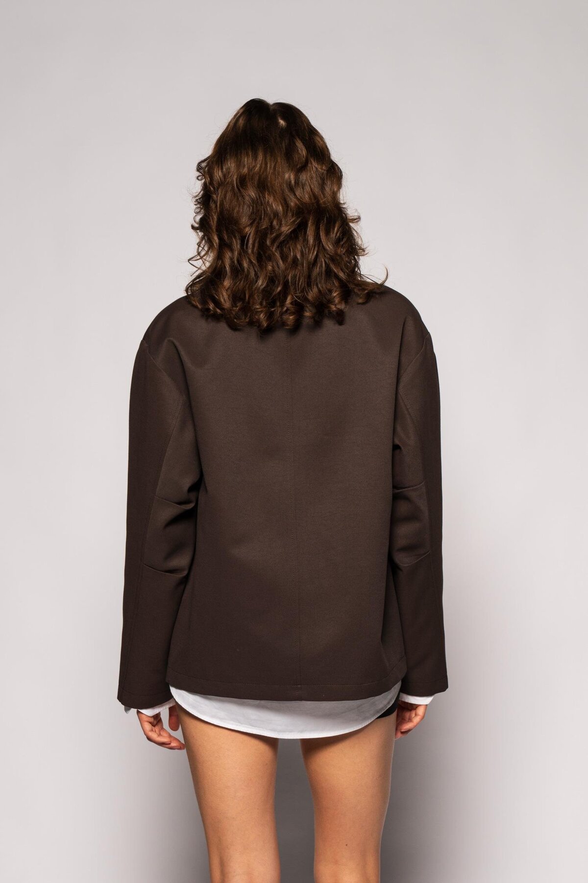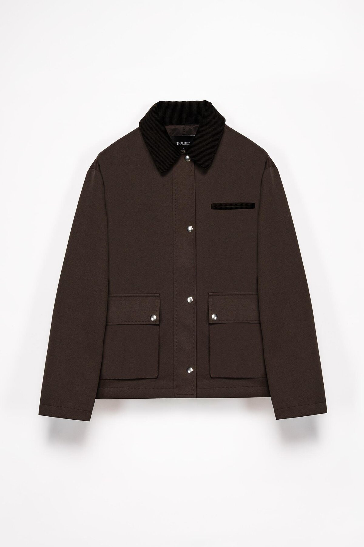 Thalure Women's Dark Brown Velvet Collar Fleto Pocket Gabardine Jacket | ByTR