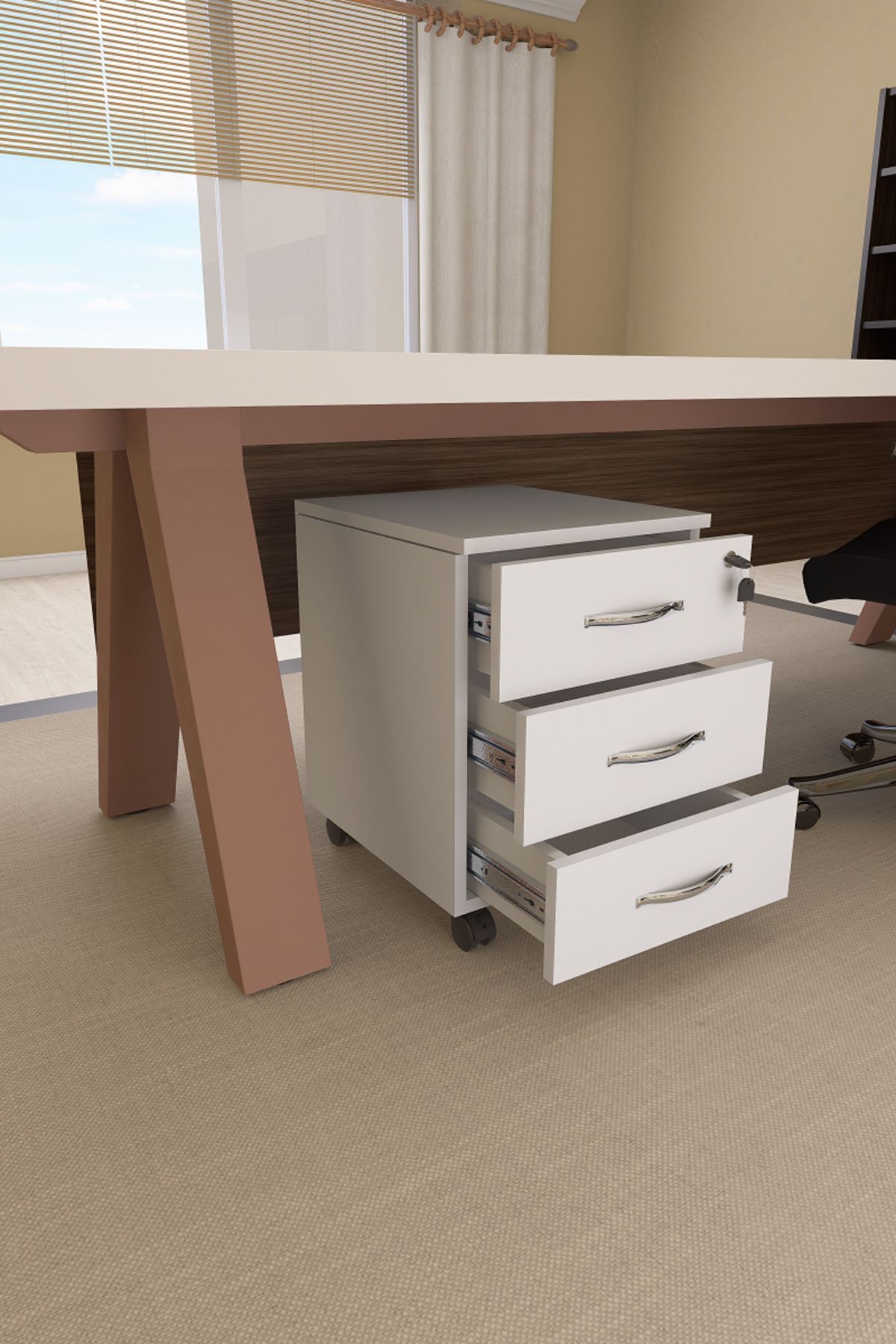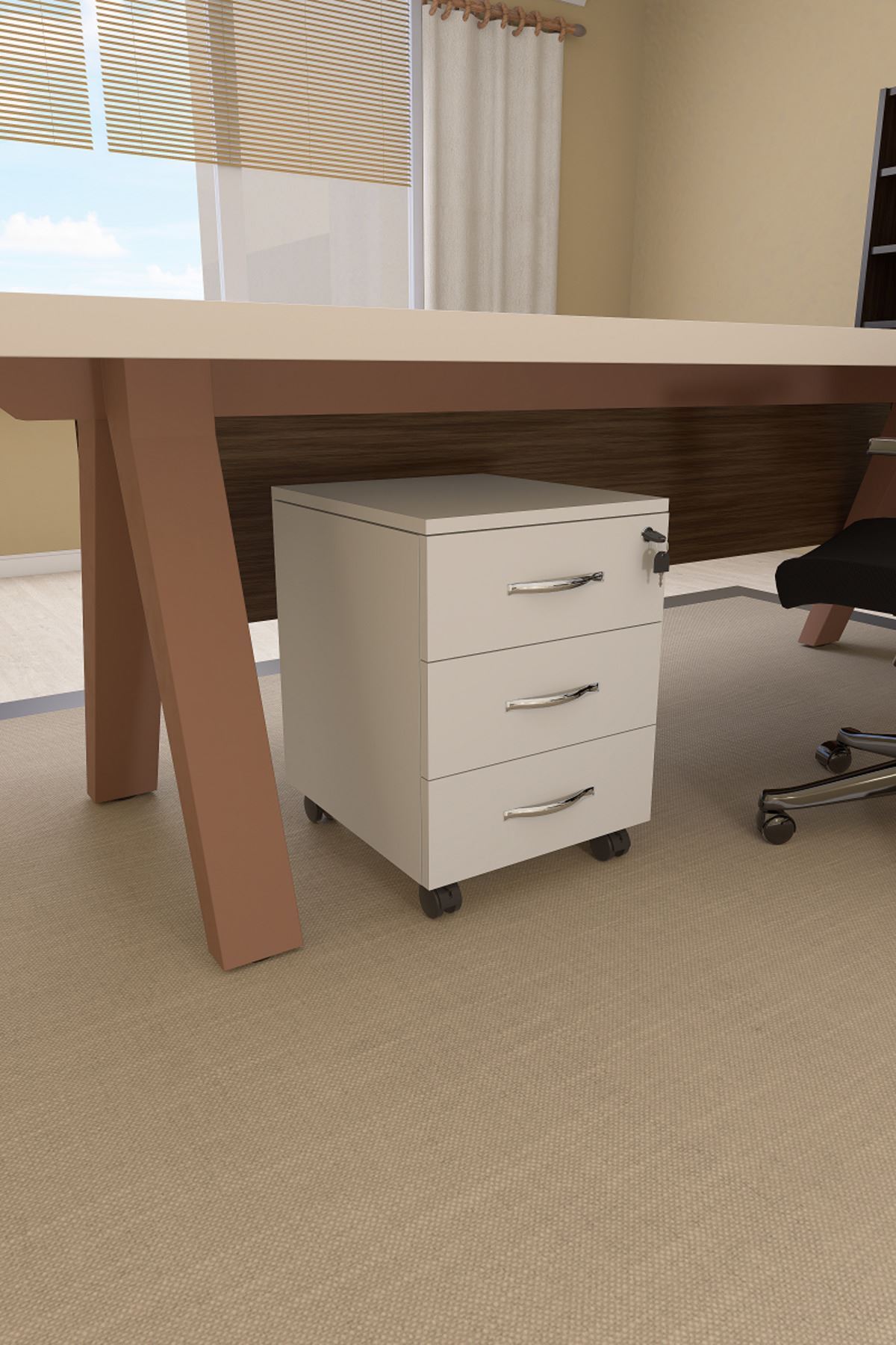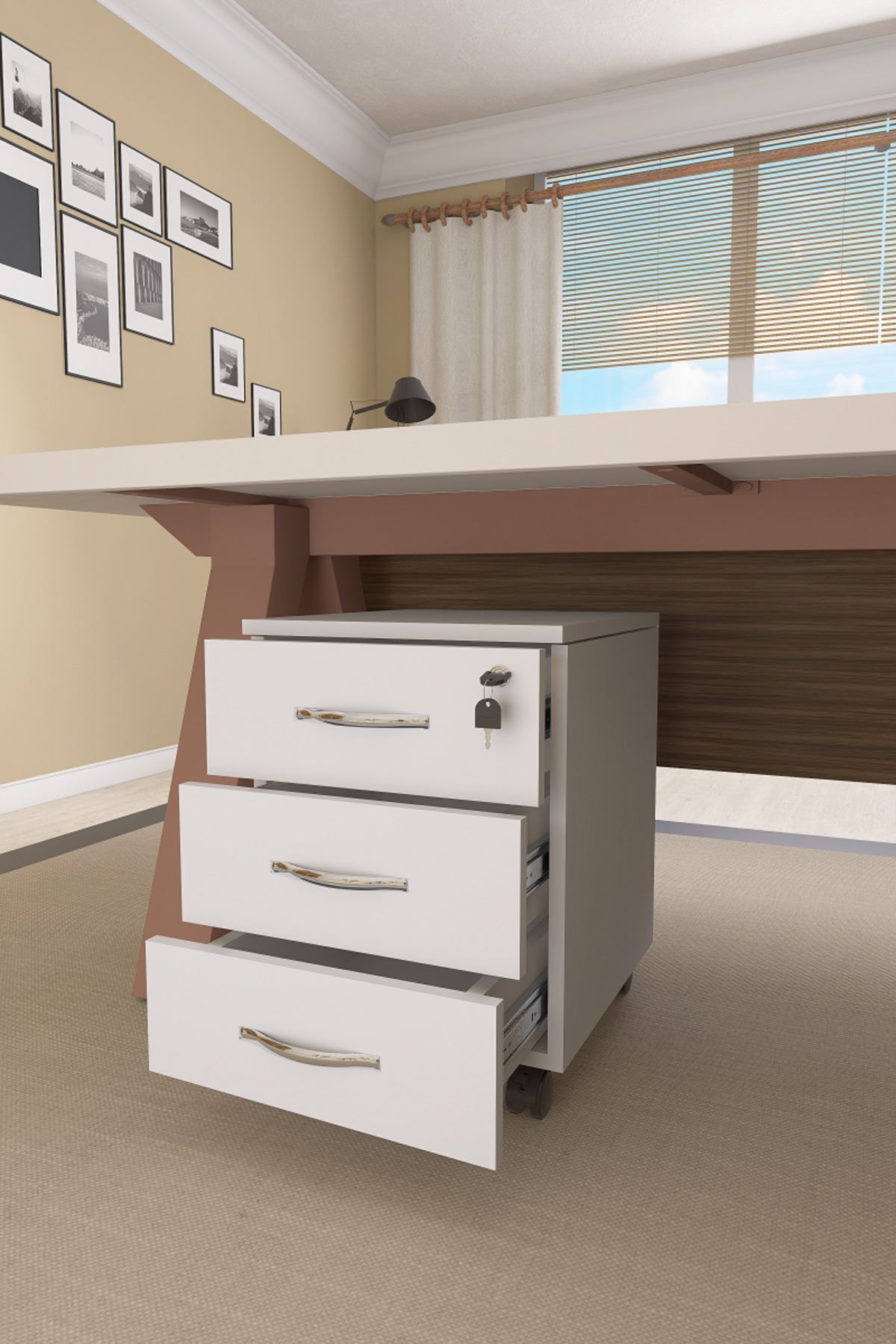 Mirello Under-Table Caisson White with 3 Drawers and Lock
