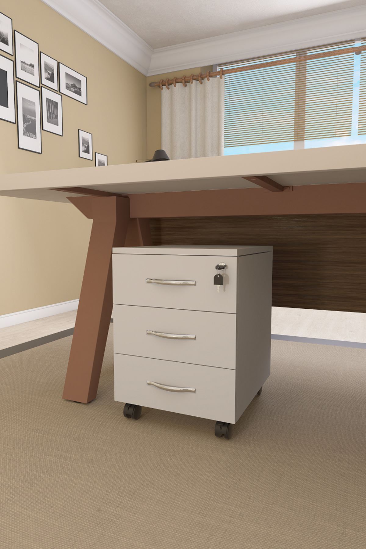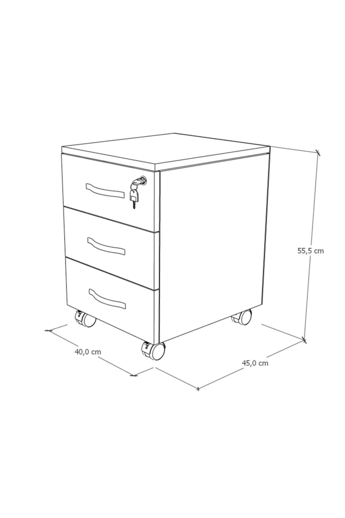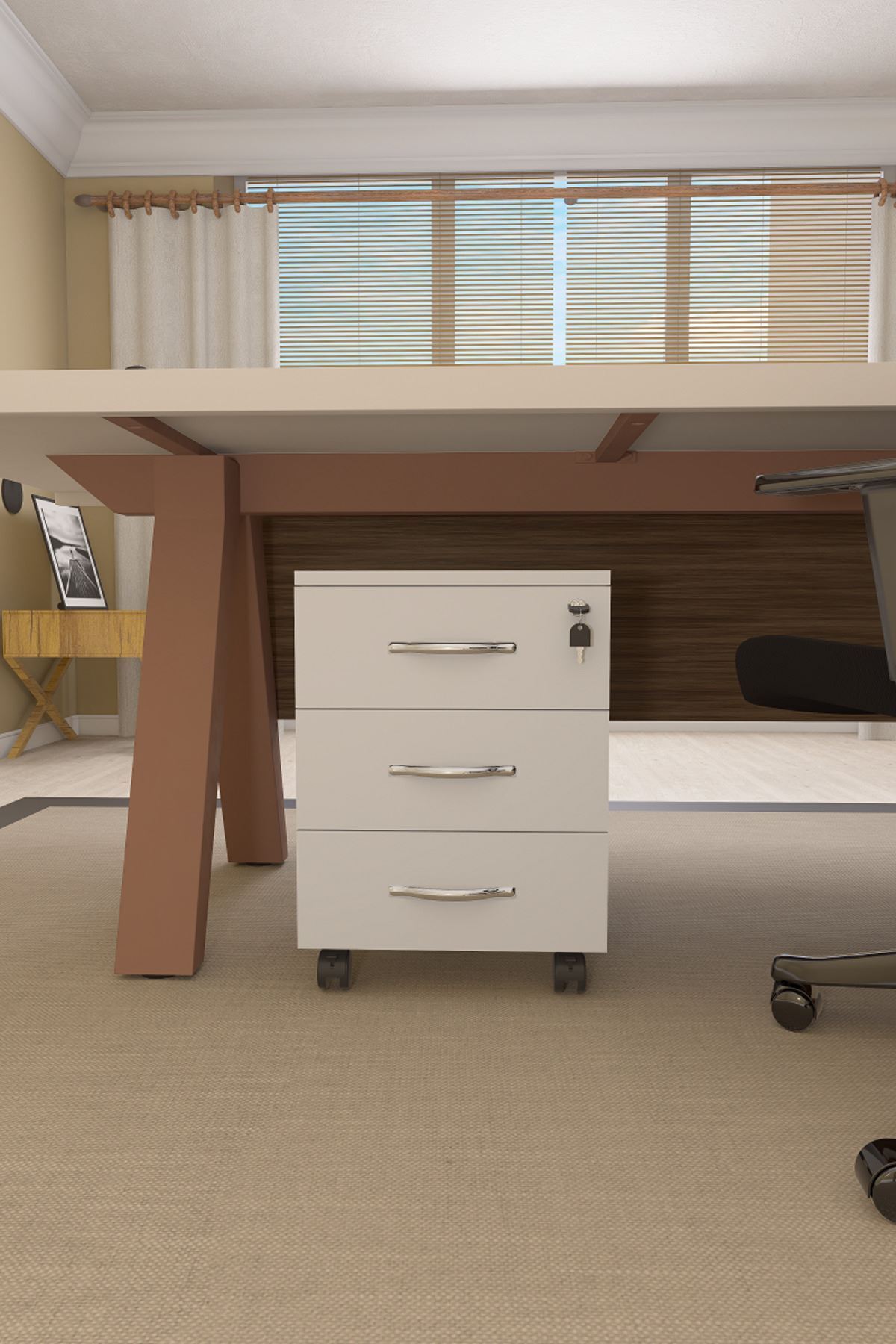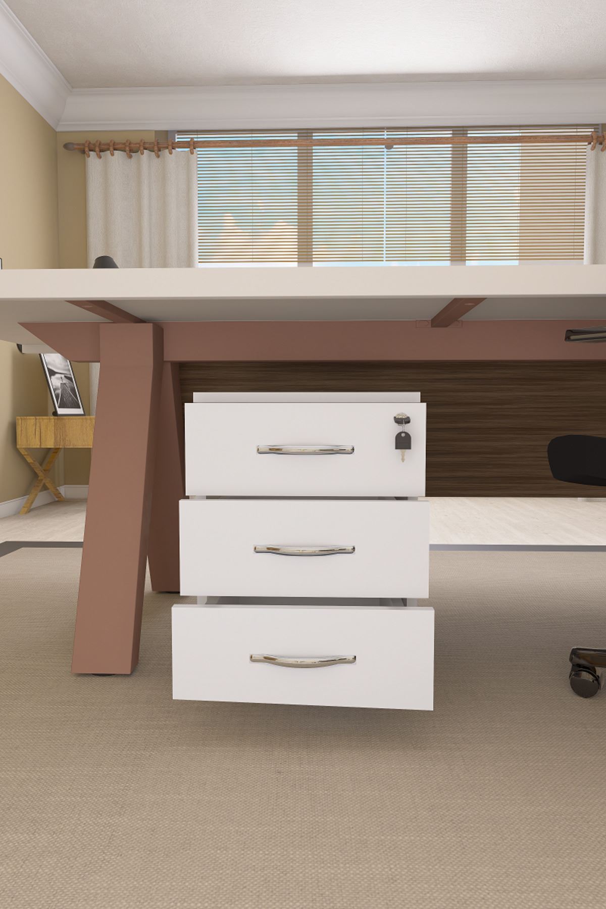 Mirello Under-Table Caisson White with 3 Drawers and Lock