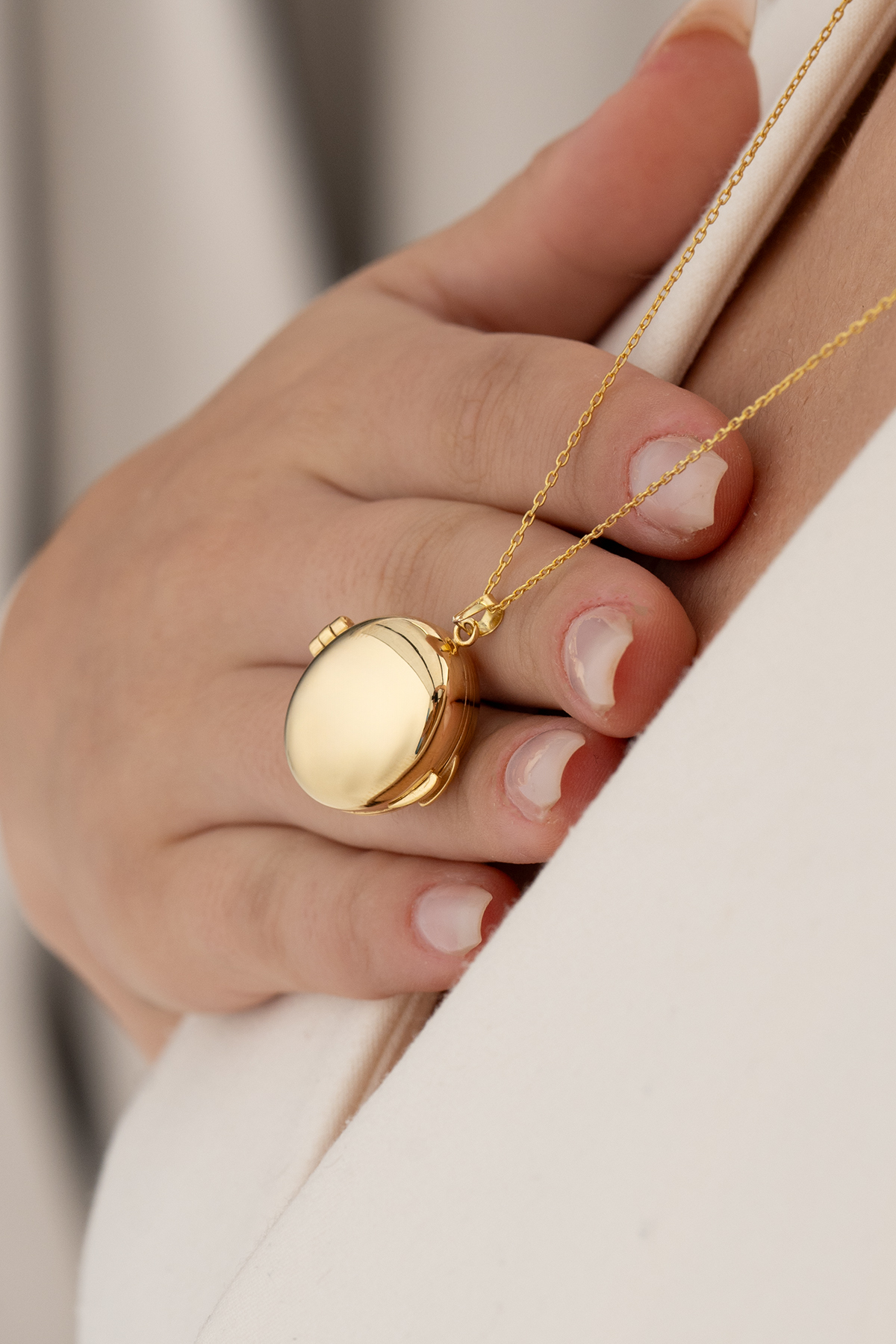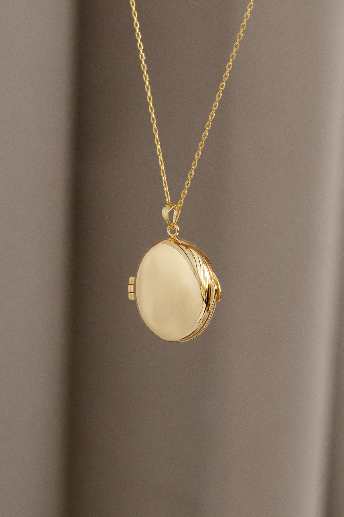 925 Sterling Silver Retractable Personalized Photography Locket Necklace Gold Plated