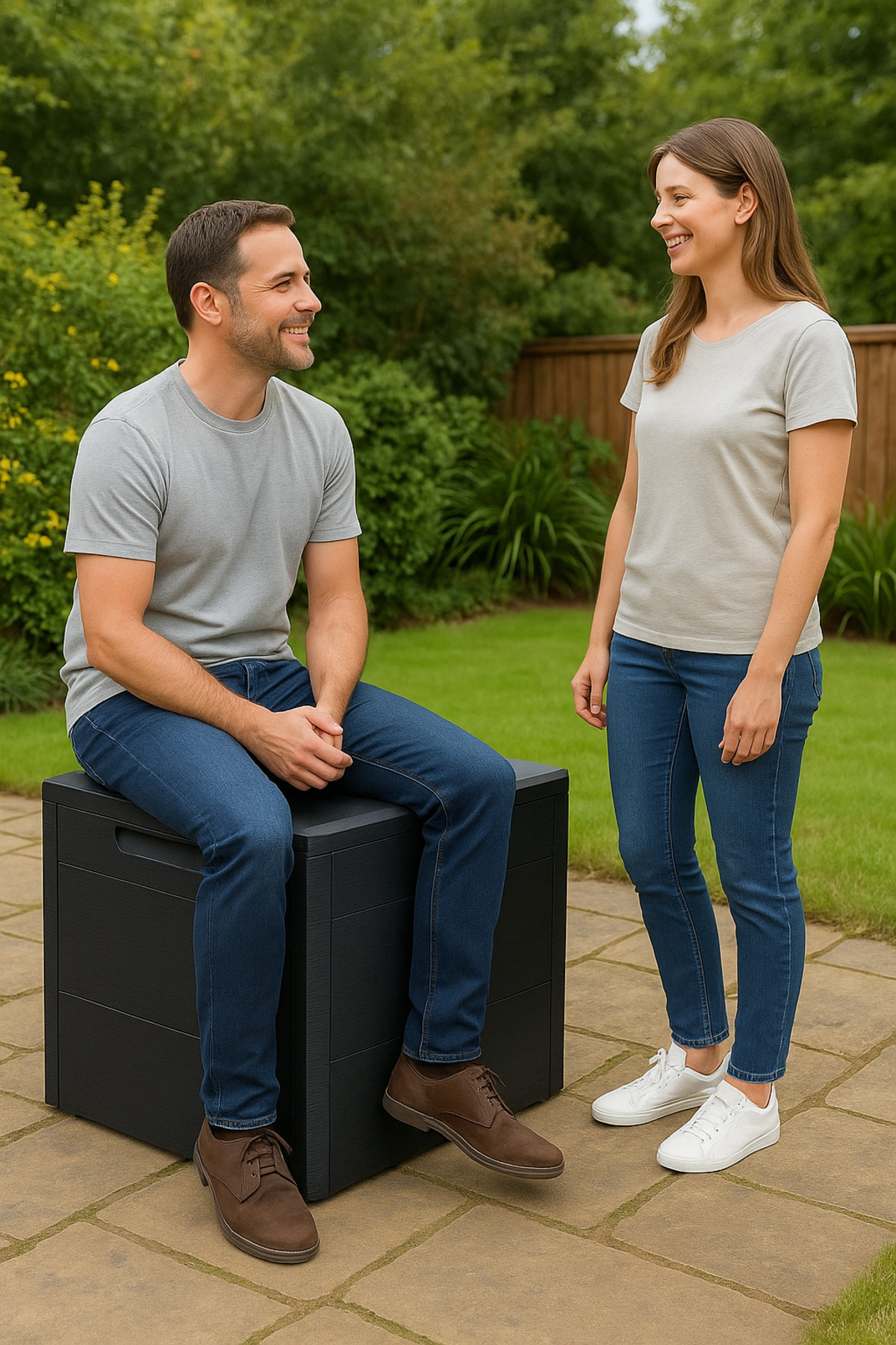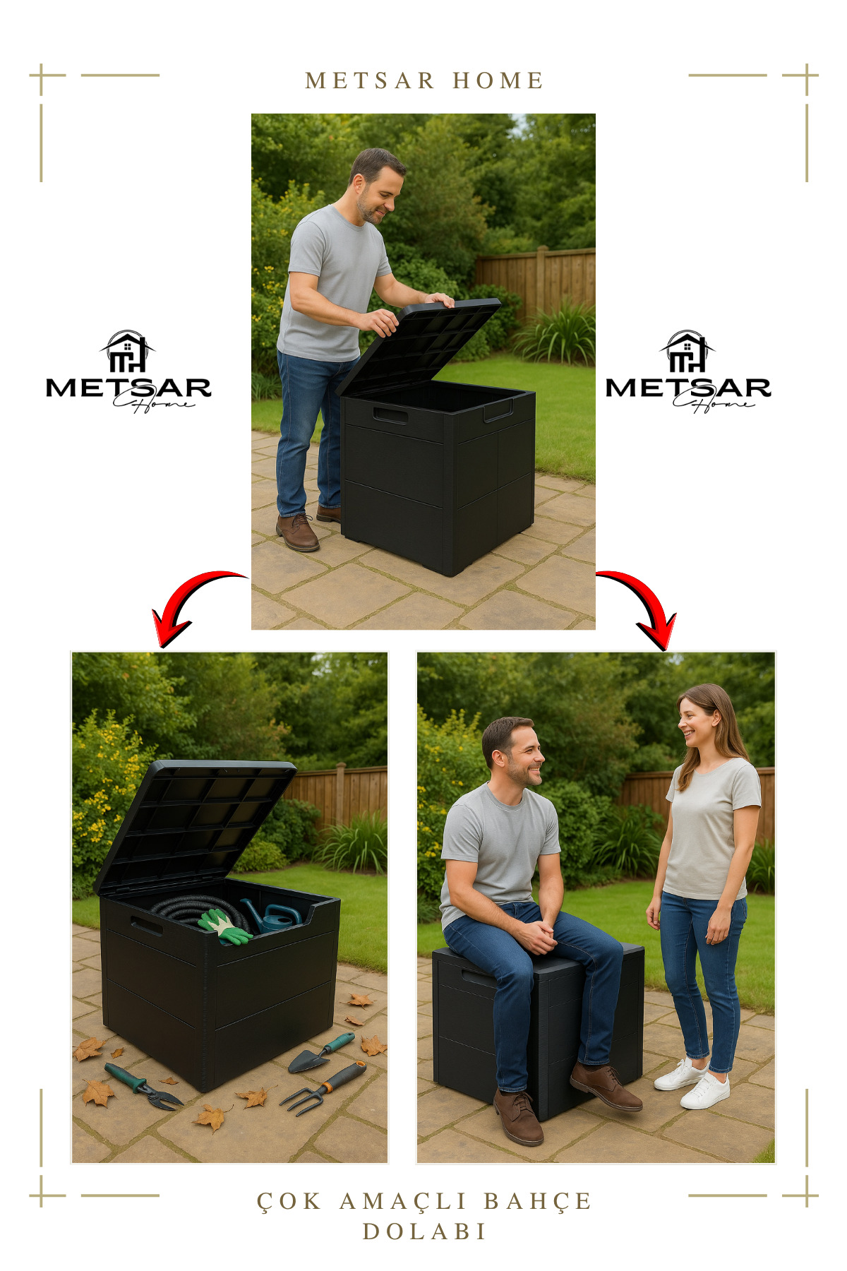 Metsar Home 120 Lt. Black Garden with Cover -Balcony Cabinet Garden Supplies Organizer Chest Wooden Look | ByTR