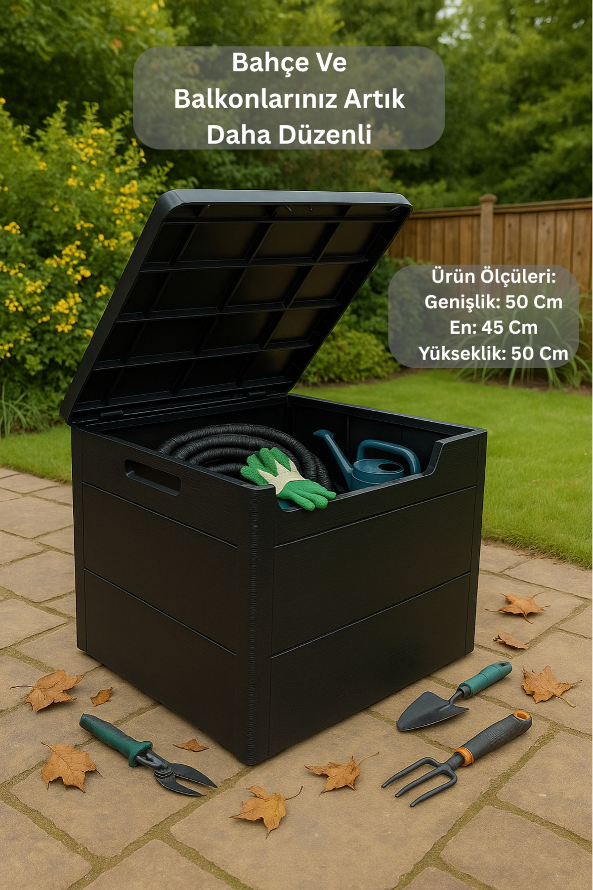 120 Lt. Black Garden with Cover -Balcony Cabinet Garden Supplies Organizer Chest Wooden Look