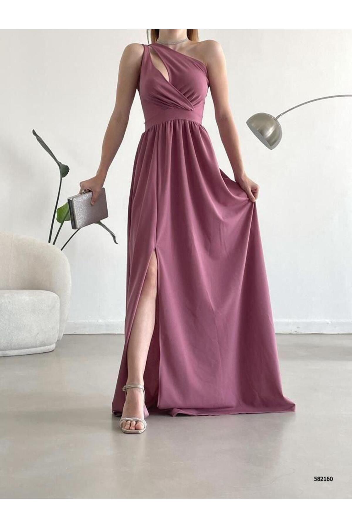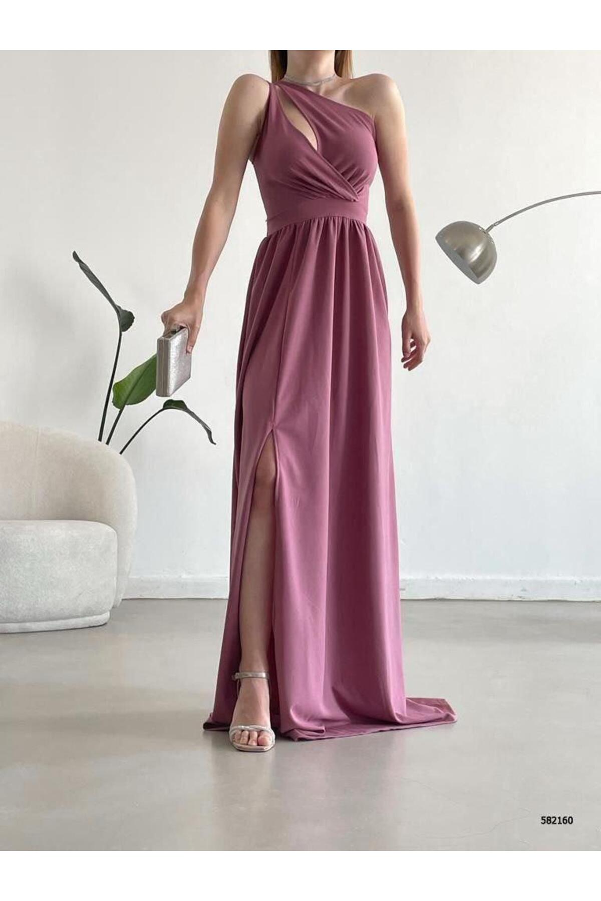 It offers a modern and stylish look with a single shoulder design.