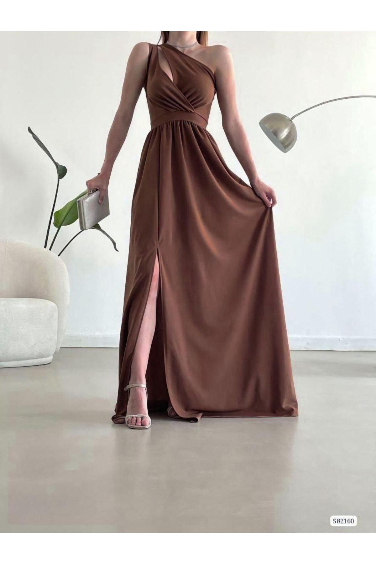 Modafeminen Imported Crepe Fabric One Shoulder Long Side Slit Dress 582160 BROWN | ByTR
