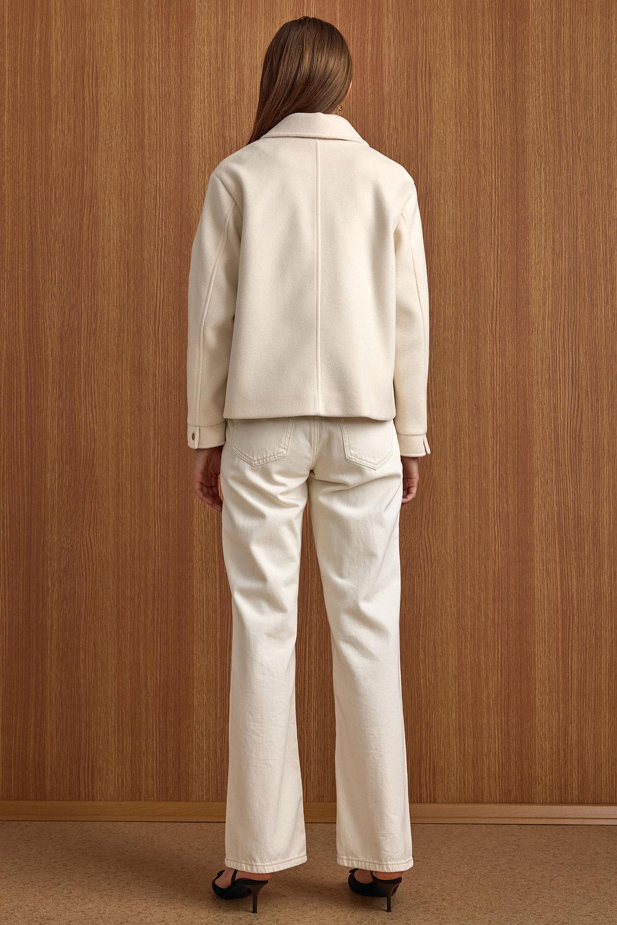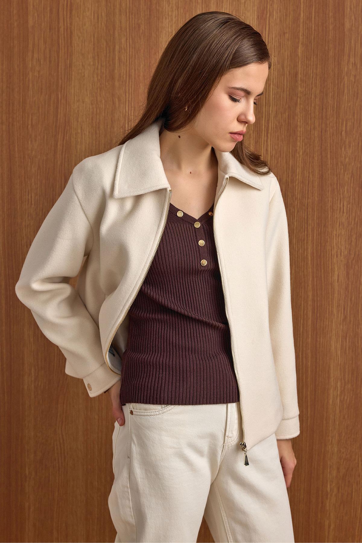 Olcay Zipper Closed Oversize Short Coat ECRU 3157 | ByTR