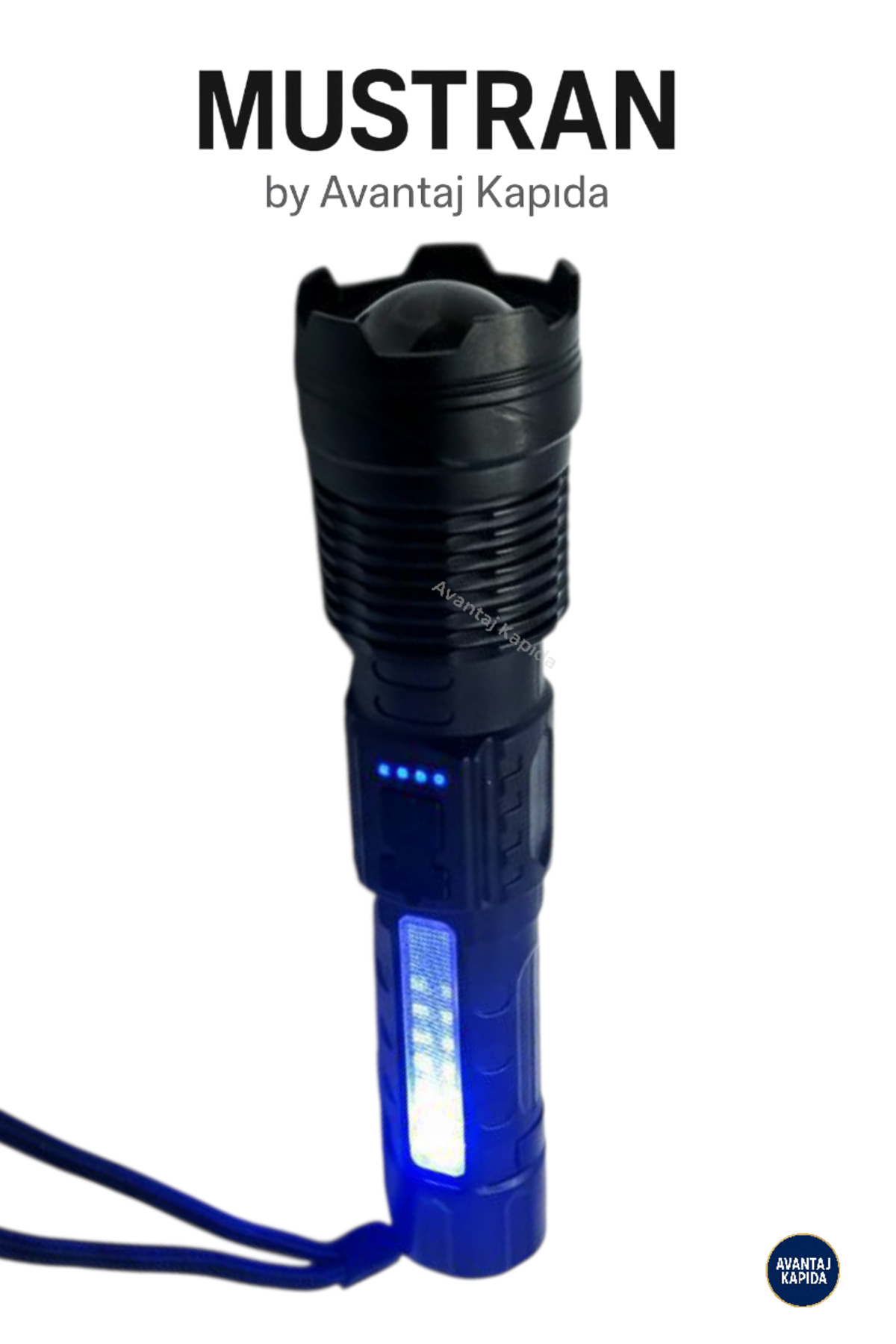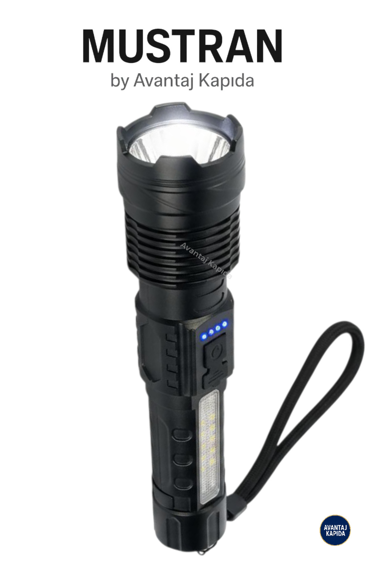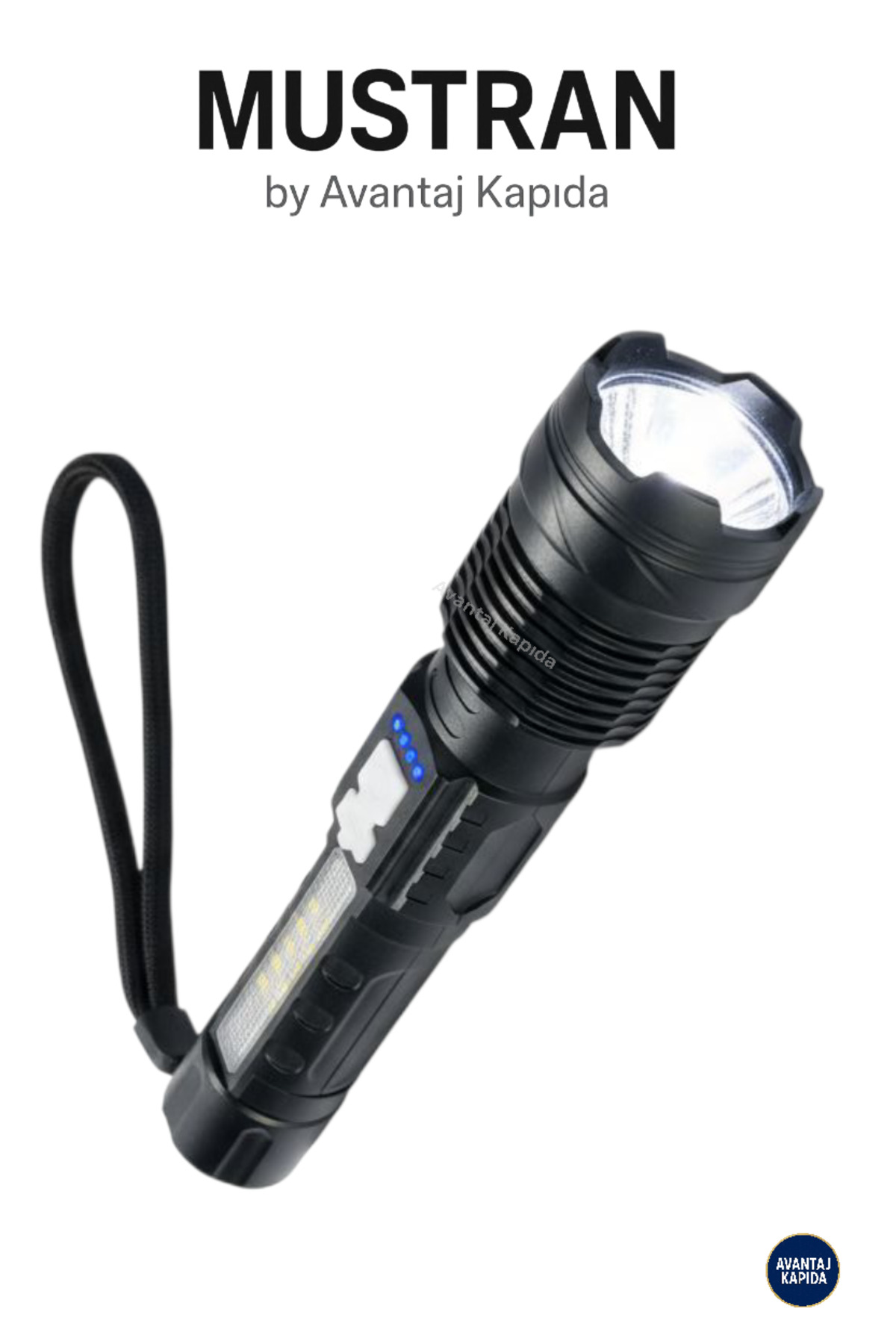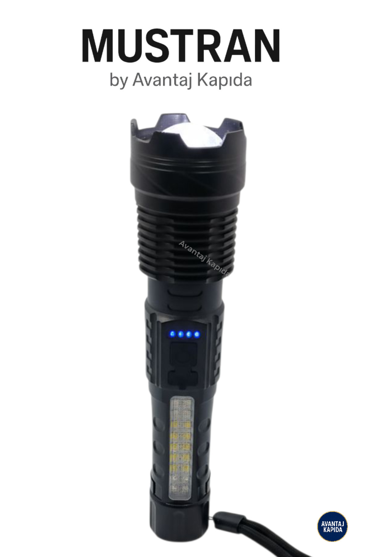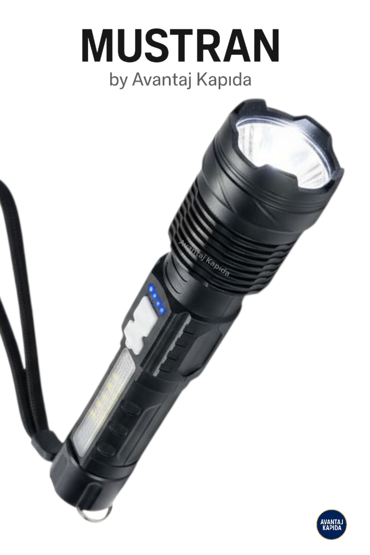 📦 Box Contents • Tactical flashlight – 17 cm • Type-C charging cable • Carrying case • Wrist strap • Original box 📐 Technical Information • Light: LED + cob panel • Range: Approximately 500 m • Front lens diameter: 13 hoops • Modes: Strong / Medium / Strobe + cob White / cob Dim / Red Flash • Body: A6063 aluminum alloy • Charging: USB Type-C • Accessory: Case + wrist strap • Water splash resistance: Available Areas 🎯 of Use • Law enforcement, police and guard patrols • Security guards, site management • Military environmental control and vigilance points • Technical service, electrical and maintenance teams • Auto emergency and roadside safety work • Camping, fishing, hiking • Farm, field and animal control tasks • Home & workplace backup light for power outages • Basic equipment in earthquake and emergency bag ⚠️ Warnings • Do not fully immerse in water • Do not hold the light directly to the eye • Keep away from children • Interrupt use in heavy heat 🔍 Some users may call this product as a tactical lantern police lantern guard lantern security patrol lantern charged flashlight machete compatible lantern zoom focus lantern cob side light camping lantern master work light edc flashlight emergency light red warning light operation flashlight auto repair light night patrol tactical flashlight Origin: China Mustran Advantage