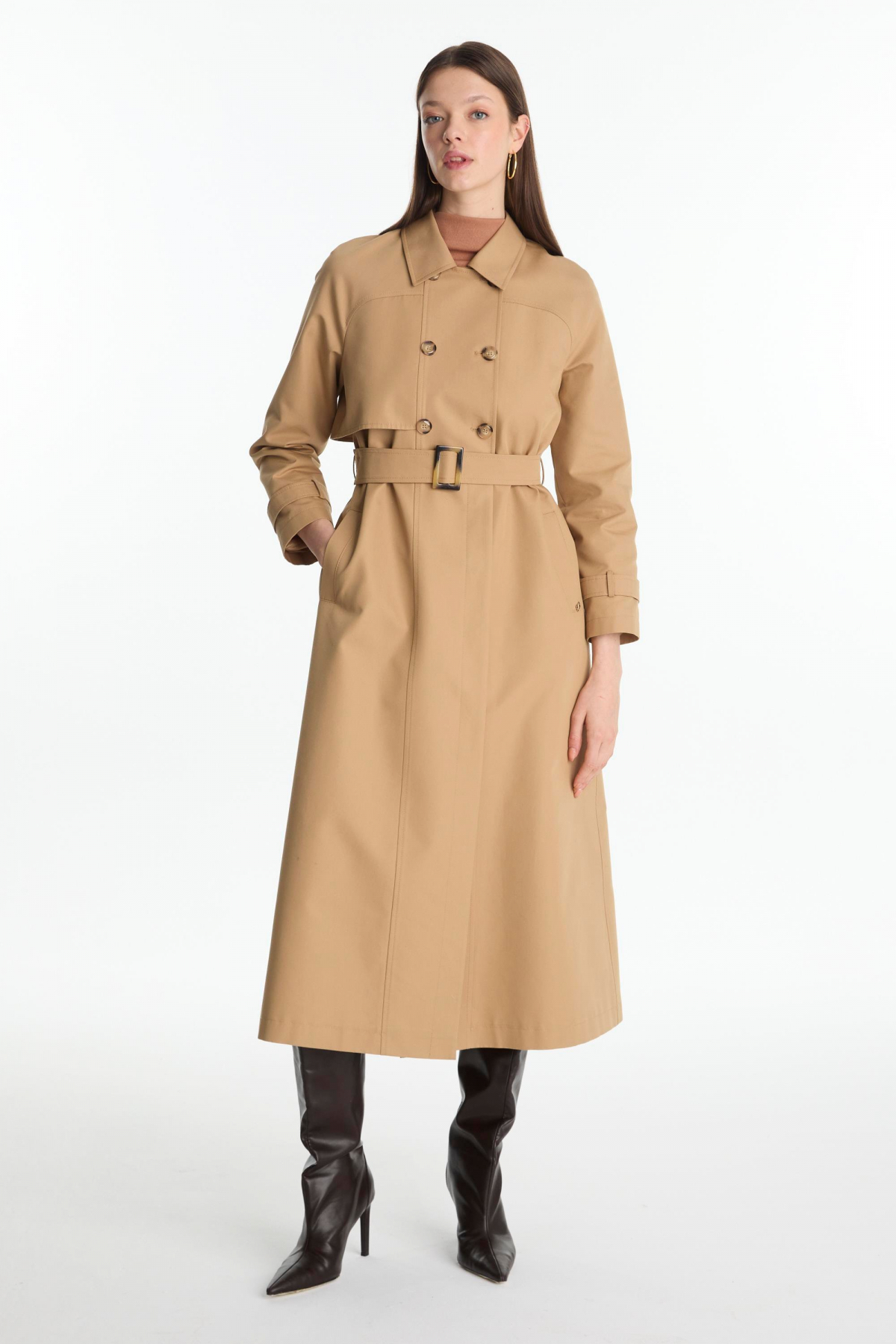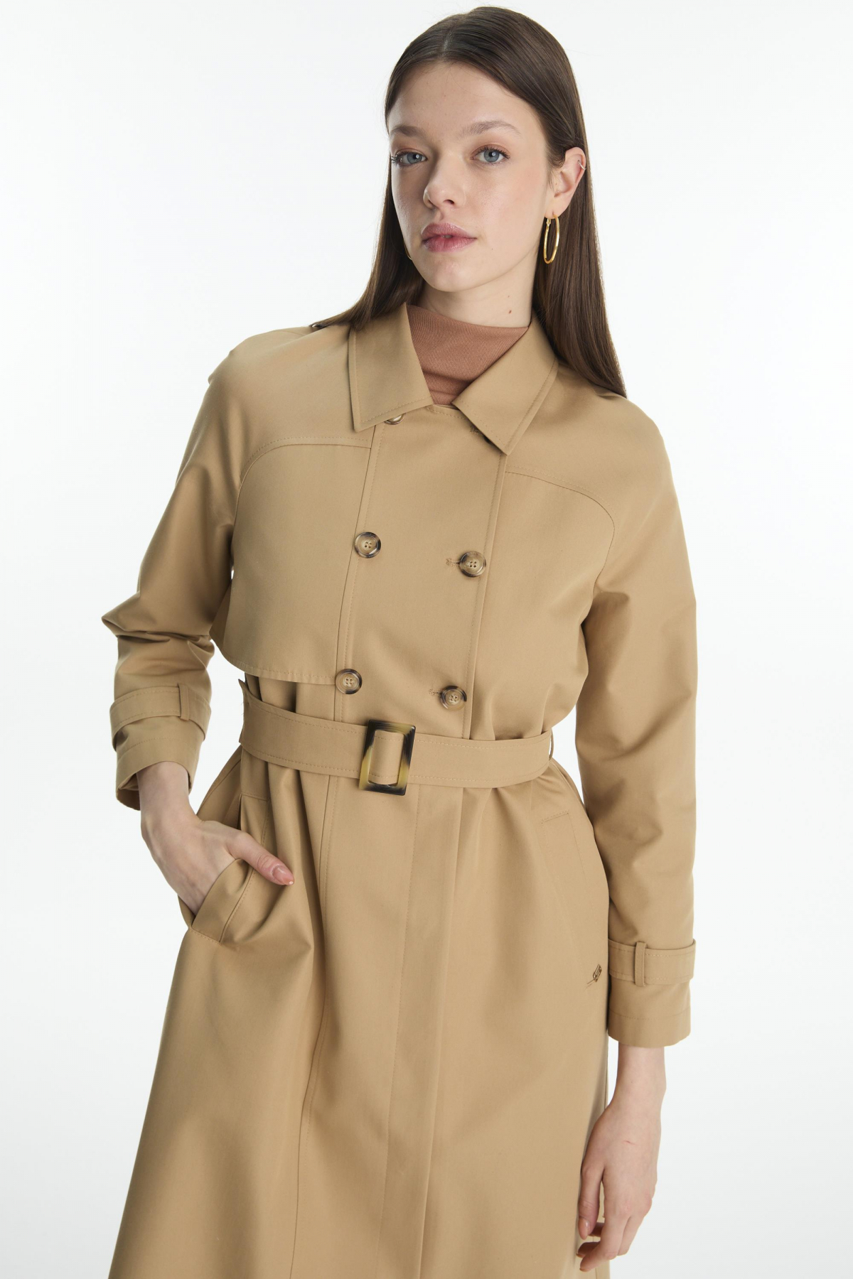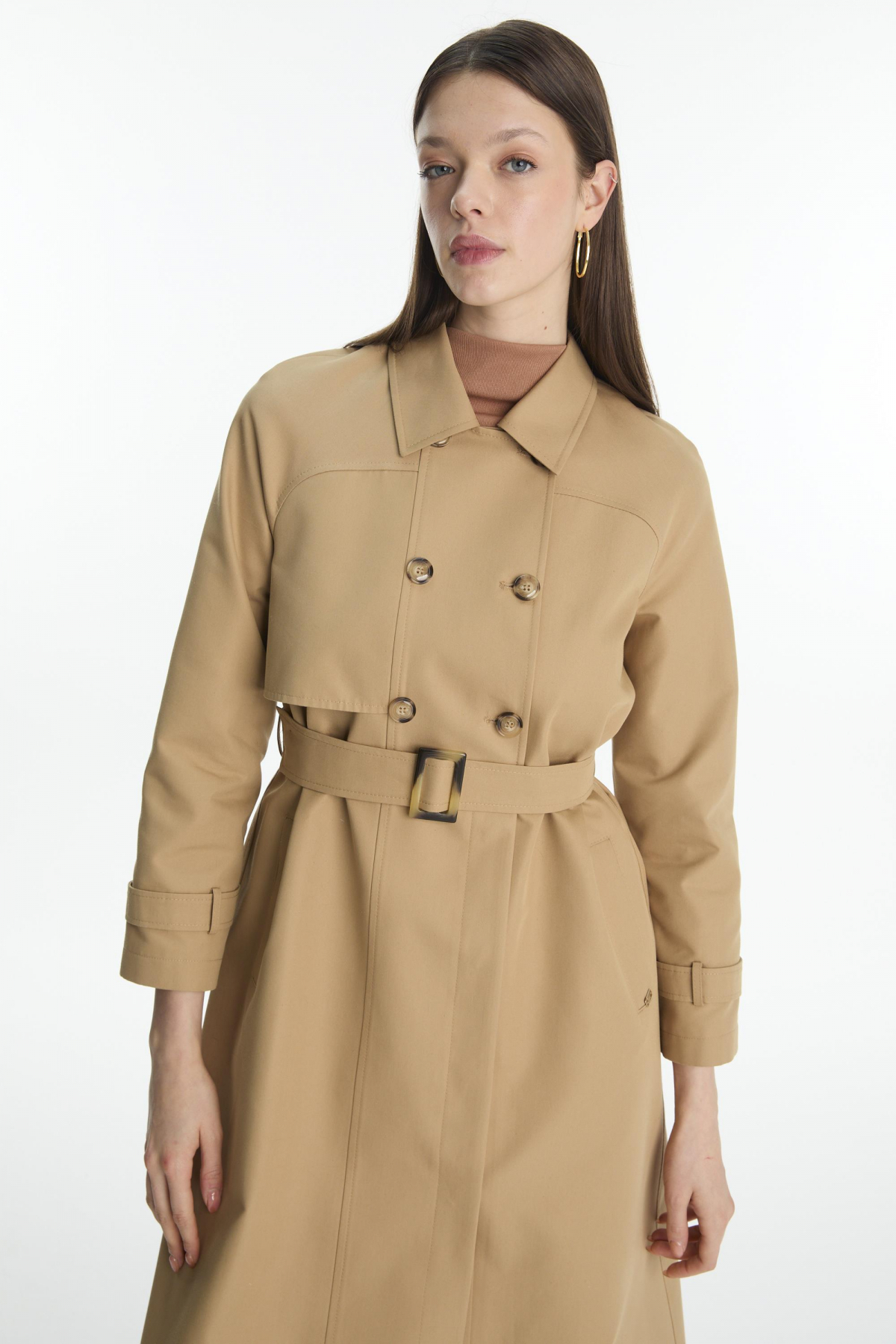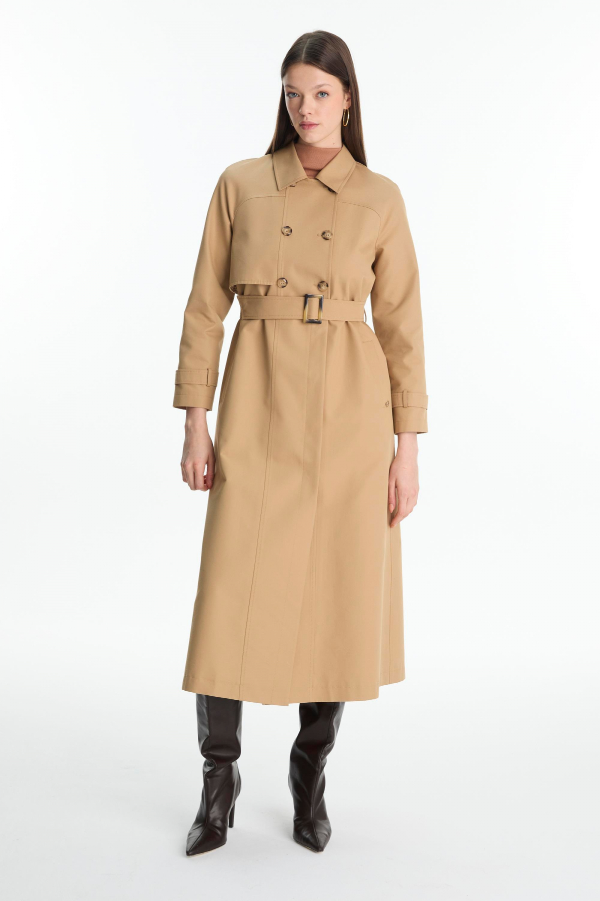 Zühre Button Detailed Belted Trench Coat Mink 13860 | ByTR