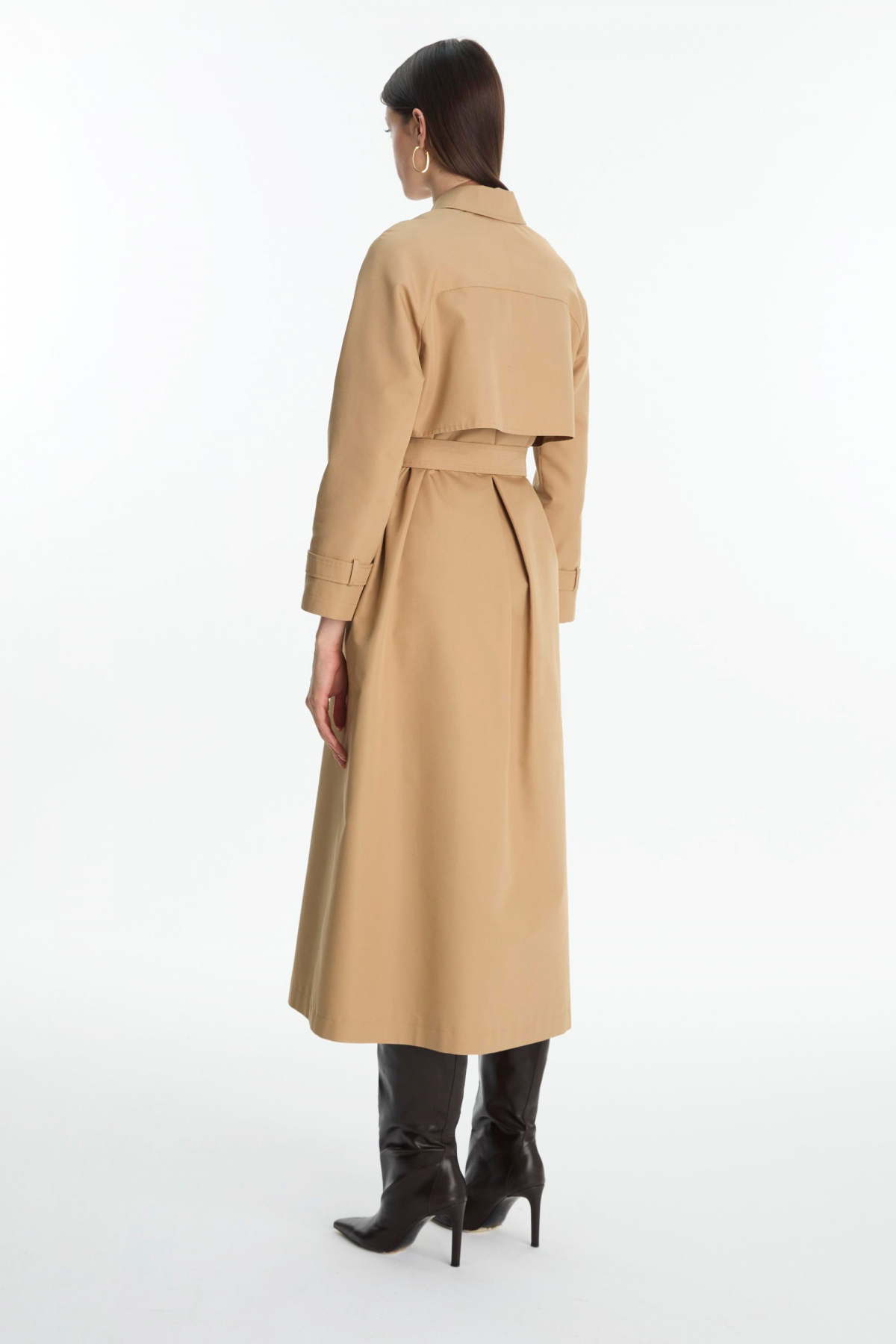Button Detailed Belted Trench Coat Mink 13860