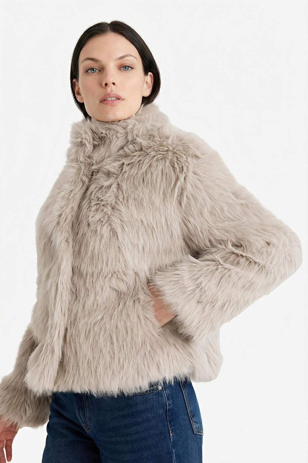 Regular Fit artificial fur, which combines elegance and comfort, complements your style in cold weather.