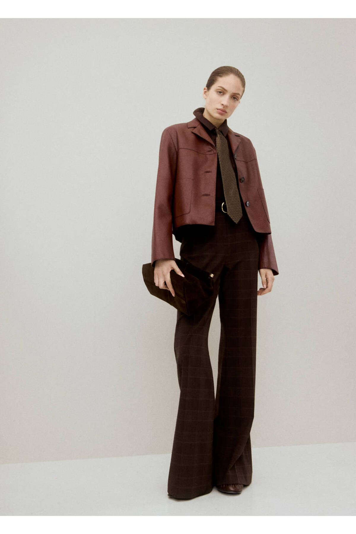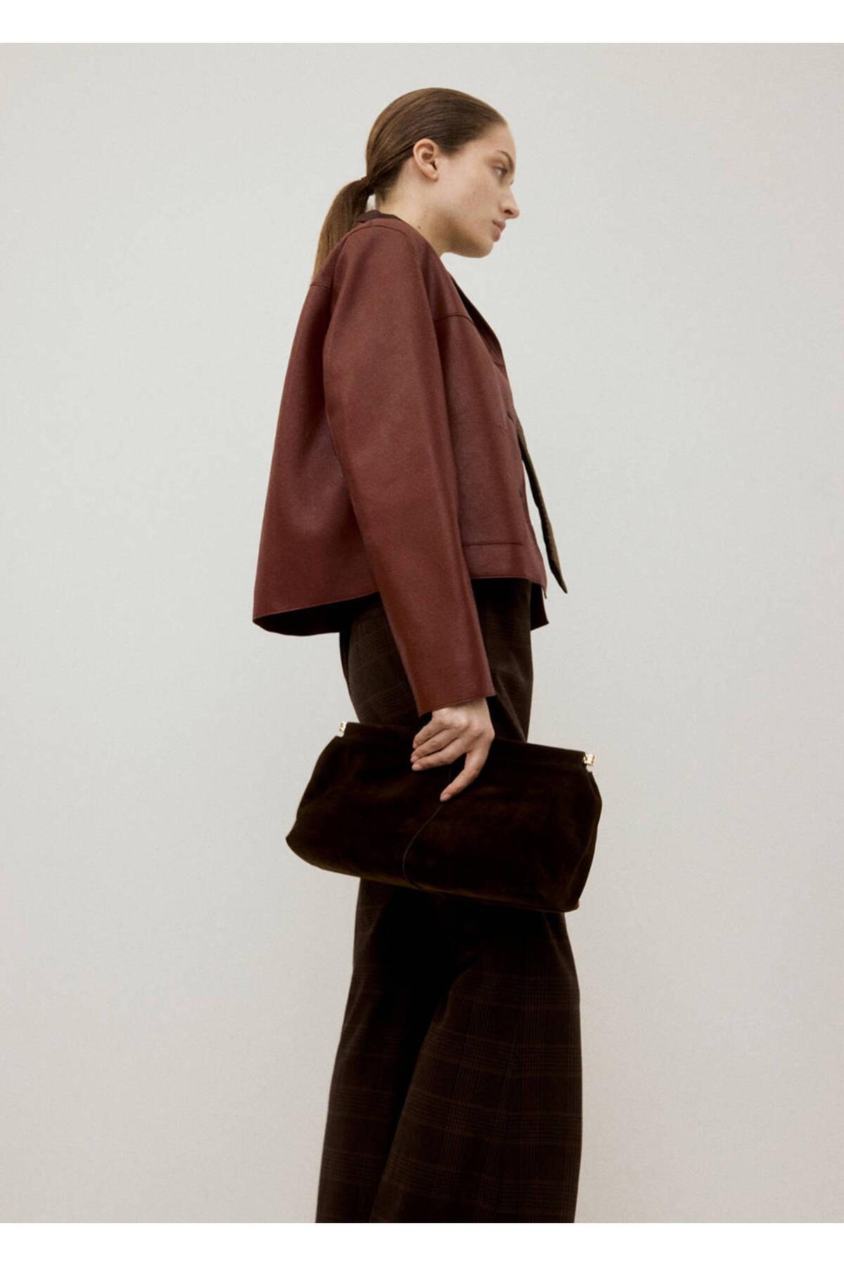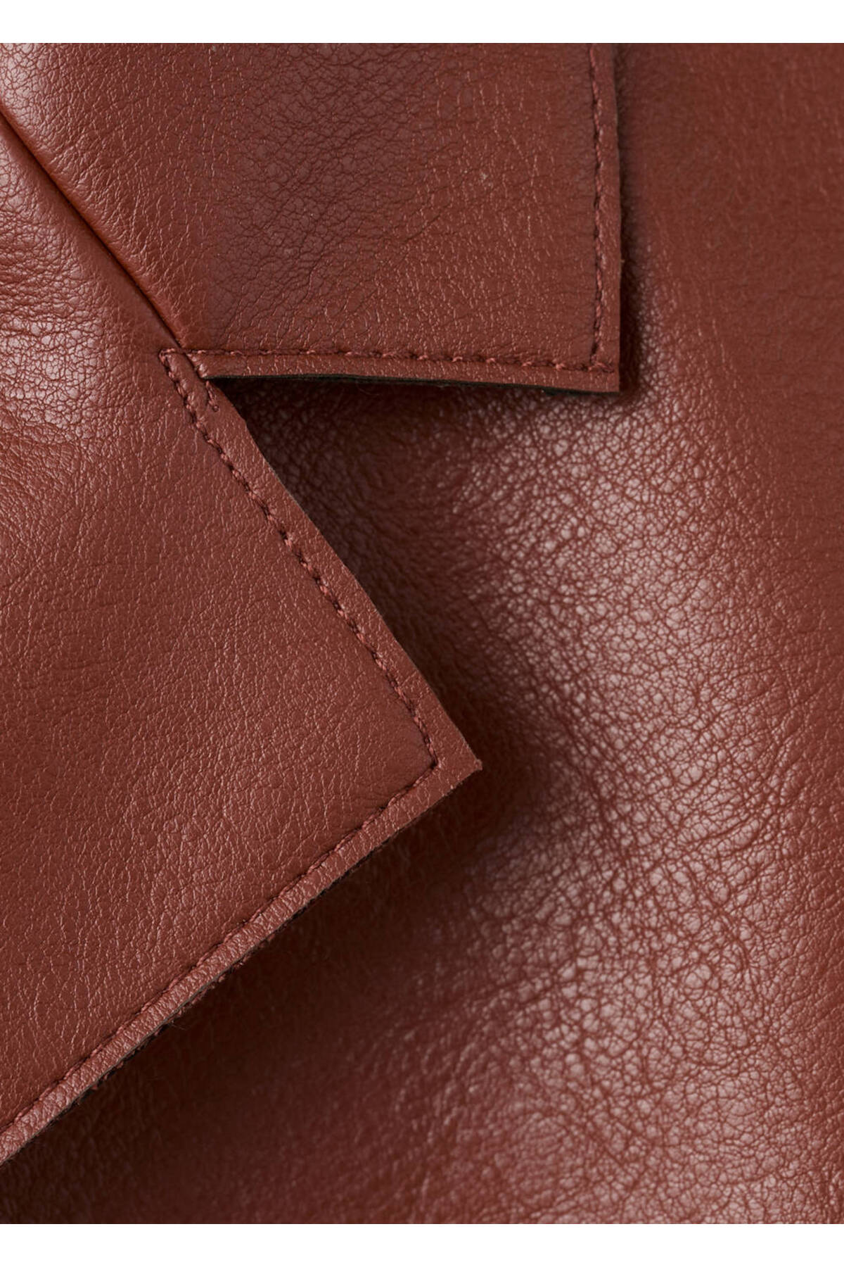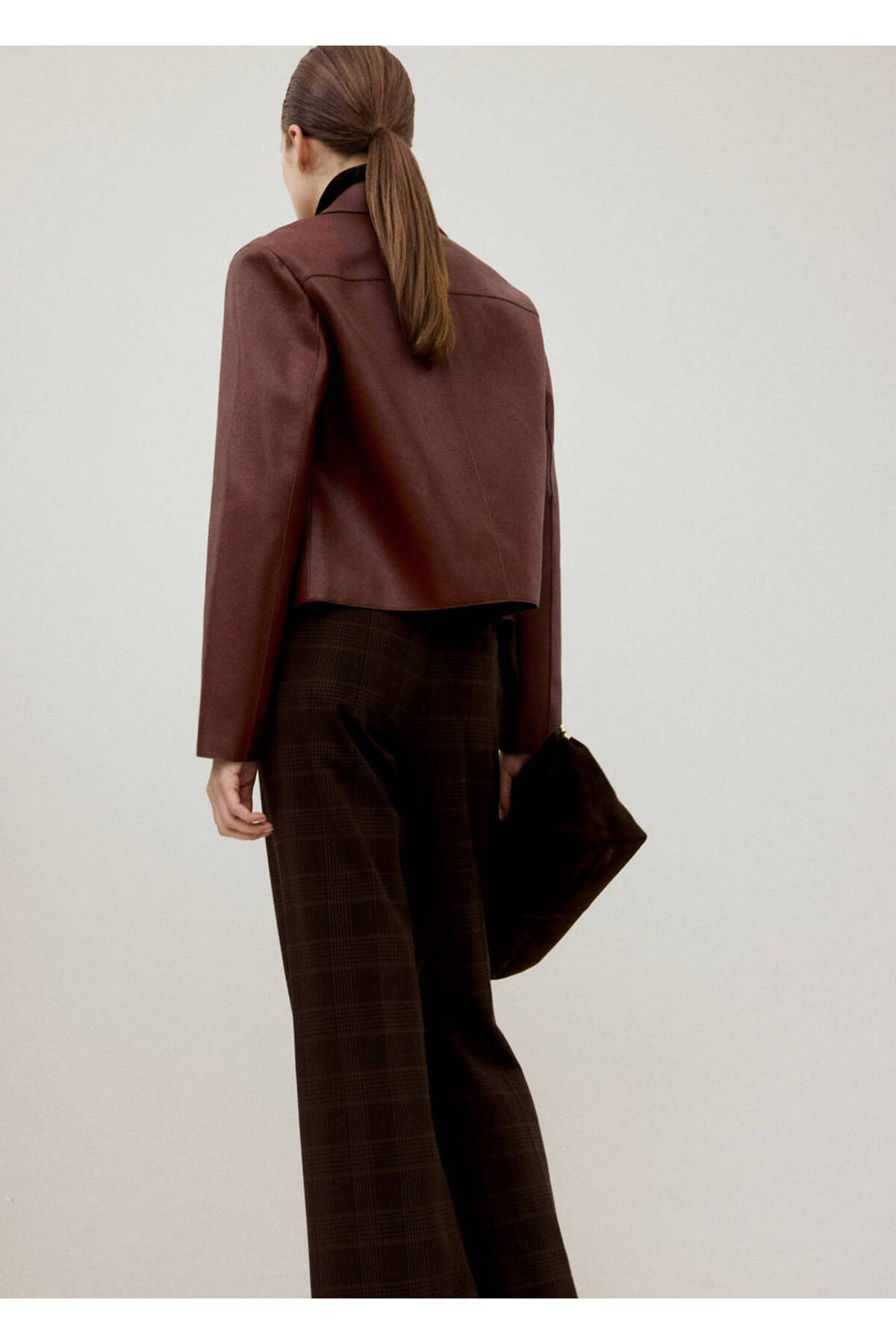 Leather effect, Flat design, V-cut collar, Notched solapas, Long sleeves, Two patch pockets on the front, Front button closure, Inner lining, Disponible Plus.